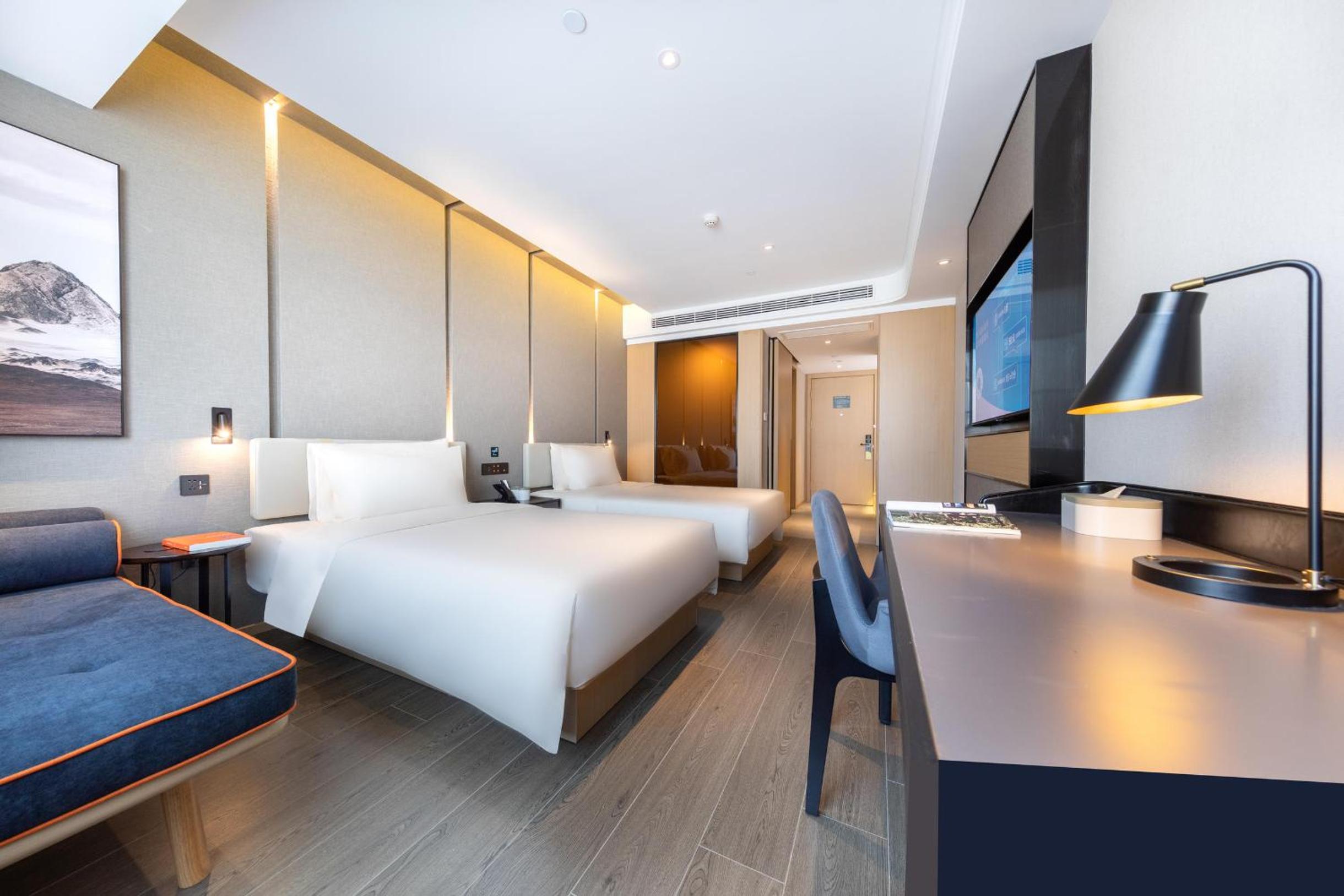 Experience comfort and style at Atour Hotel Lianyungang City Government. Our guest rooms feature a cozy seating area, TV, air conditioning, and a convenient desk for your needs.