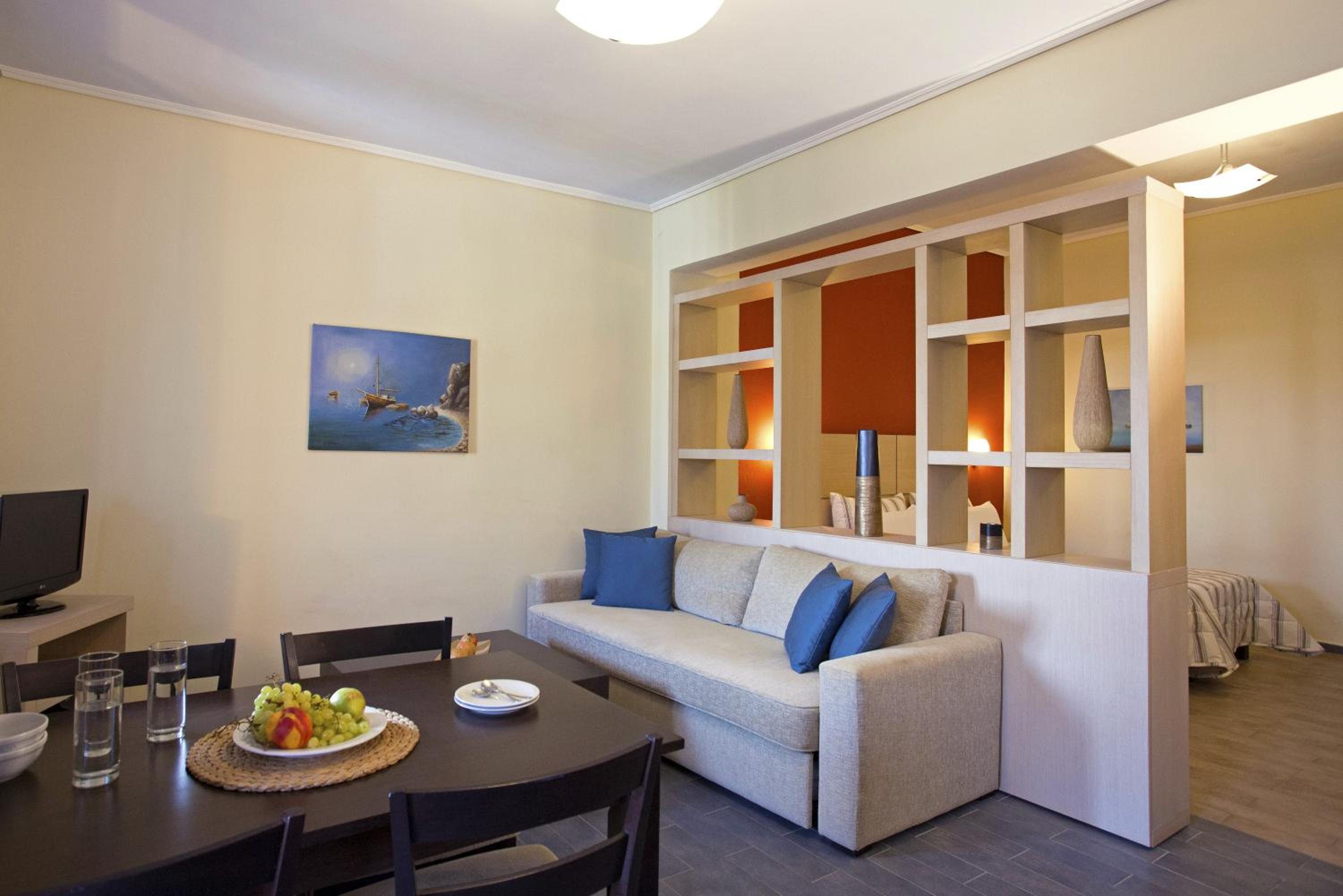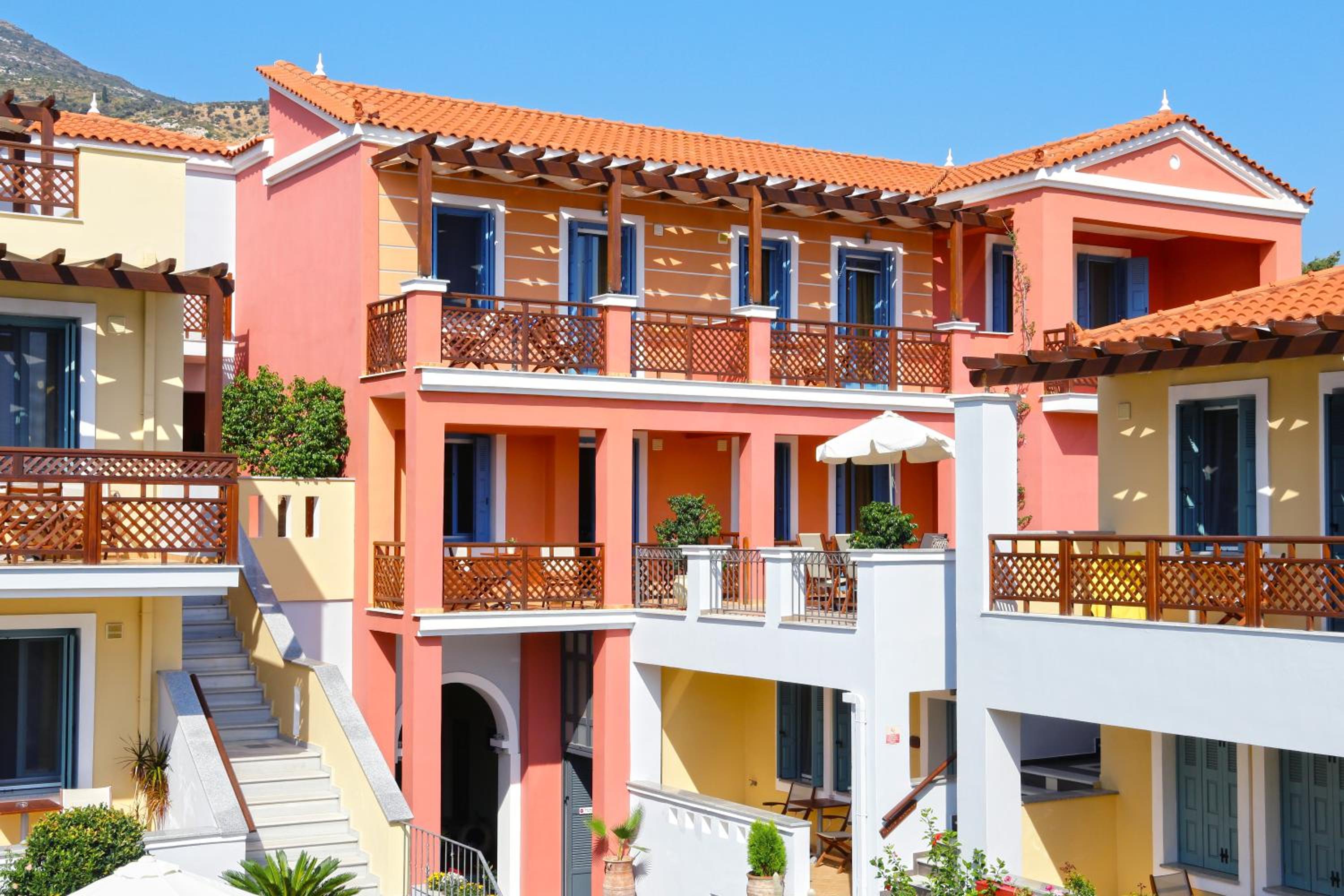 The appartments are spacious and all have a nice view: some of the mountain, some of the sea, most of the pool area.