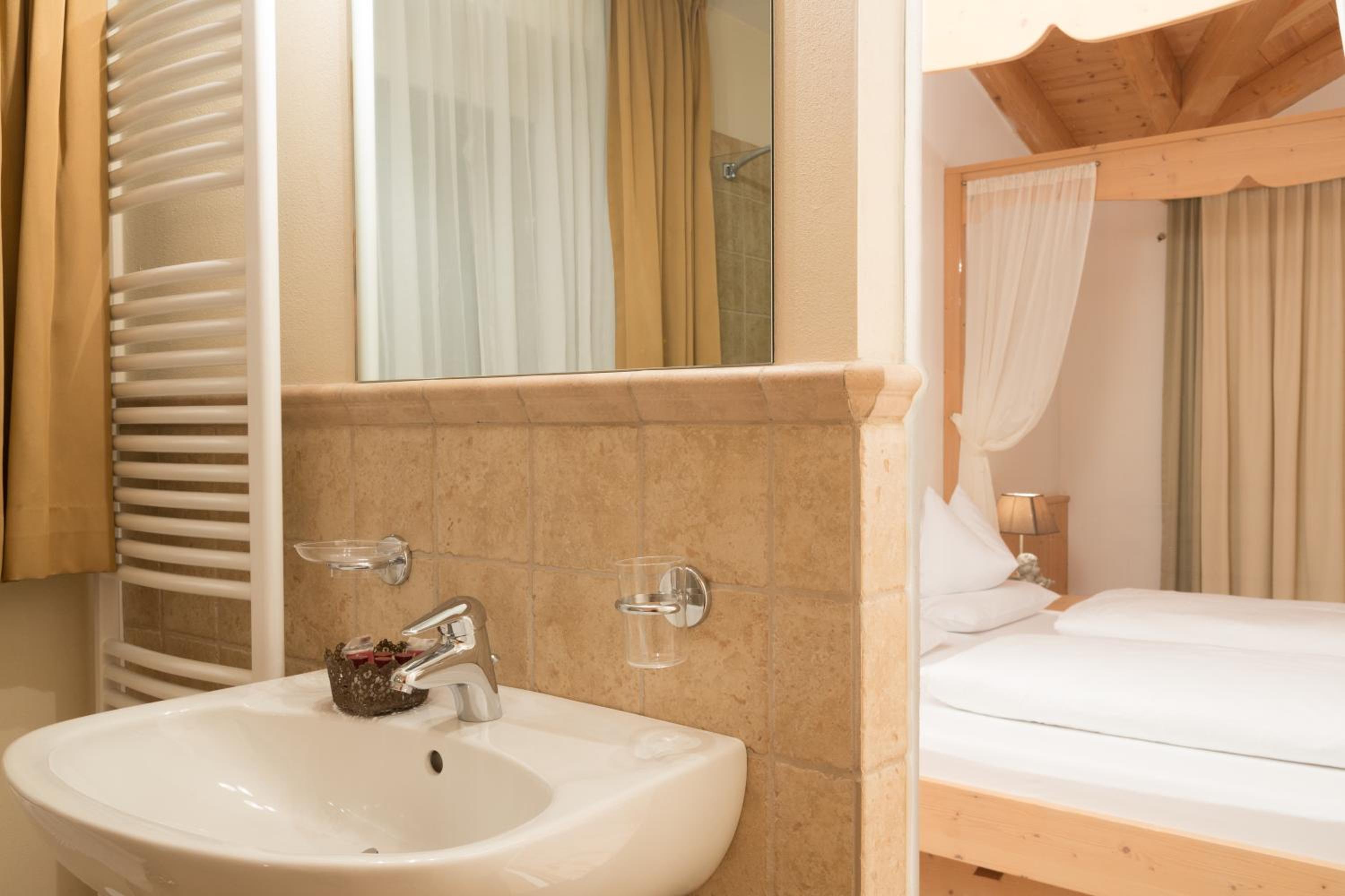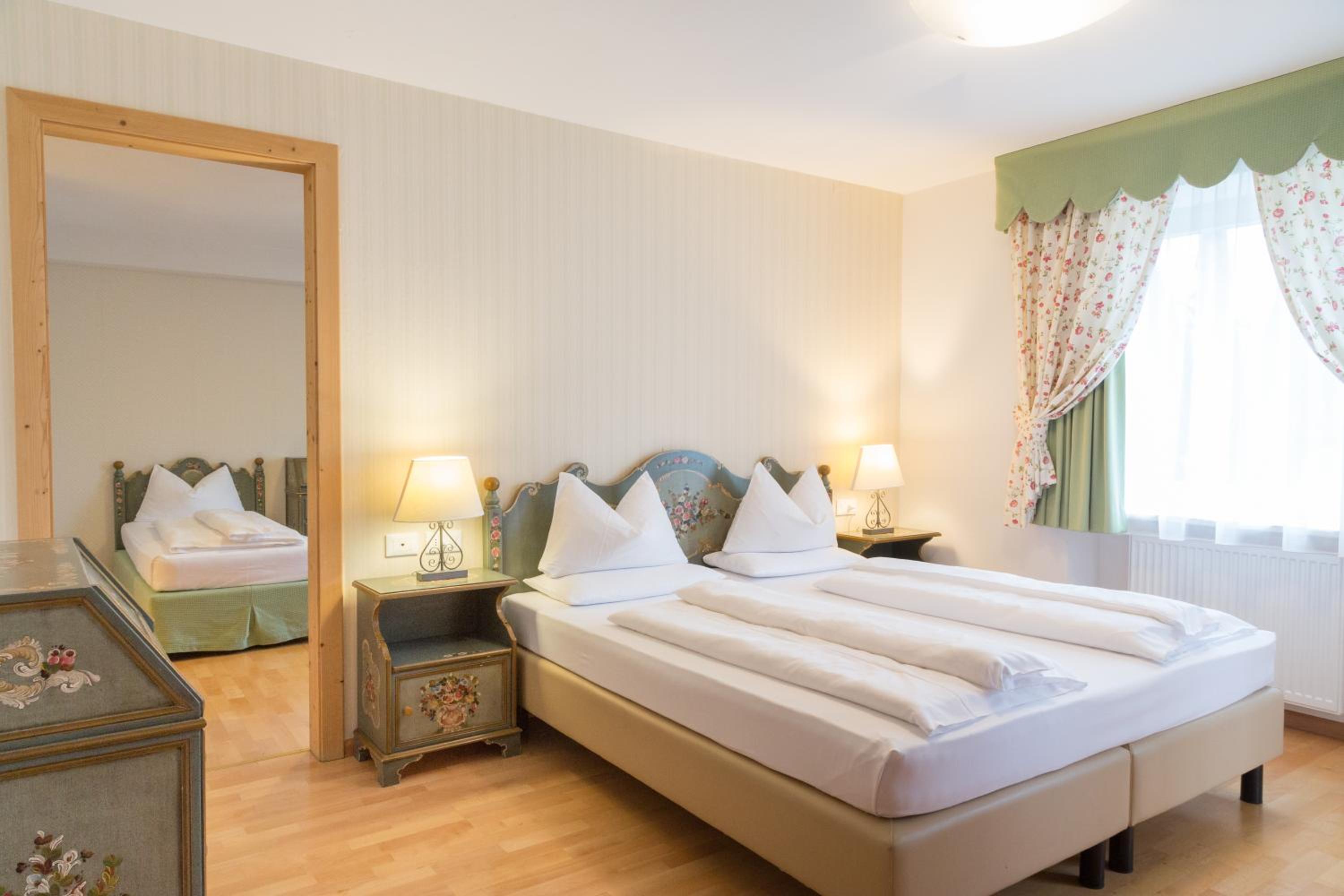 Hotel Olympia offers a charming mountain retreat with beautiful views of the Dolomites. The cozy rooms, some with carpeted floors and others with wood floors, are equipped with modern amenities including an LCD TV with free pay-per-view channels and Wi-Fi.