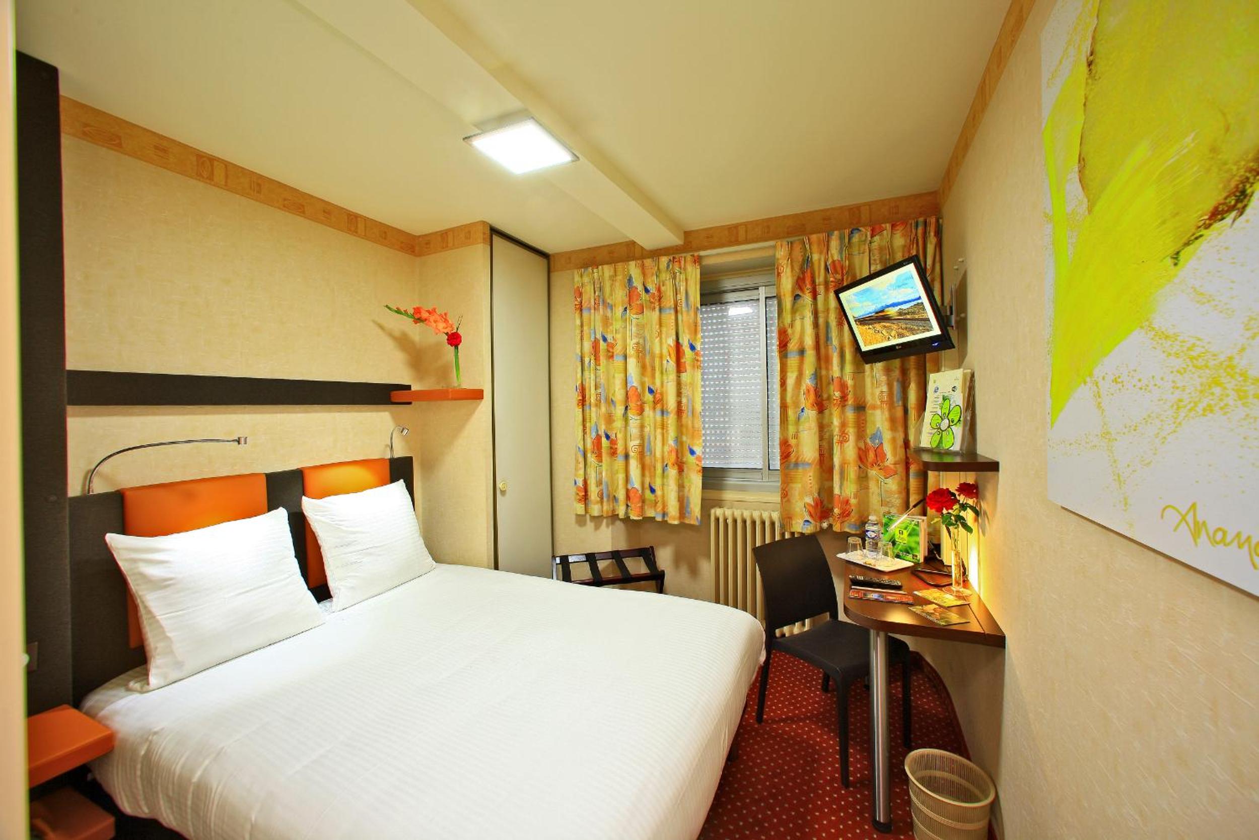 Experience comfort and style at Le Point Du Jour, located in La Roche-sur-Yon. Our 3-star hotel offers modern amenities including free WiFi, air conditioning, and flat-screen TVs in every room. Relax in our cozy beds and enjoy the convenience of a private bathroom with free toiletries.