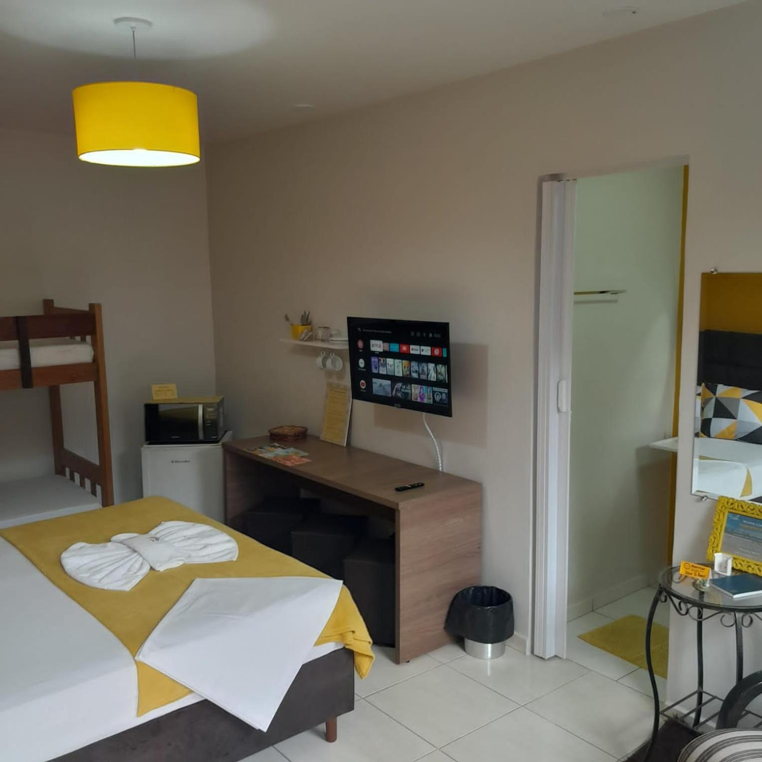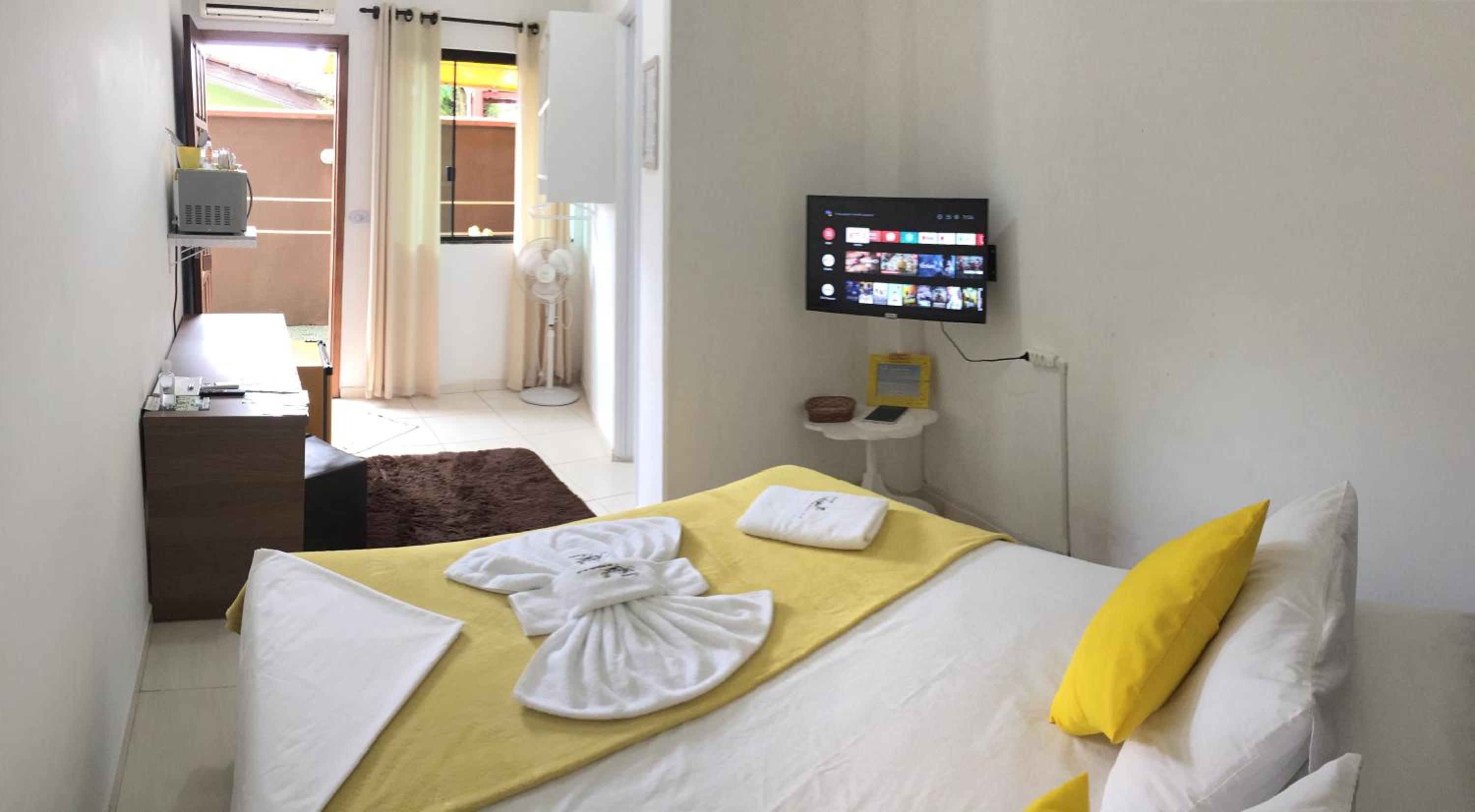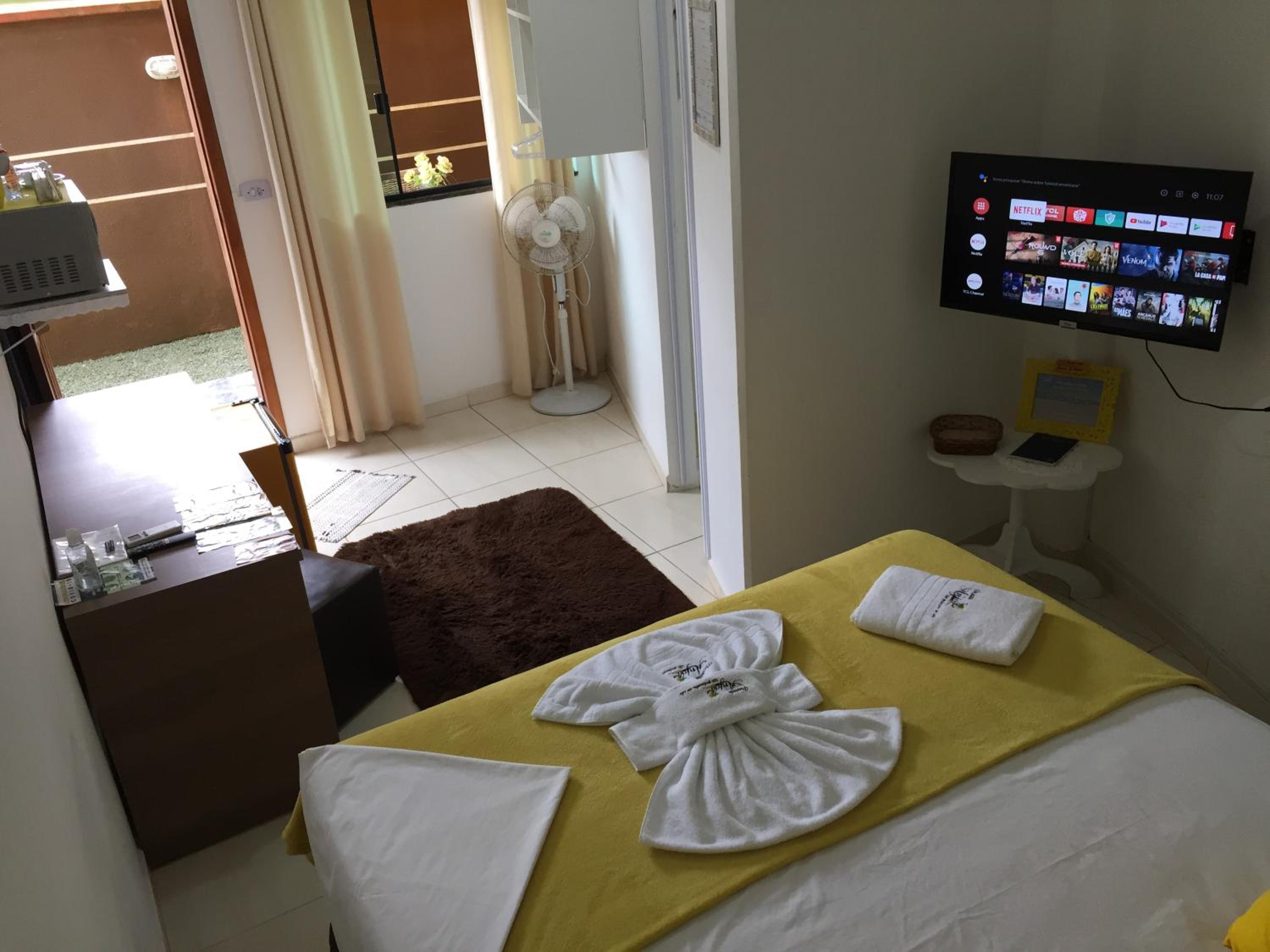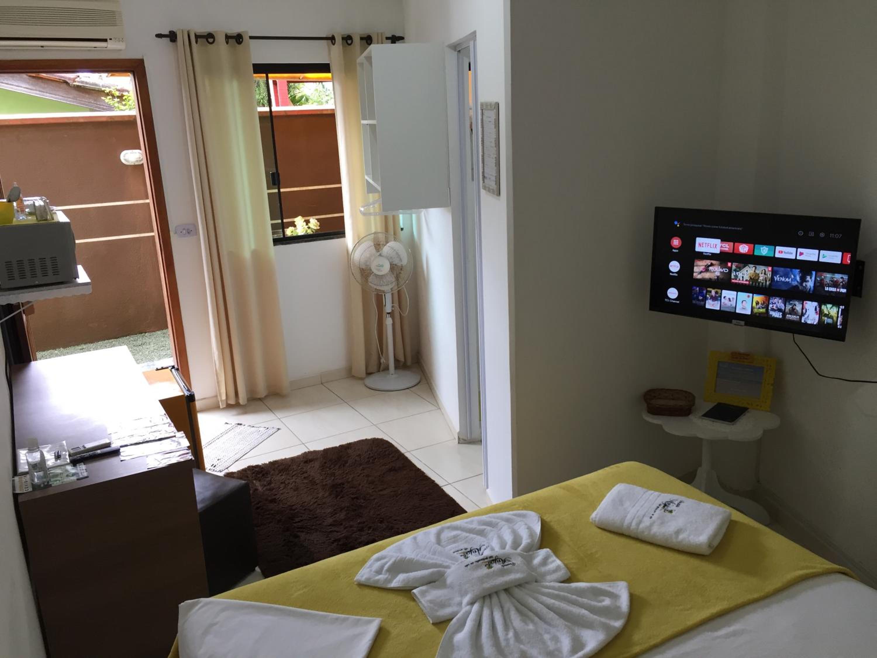 Falta de sabonete no banheiro, problema no controle remoto da TV, entrega da cesta de café da manhã às 7h (muito cedo), pouca cortezia no atendimento por parte da proprietária.