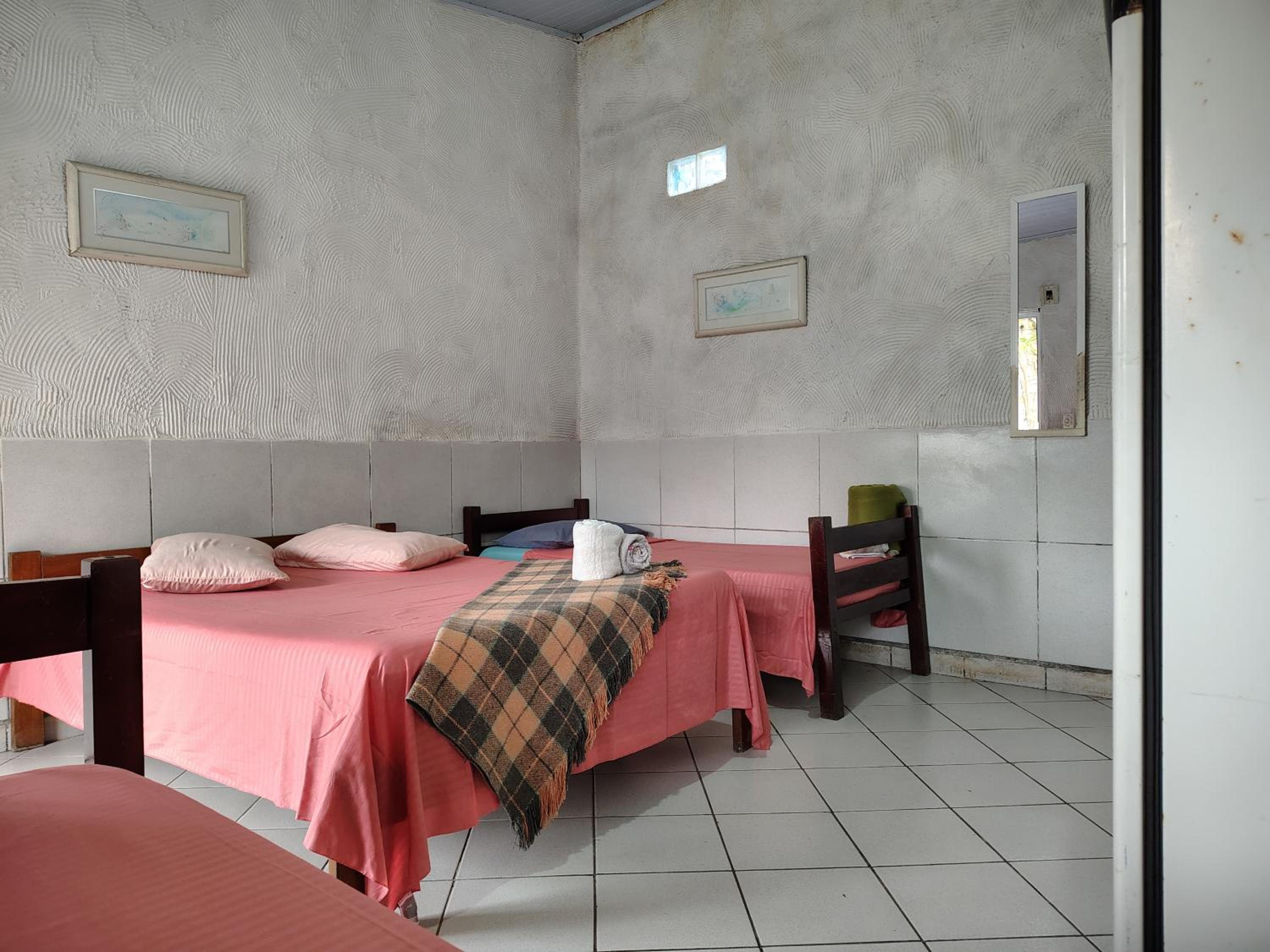 Já começa que eu cheguei e eu não tinha nem quarto isso pq eu reservei, fora que eu fiquei em um quarto de solteiro junto com a minha mulher para dividirmos uma cama de solteiro, sendo que n foi isso que eu aluguei, íamos tomar banho ficava caindo a resistência do chuveiro, não tinha nem uma cortina privativa qualquer pessoa que passasse do lado de fora tinha acesso a nós, tinha 1 tomada somente no quarto que funcionava aonde tínhamos que escolher se deixávamos o celular carregando ou se deixávamos o ventilador ligado pra n morrer de calor, cama e lençóis duvidosos tive ate receio de deitar, fora que procuramos outras pousadas e hotéis mas n tinha nada disponível pois eu faria questão perder o valor que eu paguei só pra n ficar naquele lugar insalubre