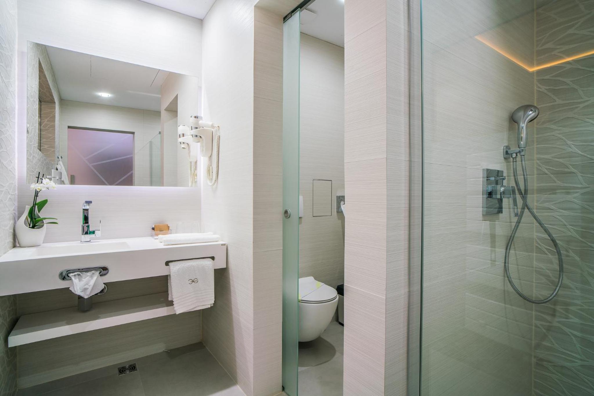 Hotelul are o clădire cu camere de 3 stele și alta de 4. Noi am fost cazați la 3 stele și am avut parte de o ședere foarte plăcută. Camera noastră a fost foarte spațioasă. Baia avea dotări/finisaje cam uzate, dar funcționale.