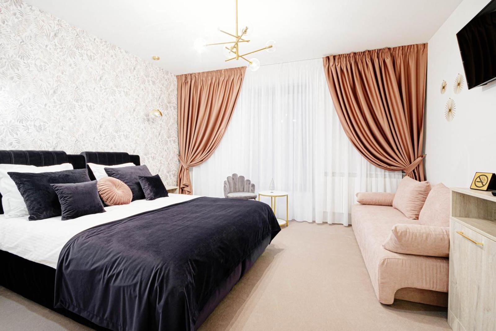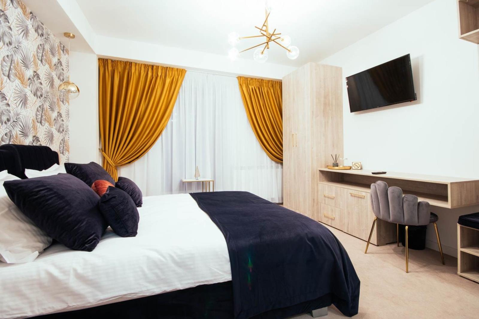 Experience comfort and style at LIANE BOUTIQUE HOTEL in Câmpulung Moldovenesc. Each room is elegantly furnished with a desk, flat-screen TV, and modern amenities. Upgrade to a room with a kitchenette for added convenience during your stay.