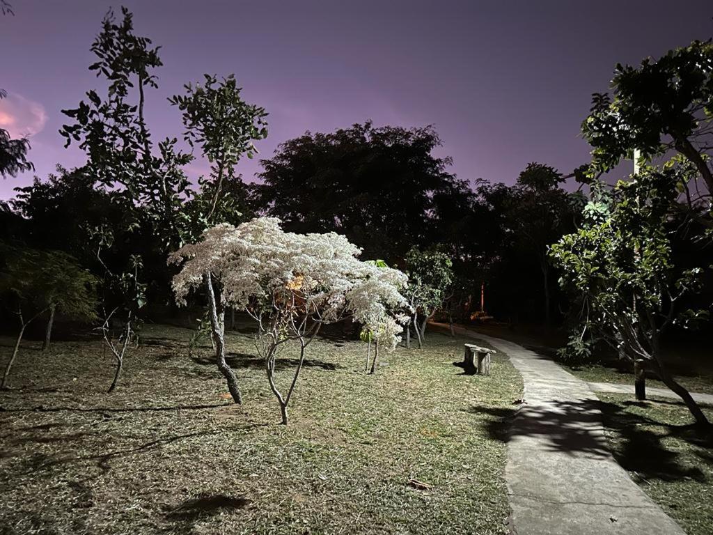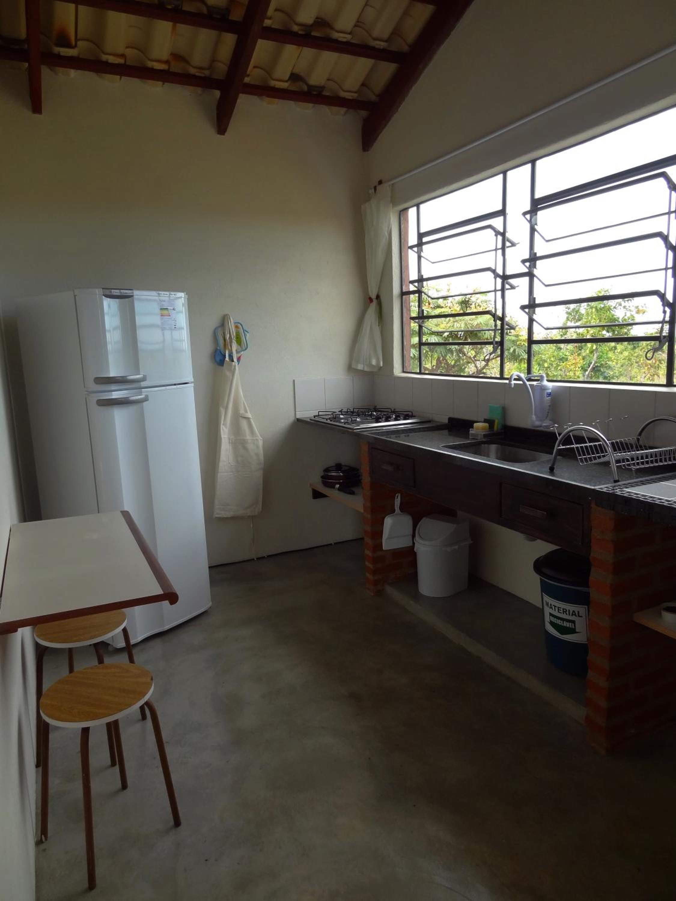 Área muito preservada, várias árvores nativas do cerrado, lugar silencioso, calmo, ideal para descansar. Chalé super confortável, tudo novo. Camas e travesseiros confortáveis, toalhas limpas e novas. Cozinha com tudo necessário. Anfitriões gente boa, Kalinca, Marcos e Marlene!