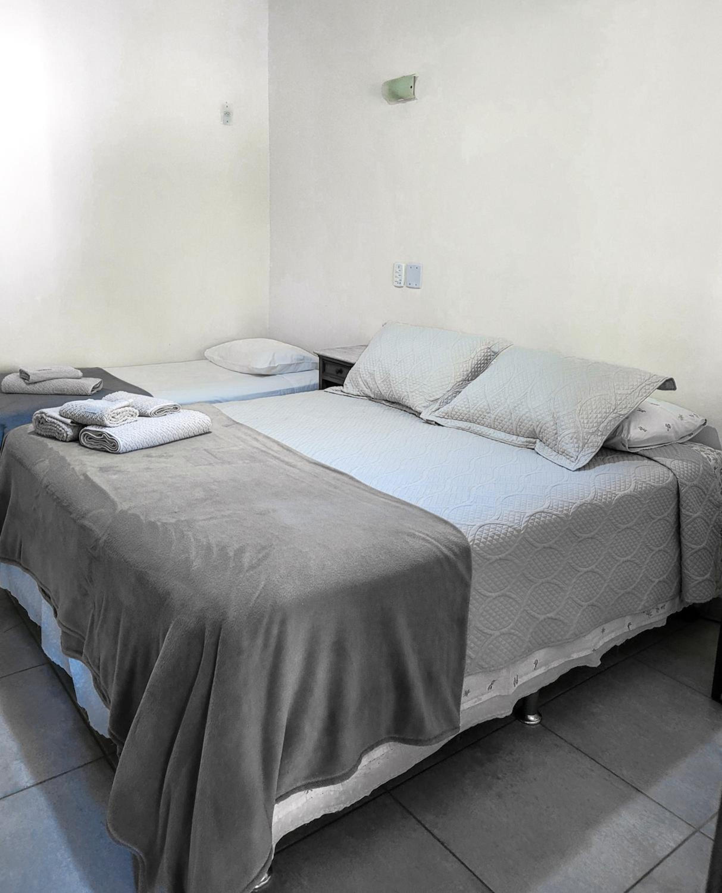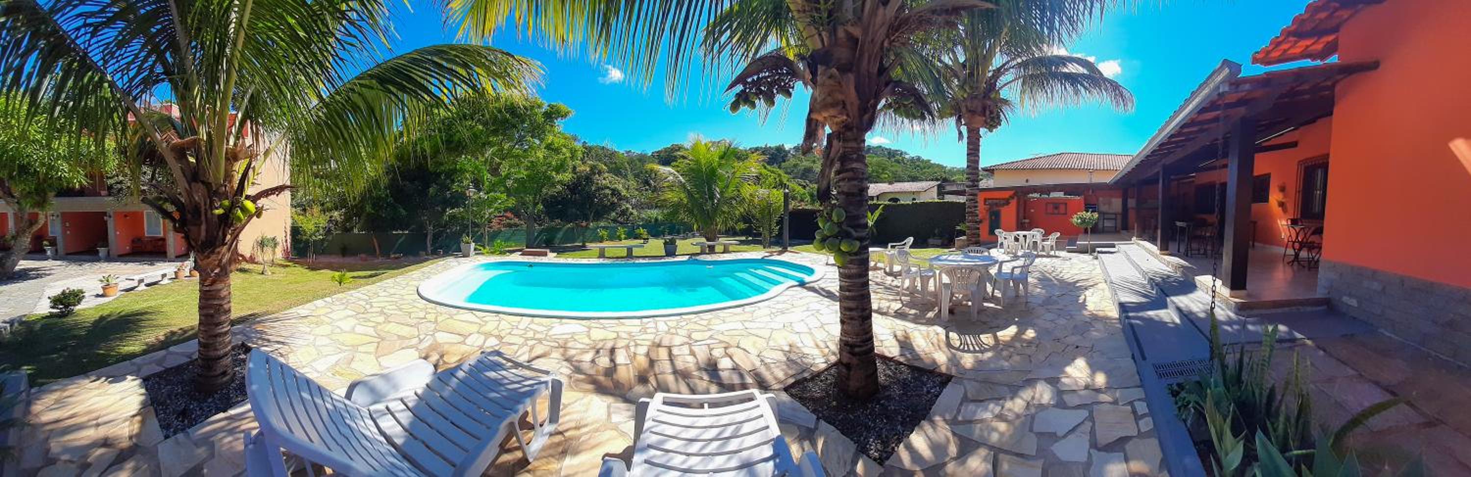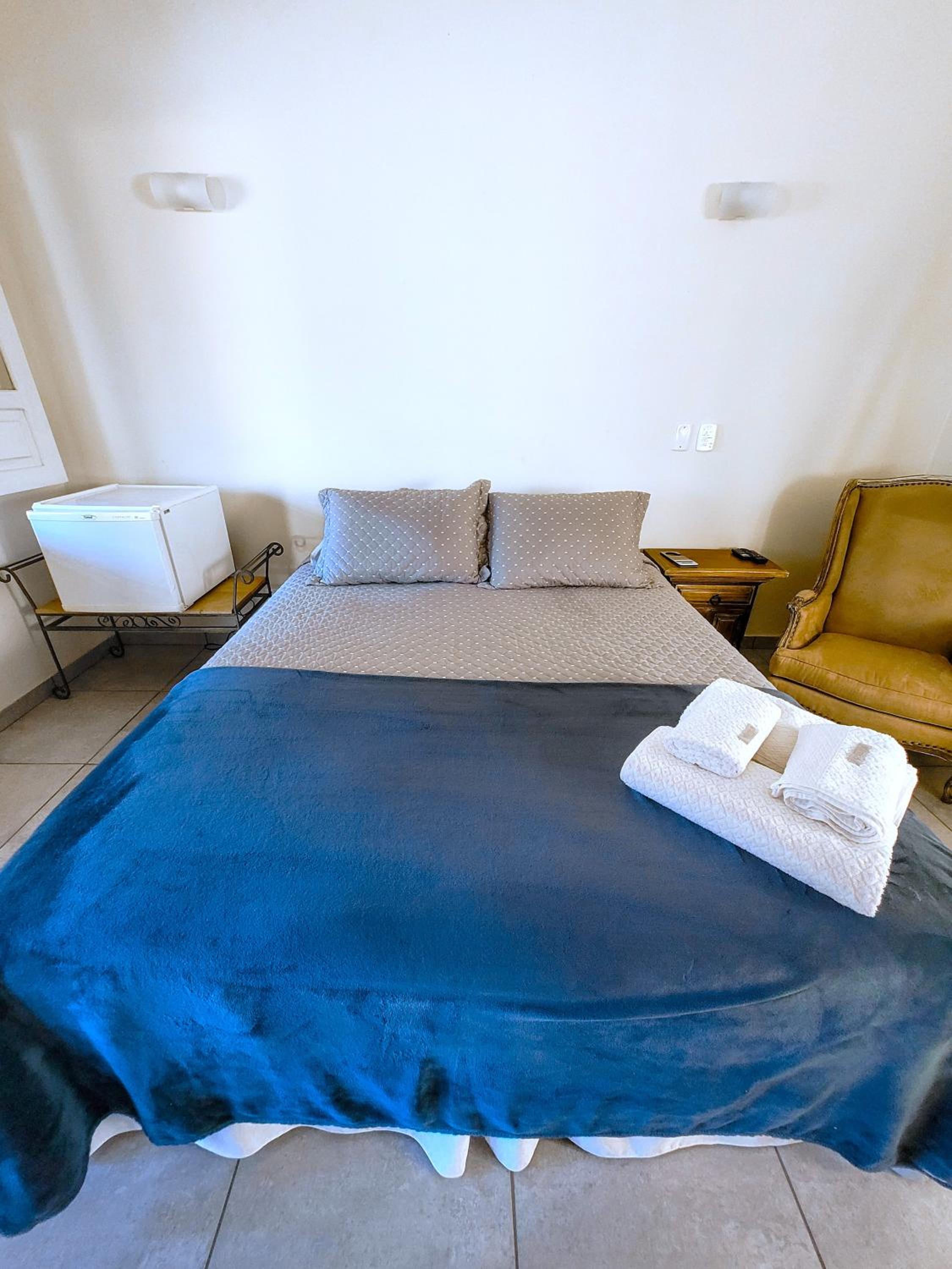 A pousada é muito bem equipada com ar-condicionado, ventilador, frigobar, um banheiro maravilhoso