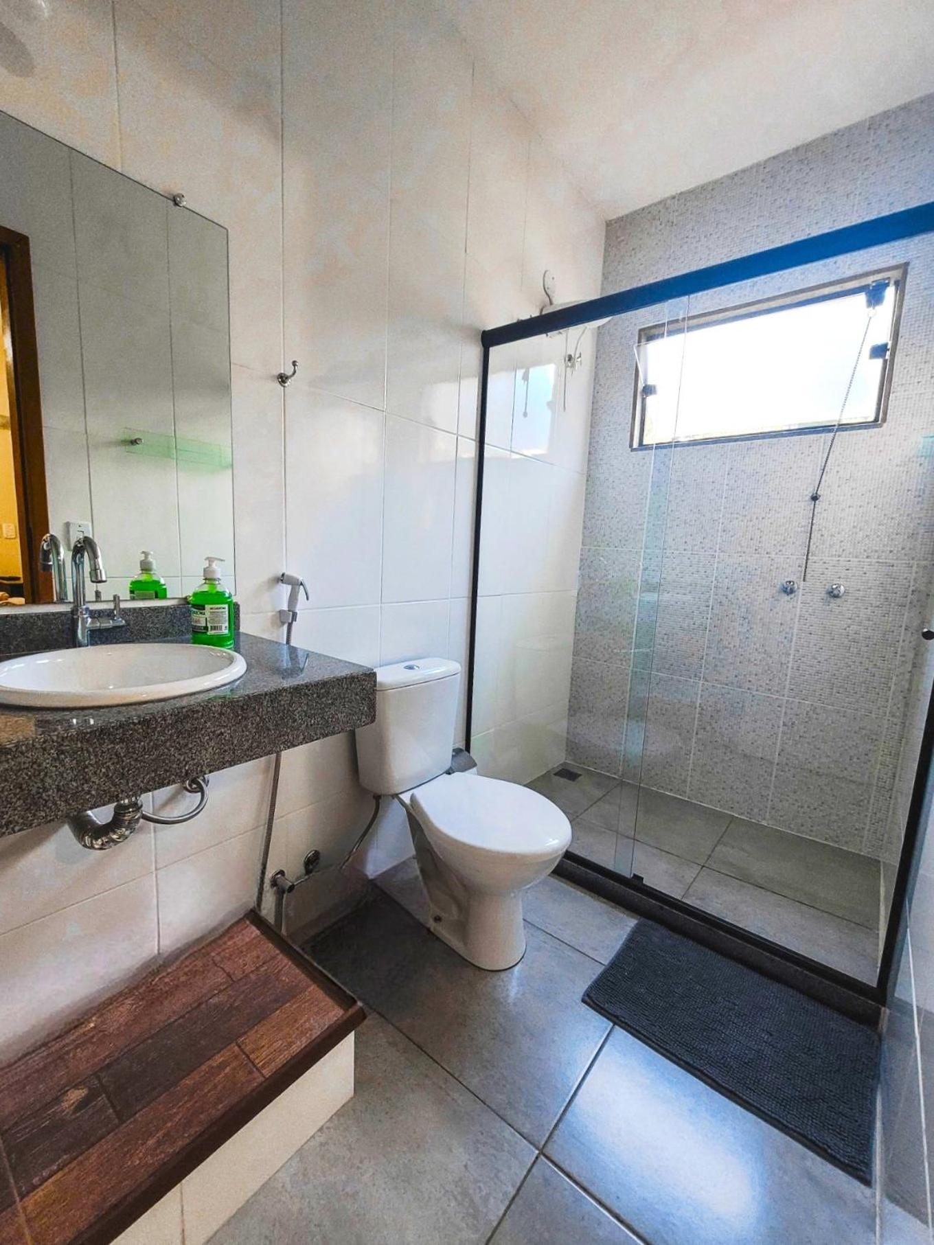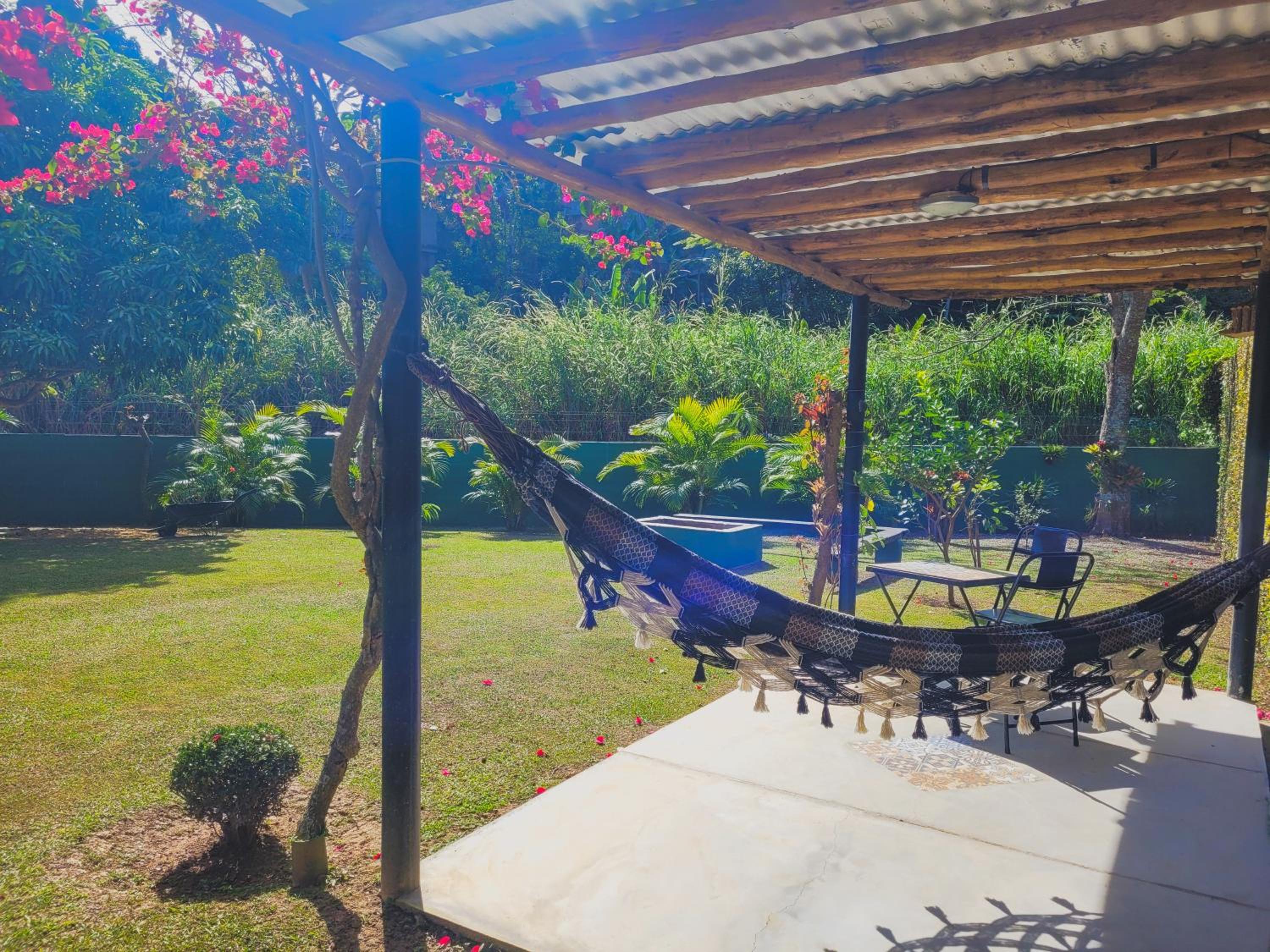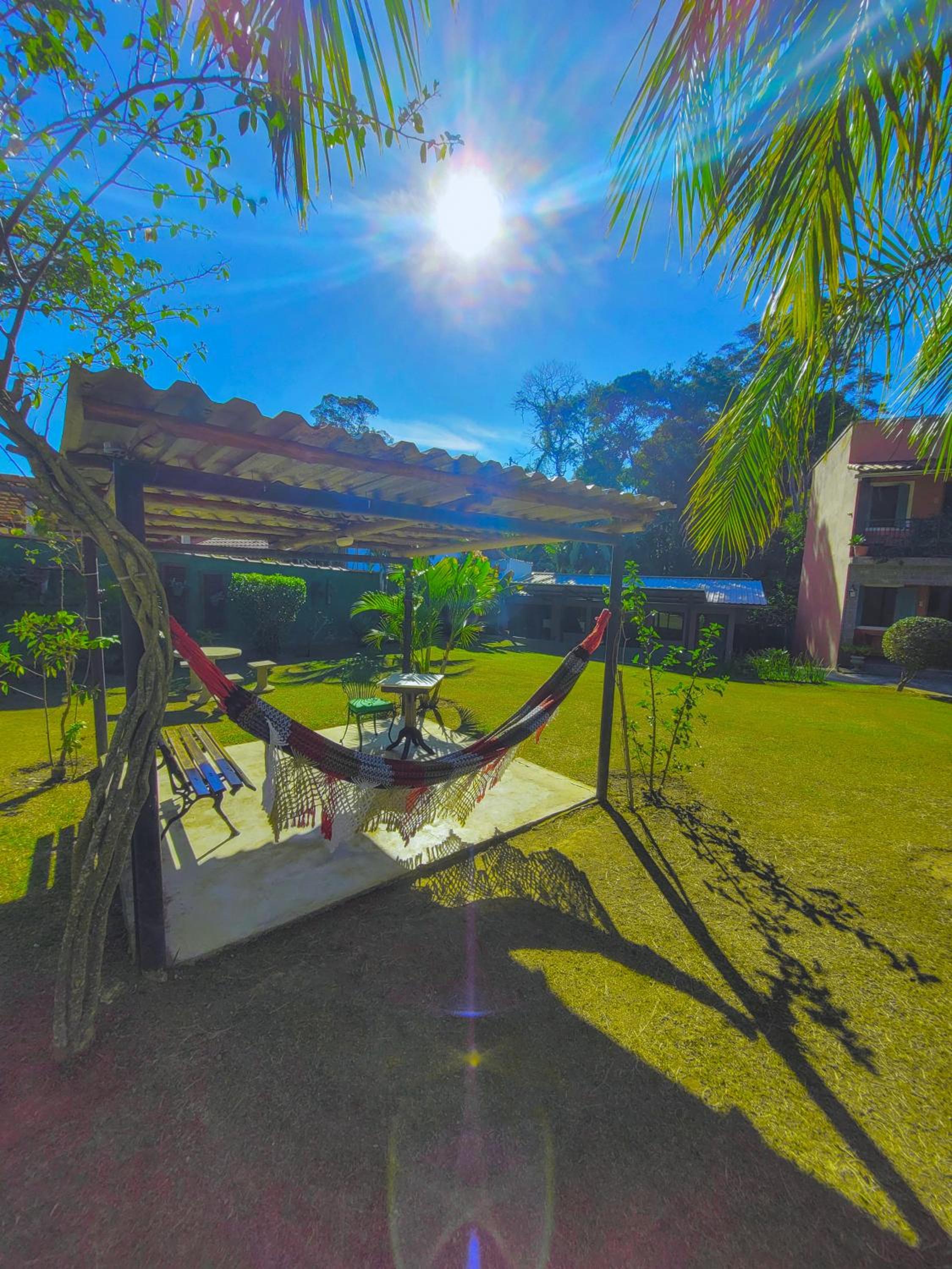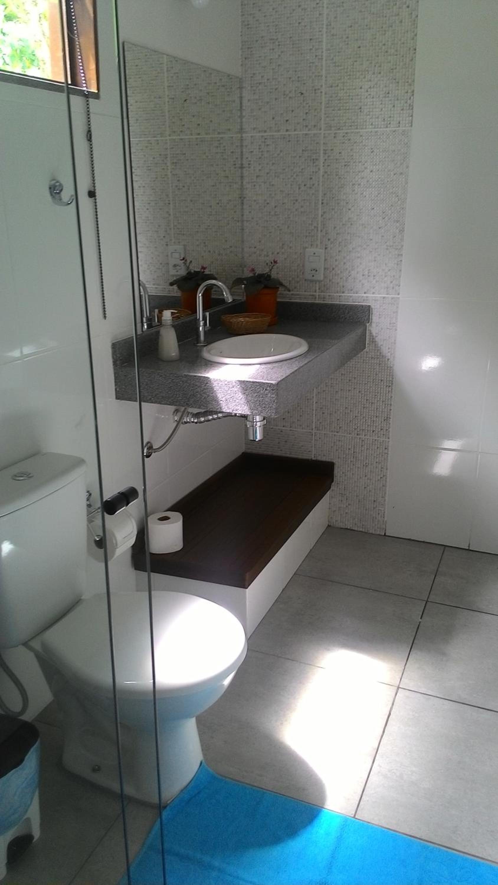 A pousada é muito bem equipada com ar-condicionado, ventilador, frigobar, um banheiro maravilhoso