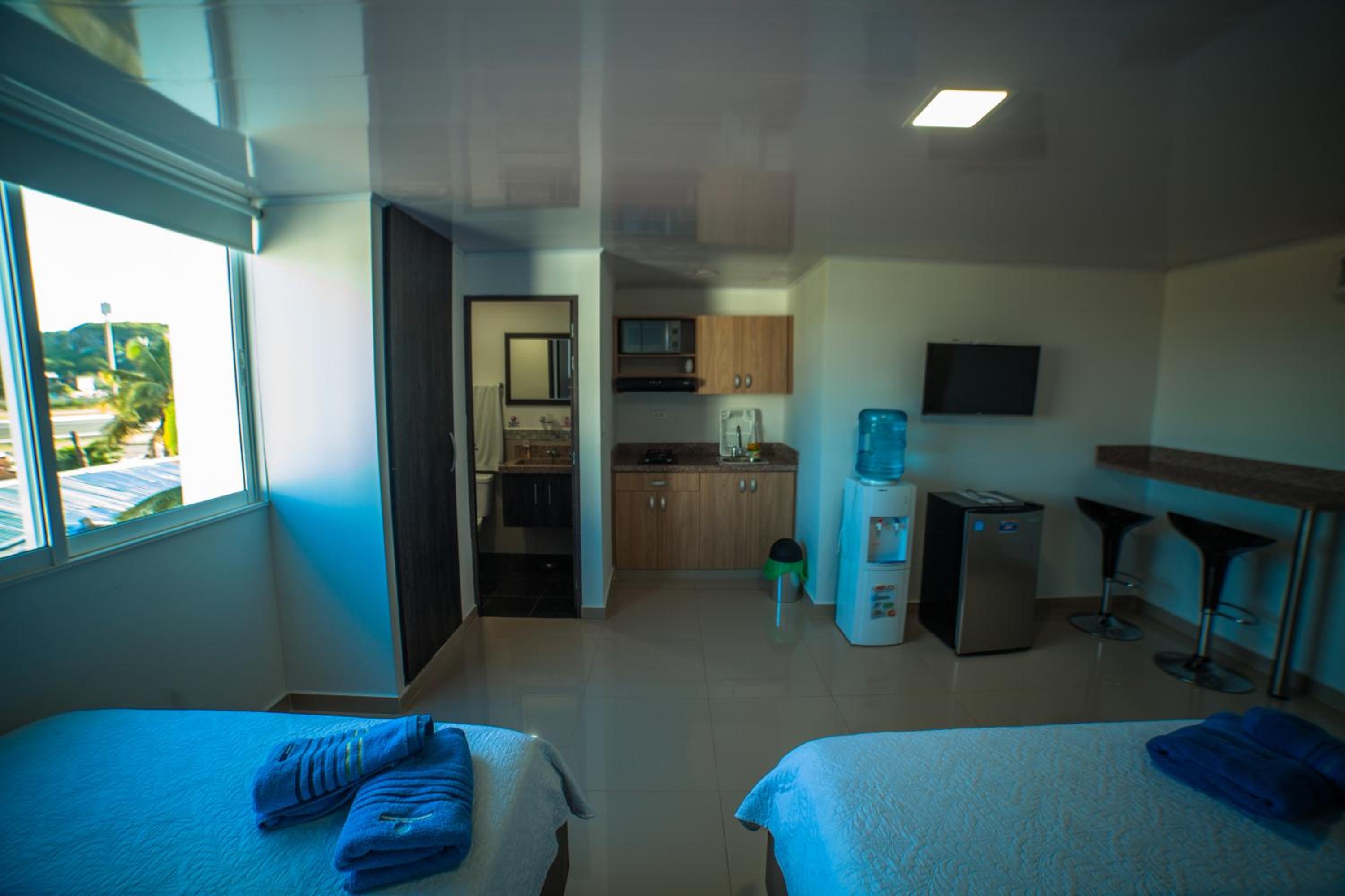 Luxurious Accommodation: Experience a stay at Ocean Blue Beach, located just 600 meters from Spratt Bight Beach in San Andrés. Enjoy our outdoor swimming pool, free private parking, and on-site restaurant for a relaxing vacation.