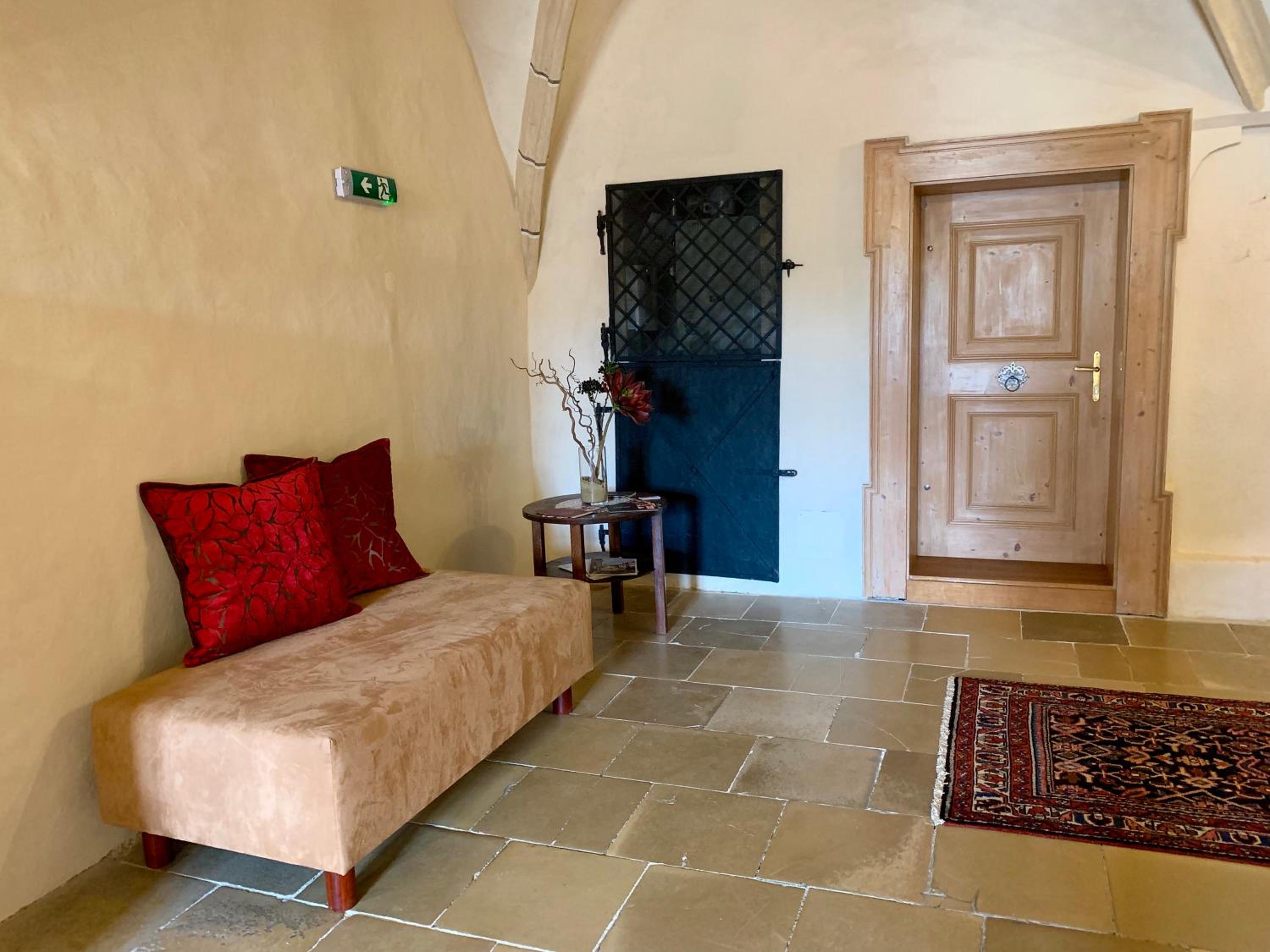 Schöne Gewölbe und sehr ruhig, wir haben vom Restaurant nichts gehört.