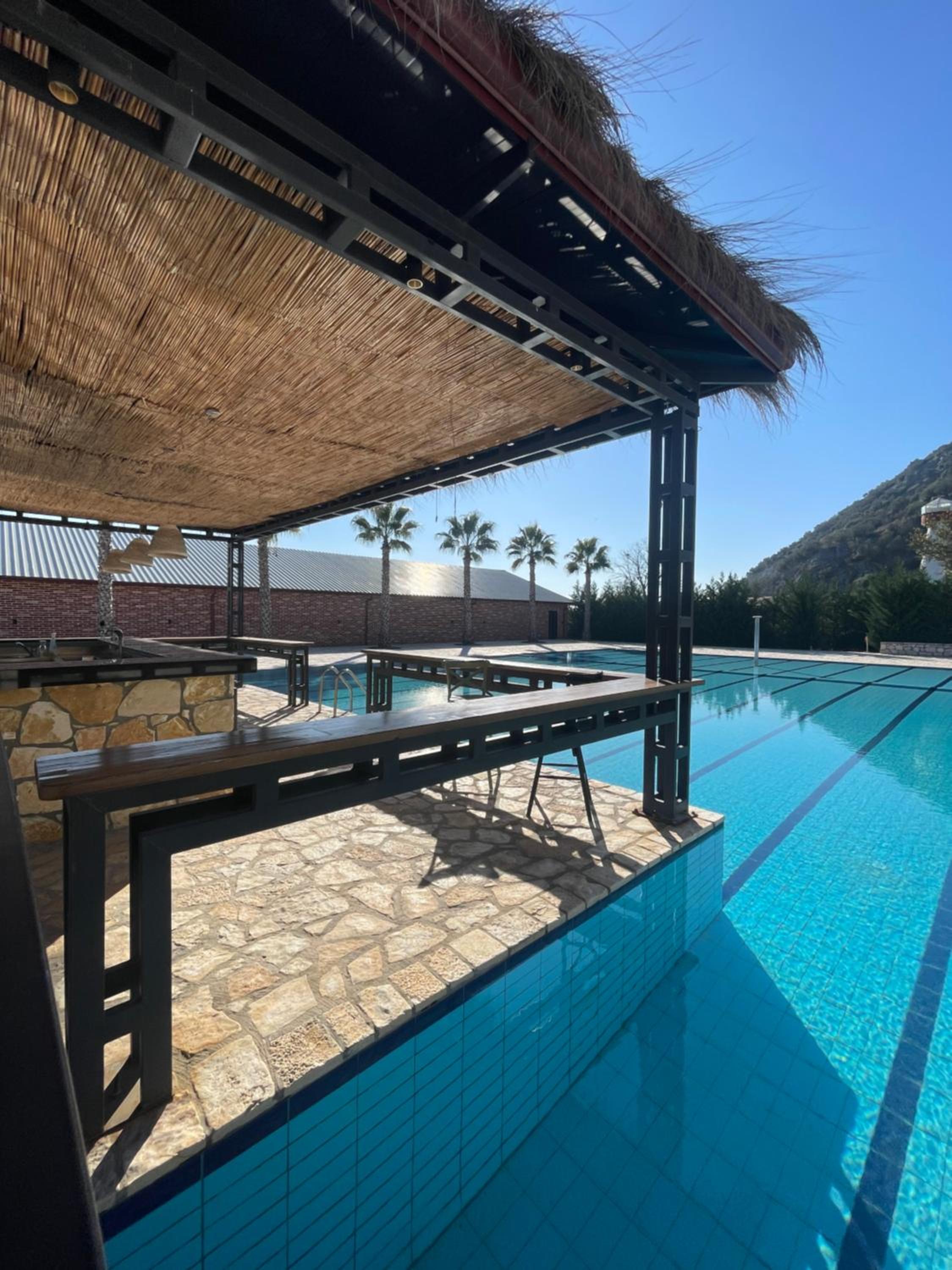 La piscine ÉNORME avec vue sur les montagnes. Transats toujours à disposition (et compris dans le prix), ambiance musicale chill House avec le bar au milieu de la piscine. Splendide.