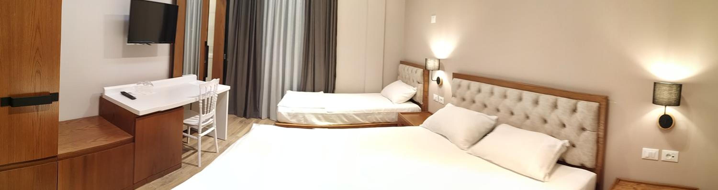 Nous avons fait un voyage de trois semaines en Albanie et c'est définitivement le meilleur hôtel que nous avons eu. Les chambres sont spacieuses et propres, les lits très confortables, la clim est silencieuse, il y a des volets (chose finalement rare en Albanie !). C'est également ici que nous avons pris notre meilleur petit déjeuner avec le choix entre quatre options pour satisfaire tous les goûts. La cuisine du restaurant est absolument délicieuse et abordable. Enfin, le personnel est très sympathique et l'hôtel très bien situé. Nous le recommandons à 100%.