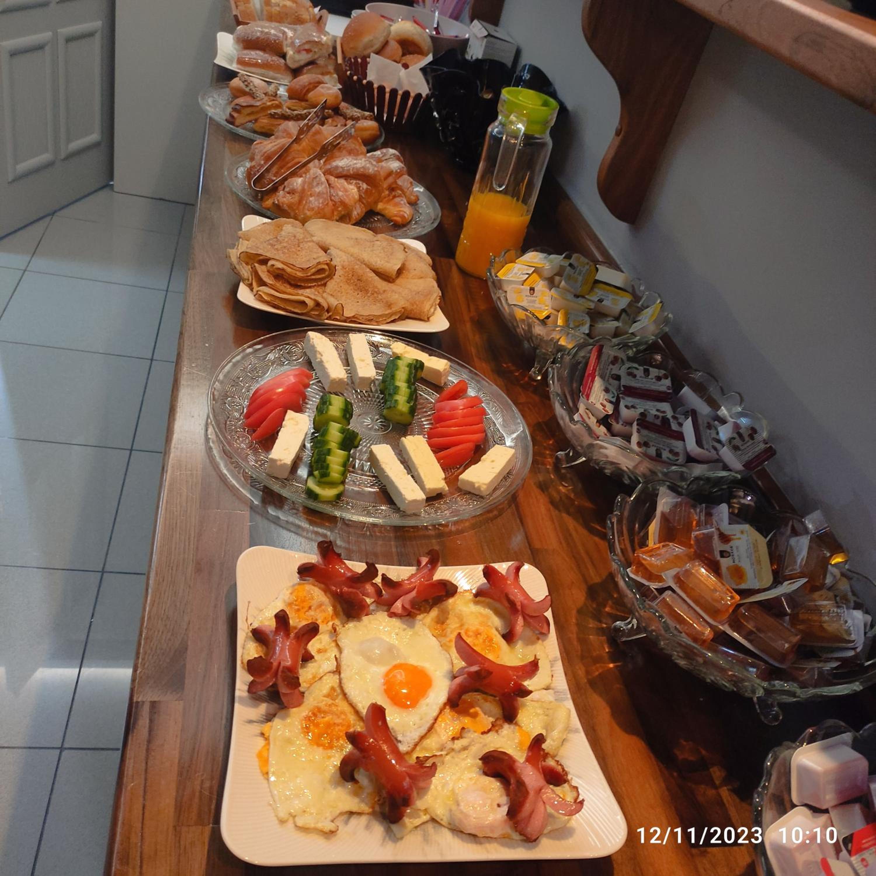 Abwechslungsreiches Frühstück, allerdings Croissants vom Vortag und Melone war ziemlich mehlig. Das Meiste vom Frühstück (Ei, Brot, Wurst, Käse, Marmelade, Butter...)war aber gut.