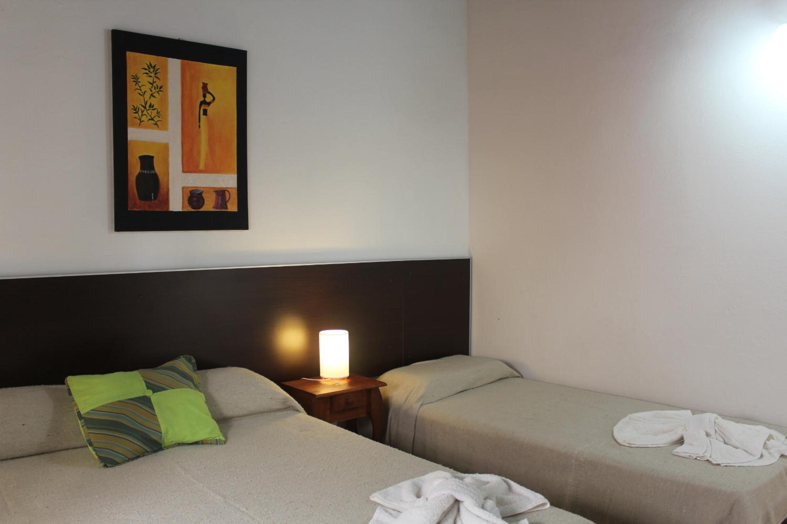 Relax in our well-equipped rooms featuring modern amenities such as a 24" LCD TV, cozy sommier bed, and private bathroom facilities. Enjoy a restful stay with conveniences like a ceiling fan, safe, and a hairdryer.