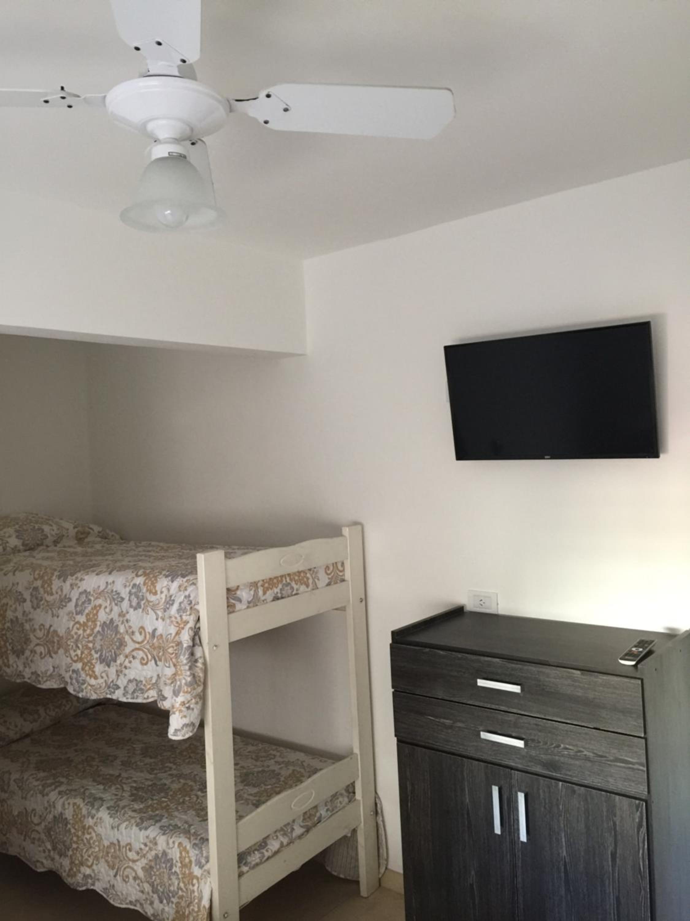 Un solo enchufe en la habitación, ventilador ahy que enchufarlo en el baño no tiene aire relación al precio
