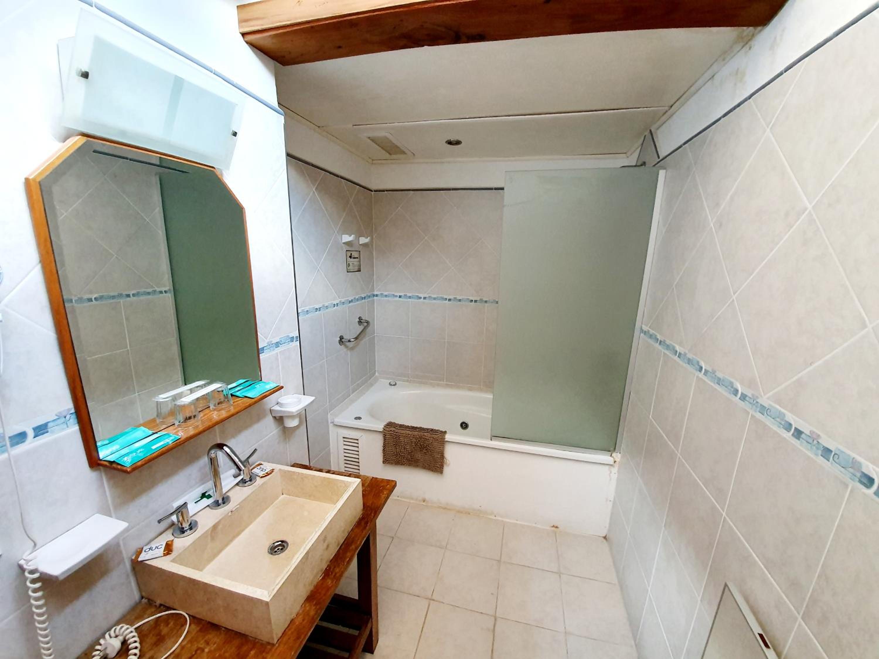 El baño era mini, la bacha estaba en la pieza y era mini. Había una cama marinera en la cocina estar que no tenía Black out asique entraba el sol y las luces del resto del complejo toda la noche prendidas. Por algún motivo cuando fuimos no hubo servicio de limpieza y nos dejaron en la heladera el desayuno para los dos dias que nos quedamos pero no hubo servicio. Tuvimos que hacernos lo nosotros y lavar todo cada vez. La mesa con 4 sillas no entraba. Había que correr las camas para poder sentarse. Es un dormí para dos personas y meten 4