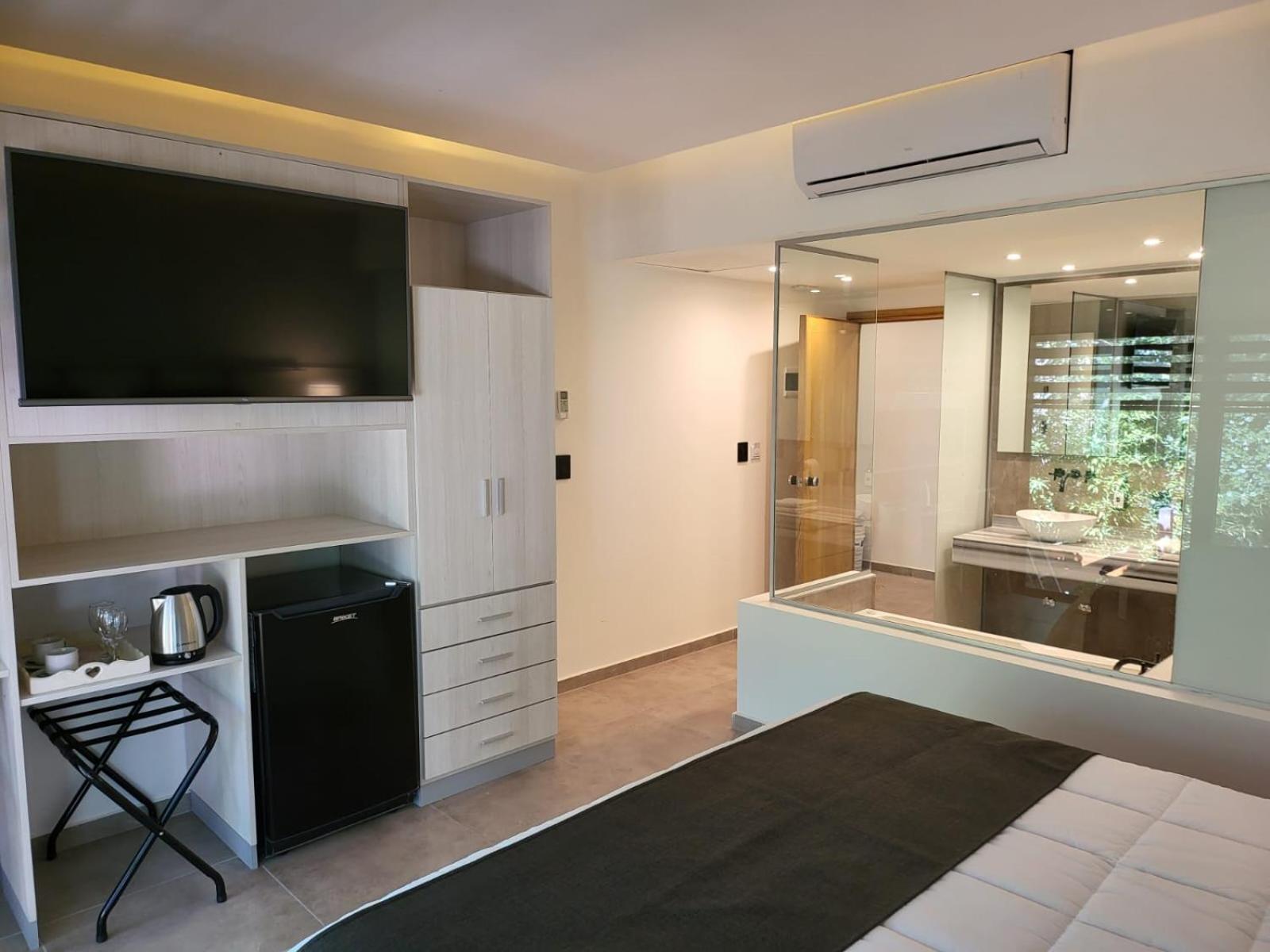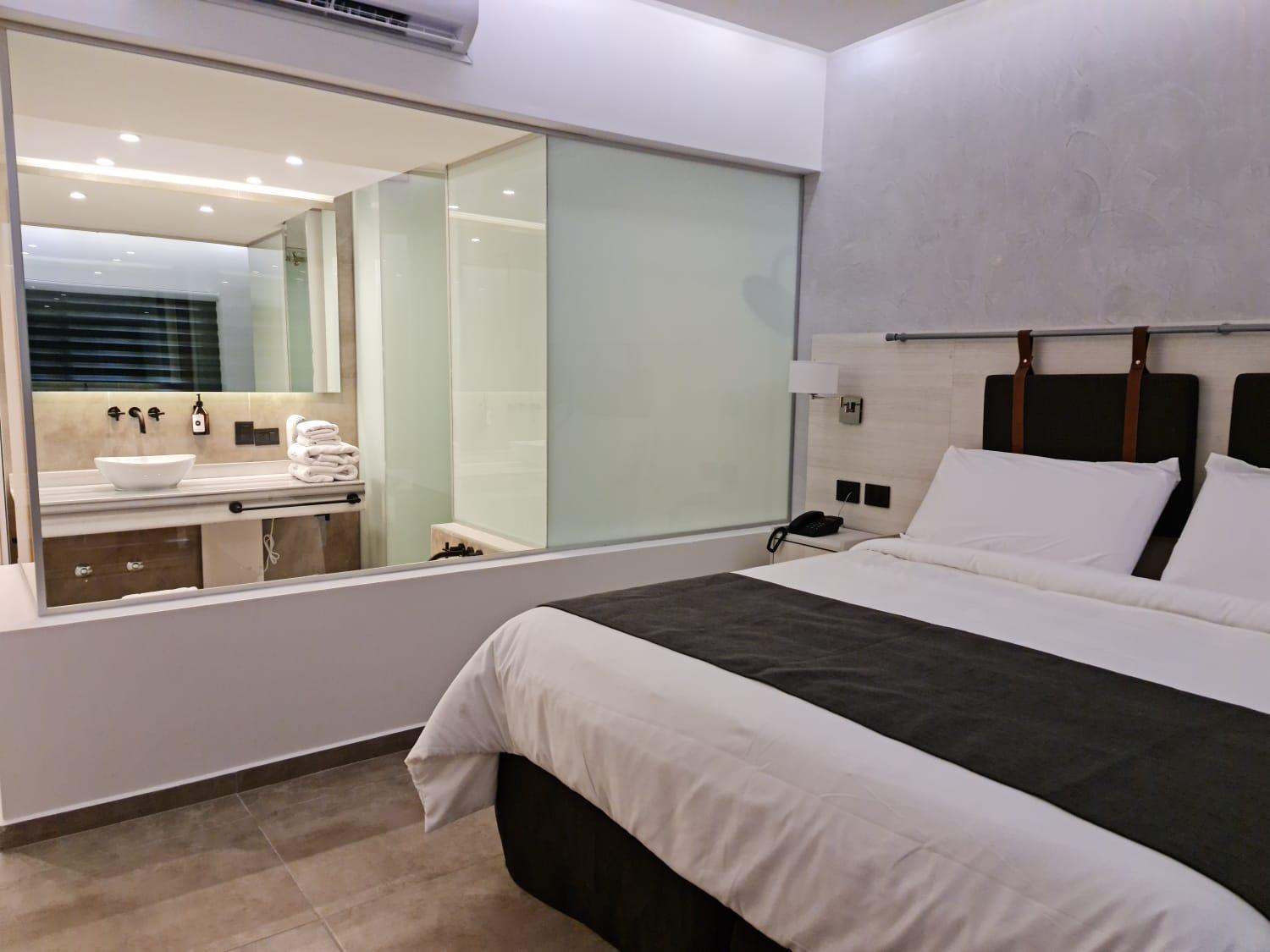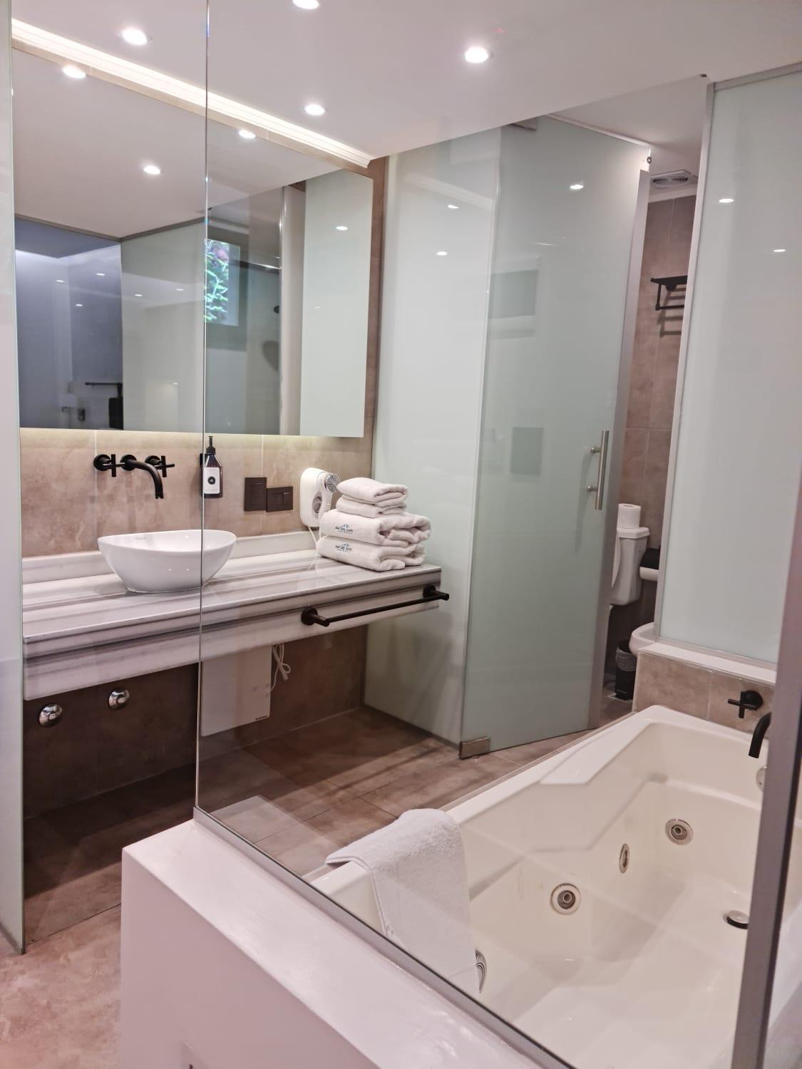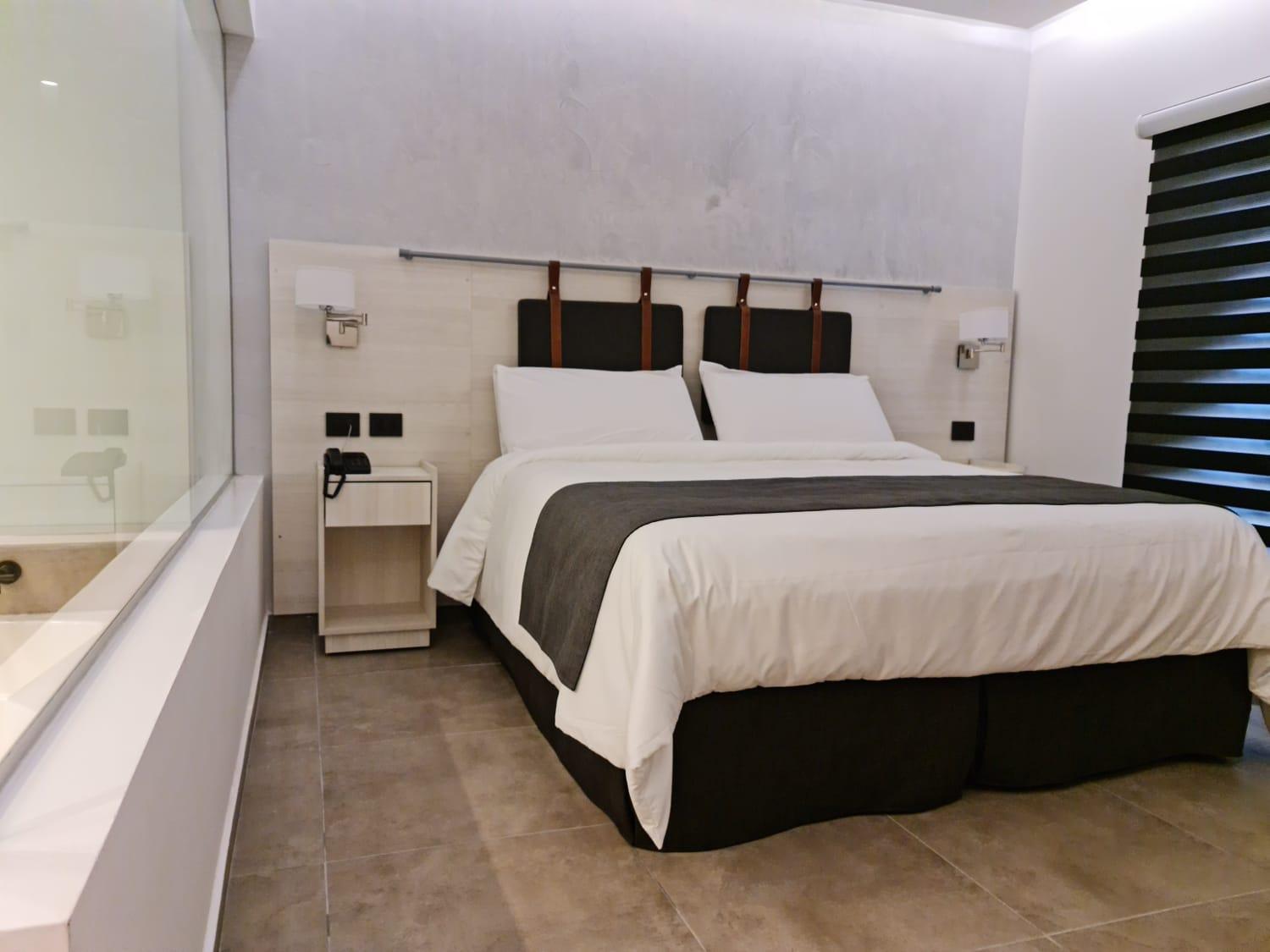 El hotel es hermoso, con estilo de cabaña, muy tranquilo y con hermoso parque. La pileta muy linda y la disfrutamos mucho. La habitación es excelente y super confortable. Las fotos de booking que publicaron son reales. Muy bueno el sistema de ingreso electrónico y seguridad. También la cochera cubierta.