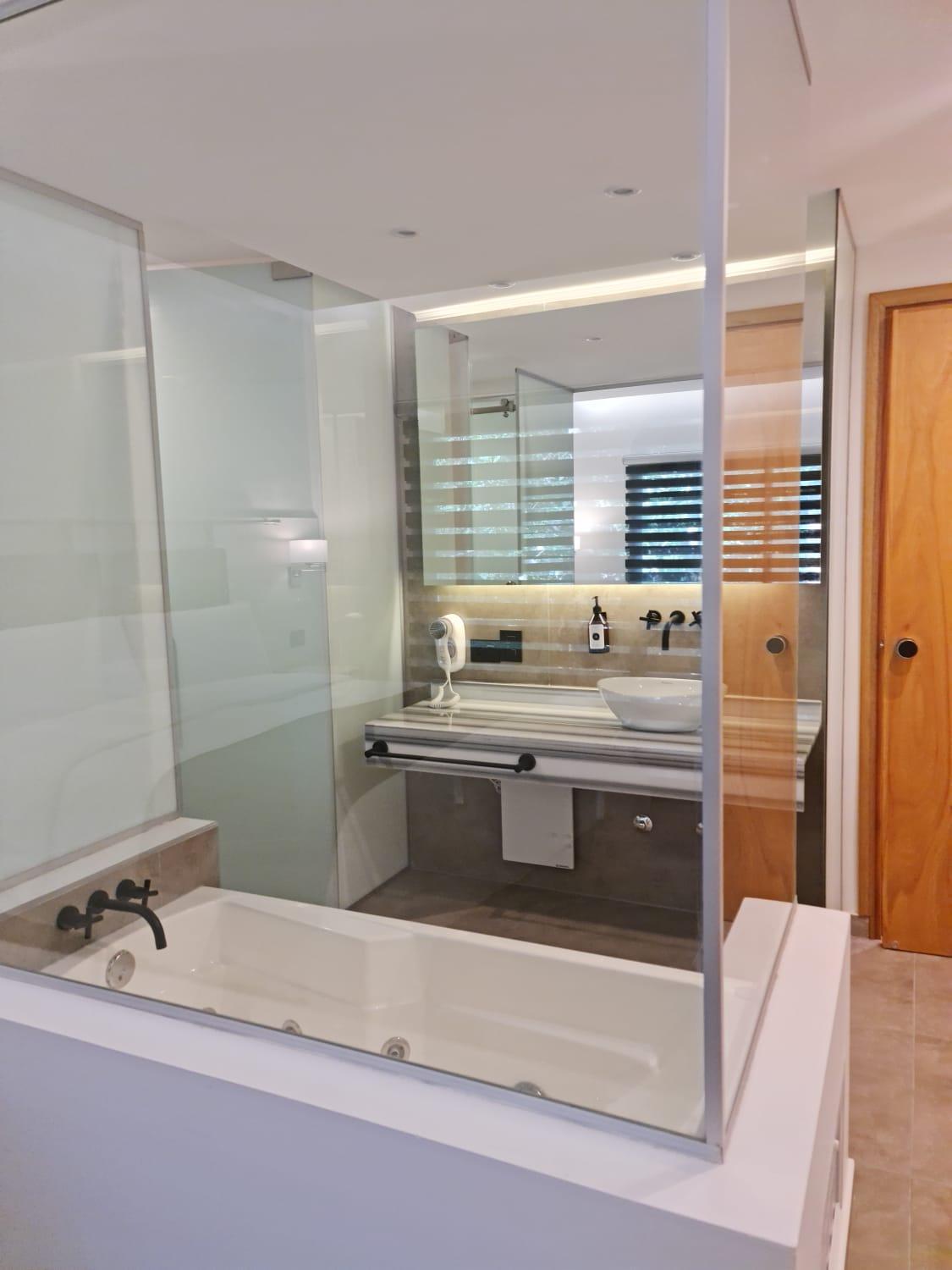El desayuno es bueno, apreciamos que se sirva en el momento de acuerdo a lo que uno consumirá. El servicio de playa resulta cómodo, la distancia a la playa es razonable. Estacionamiento cubierto. El Wifi excelente, comunicación por zoom sin problemas. Buenos lugares para comer (algunos de ellos también están en Mar de las Pampas) a metros del hotel, no hay necesidad de sacar el vehículo. Pileta cubierta, temperatura del agua agradable, buen tamaño para nadar. La atención muy buena. Todo el entorno es muy tranquilo.