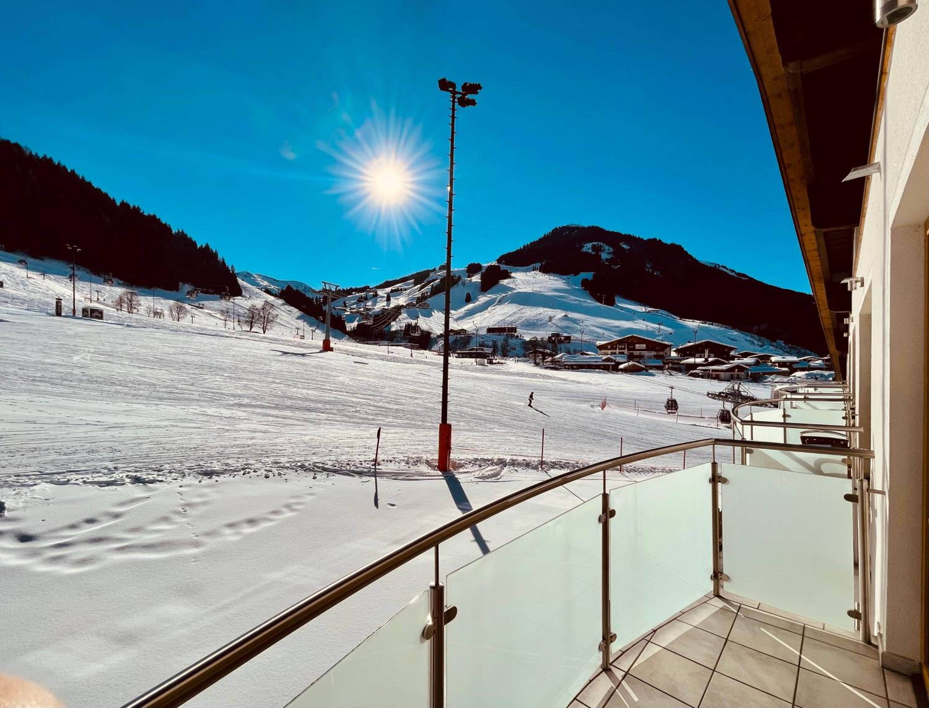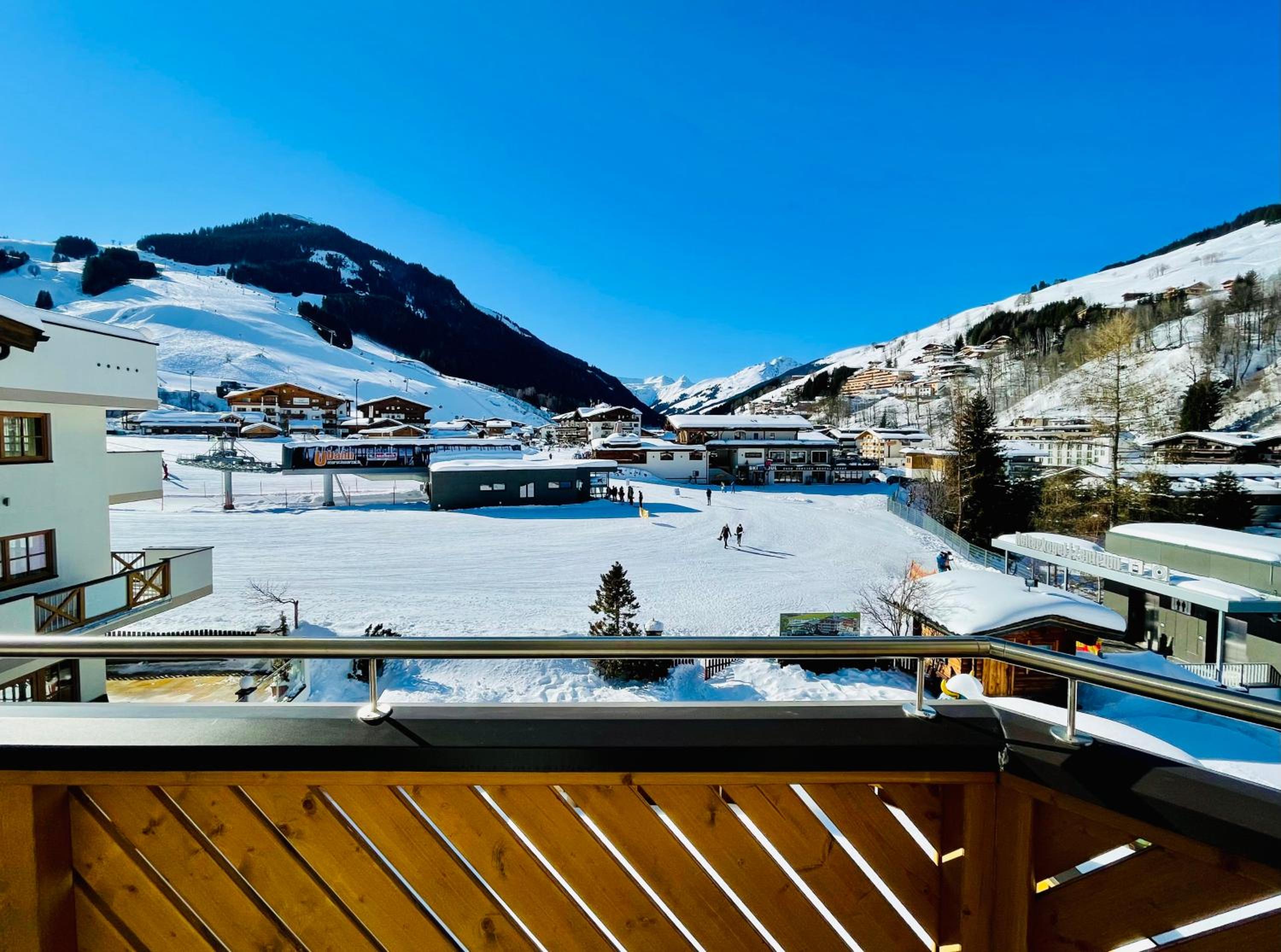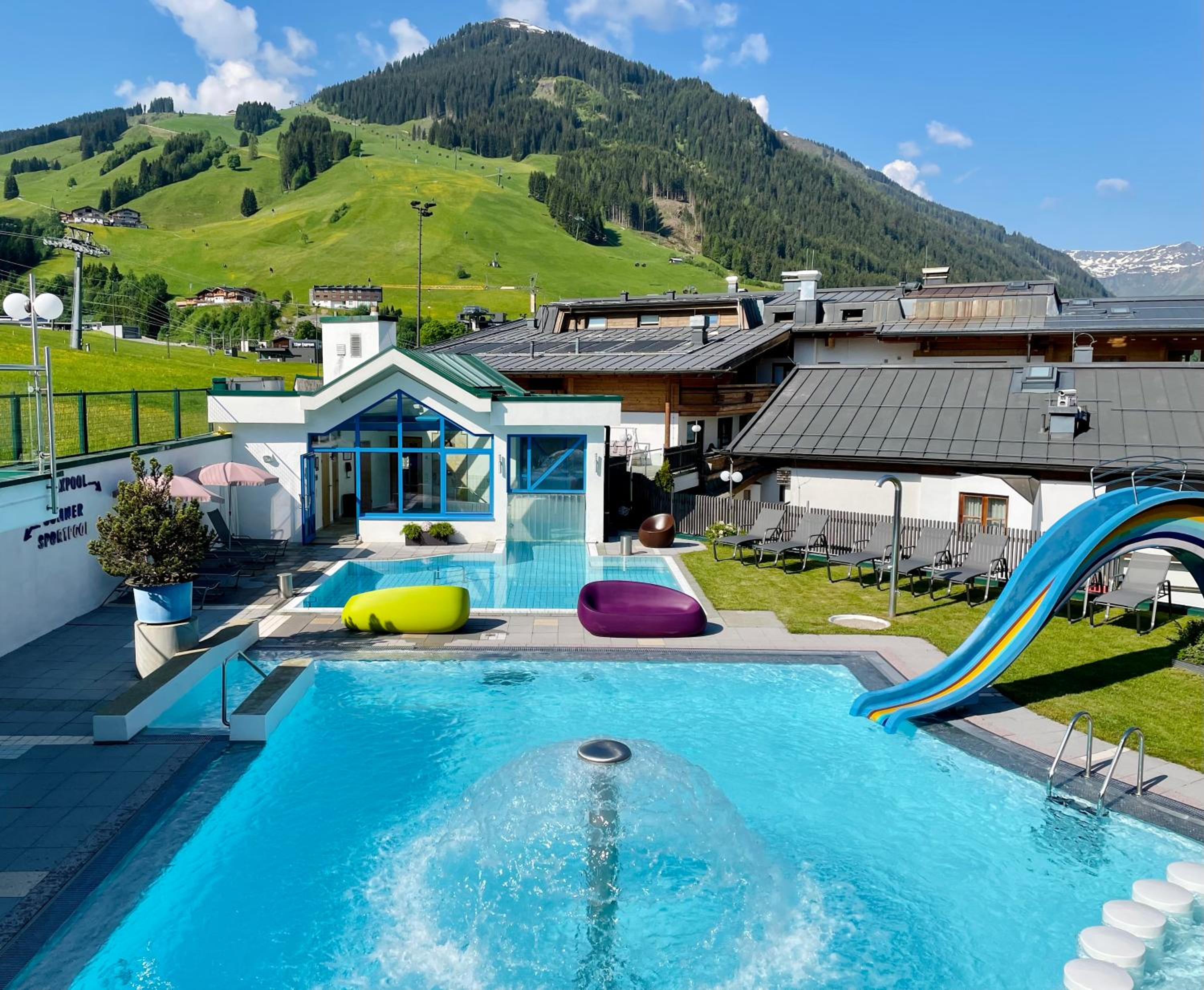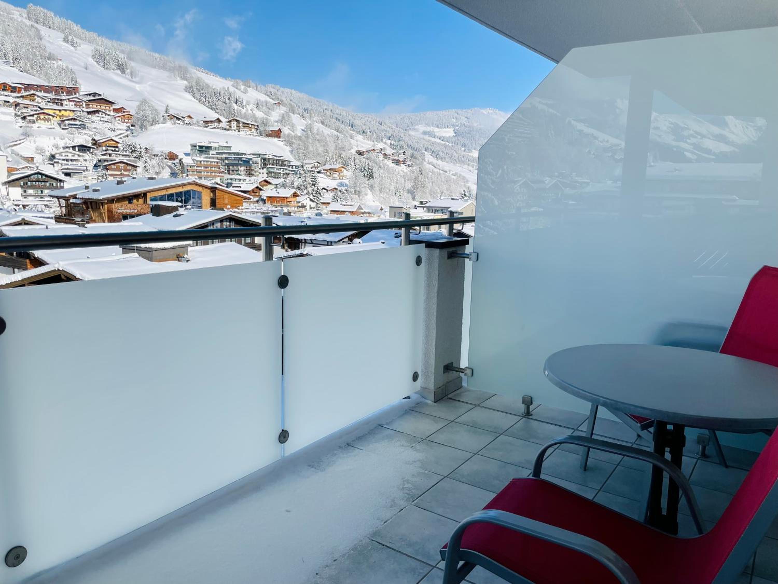 Hotel is very nice and has a family atmosphere, located in a quiet area of Hinterglemm, close to some lifts, shops and center. Room and the facilities were very clean, maintained daily. Our room was big, clean, with comfortable beds, had beautiful view and a big terras, with chairs and a table. Staff was very friendly and helpful, both in the hotel and restaurant. Food and service in the restaurant was excellent, with wide variety of choices for breakfast and some choices for dinner that would accommodate any preference. My kids loved the snack they were serving for lunch. We loved the swimming pools, both the inside and the outside and some of the saunas in the wellness area. Hotel also has some bicycles that guests can use for free; we also enjoyed a local ride. Hotel garage had plenty of parking spaces. And the Jocker card they offer with the room is a great addition, we could use it in many places we went around, with reduced price for some attractions and free rides with the gondolas.