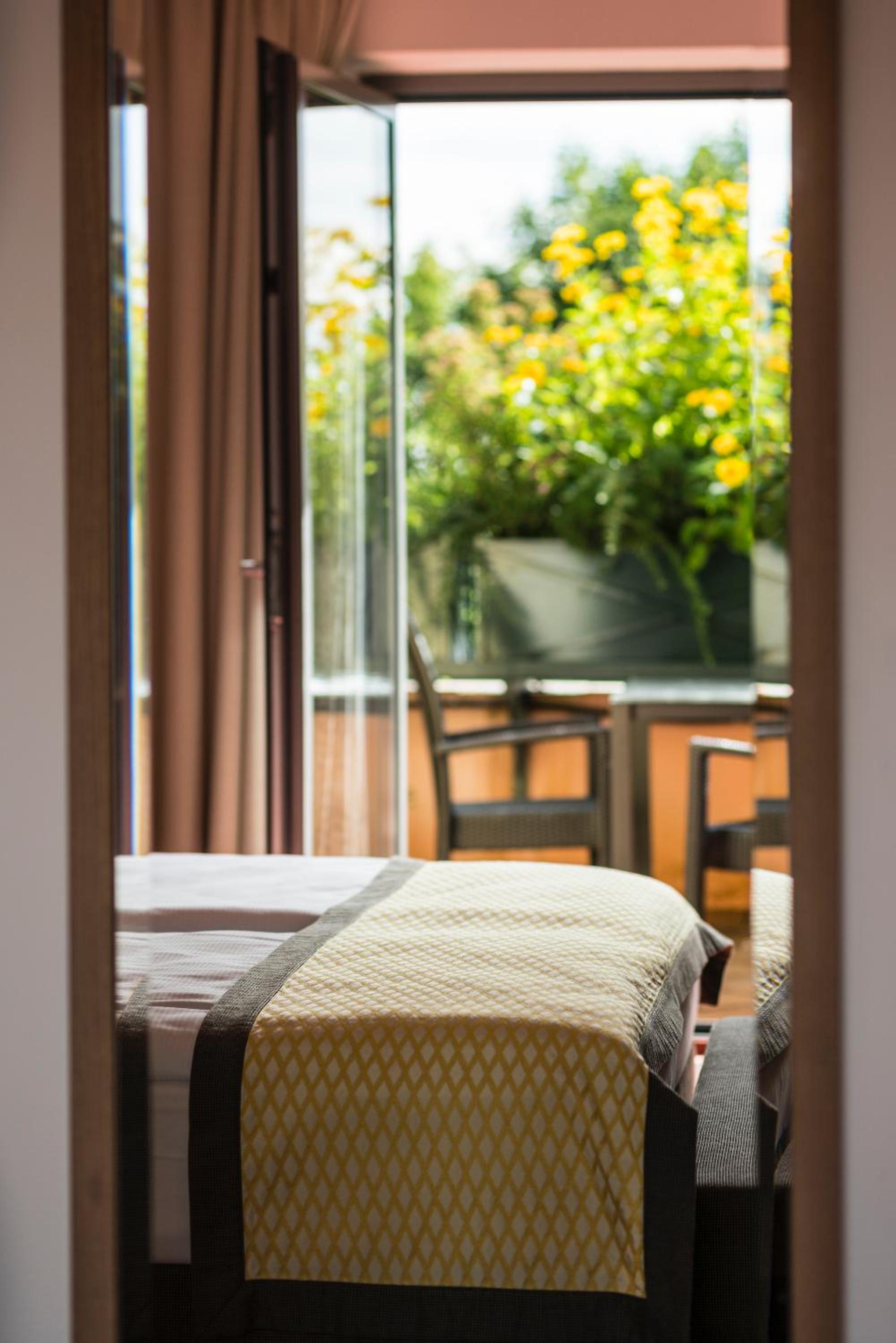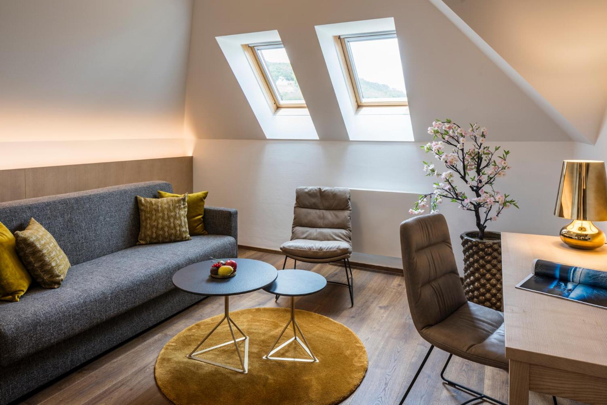 Hotel Turmhof offers a luxurious experience with its sauna, infrared cabin, and relaxation area with a roof terrace. Guests can unwind and rejuvenate in style during their stay.