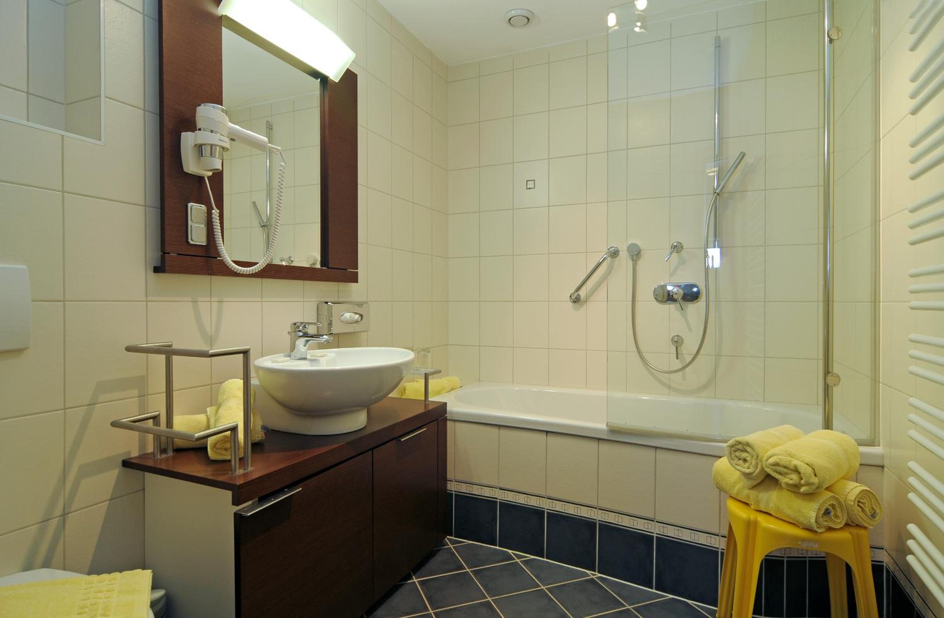 Unser Zimmer war etwas in die Jahre gekommen, und uns fehlte ein Kühlschrank und die sprichwörtliche "schöne Aussicht". Wir mussten nach 21:00 Uhr mit unserem Hund raus, leider gab es draußen keinerlei Beleuchtung, sodass man sich kaum einen Schritt vom Hotel entfernen konnte. Das nächste mal nehmen wir eine Stirnlampe mit.