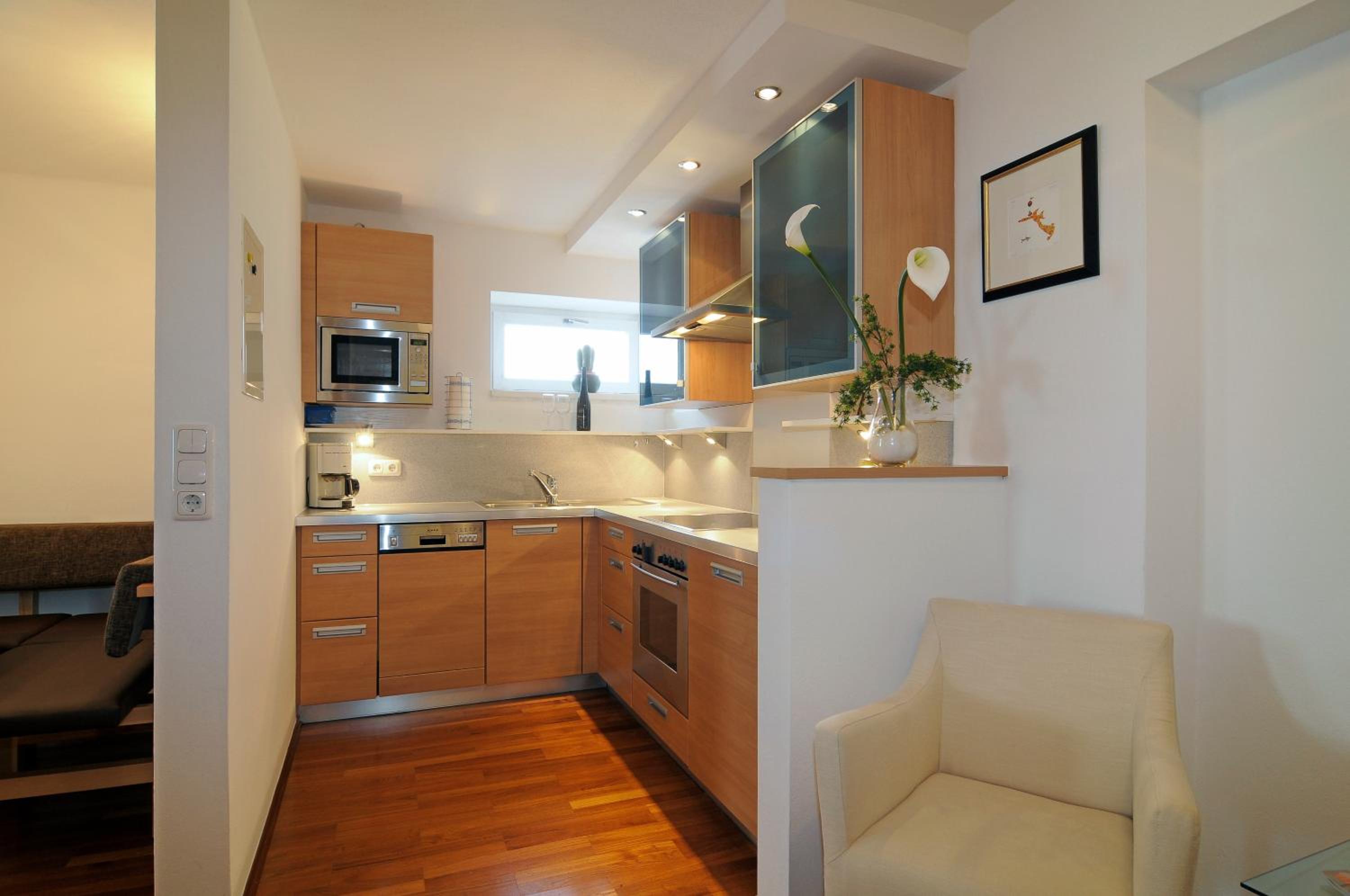 Es liegt direkt an der Skipiste und trotzdem ist es ruhig. In den Ort läuft man gemütlich ca 10 Minuten, dort gibt es viele Geschäfte und gute Restaurants.