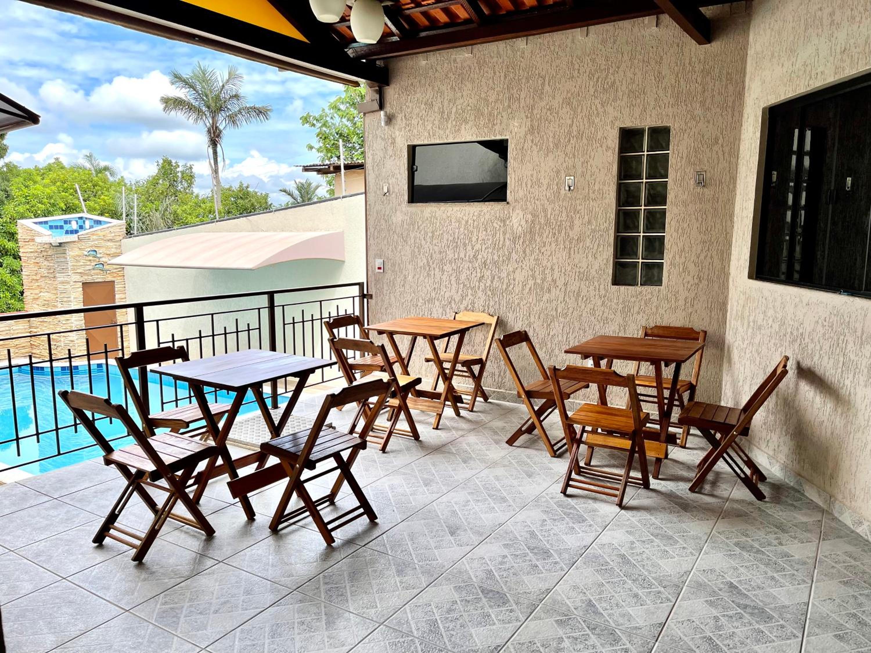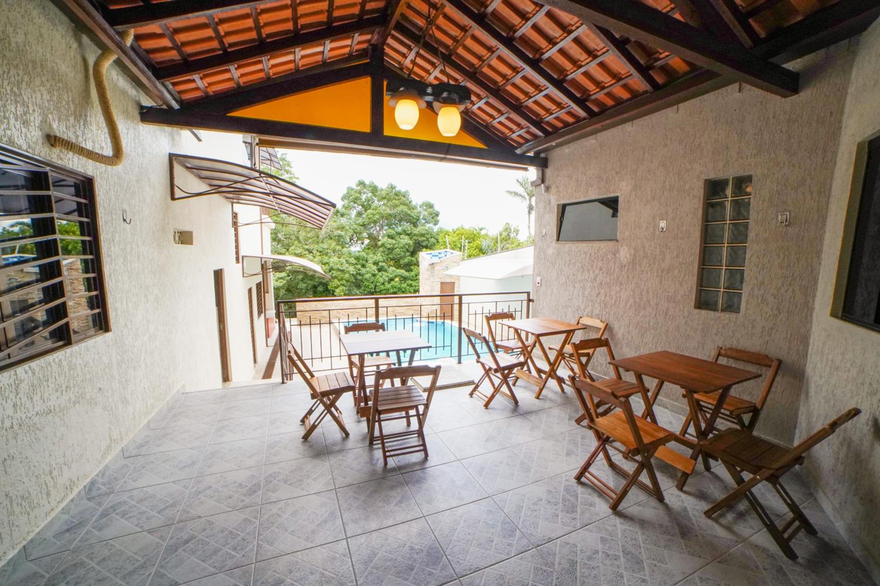 Pousada nossas Raízes offers a serene escape with its outdoor swimming pool, lush garden, and inviting terrace. Guests can unwind by the pool or take a leisurely stroll through the picturesque garden, providing a tranquil setting for relaxation.