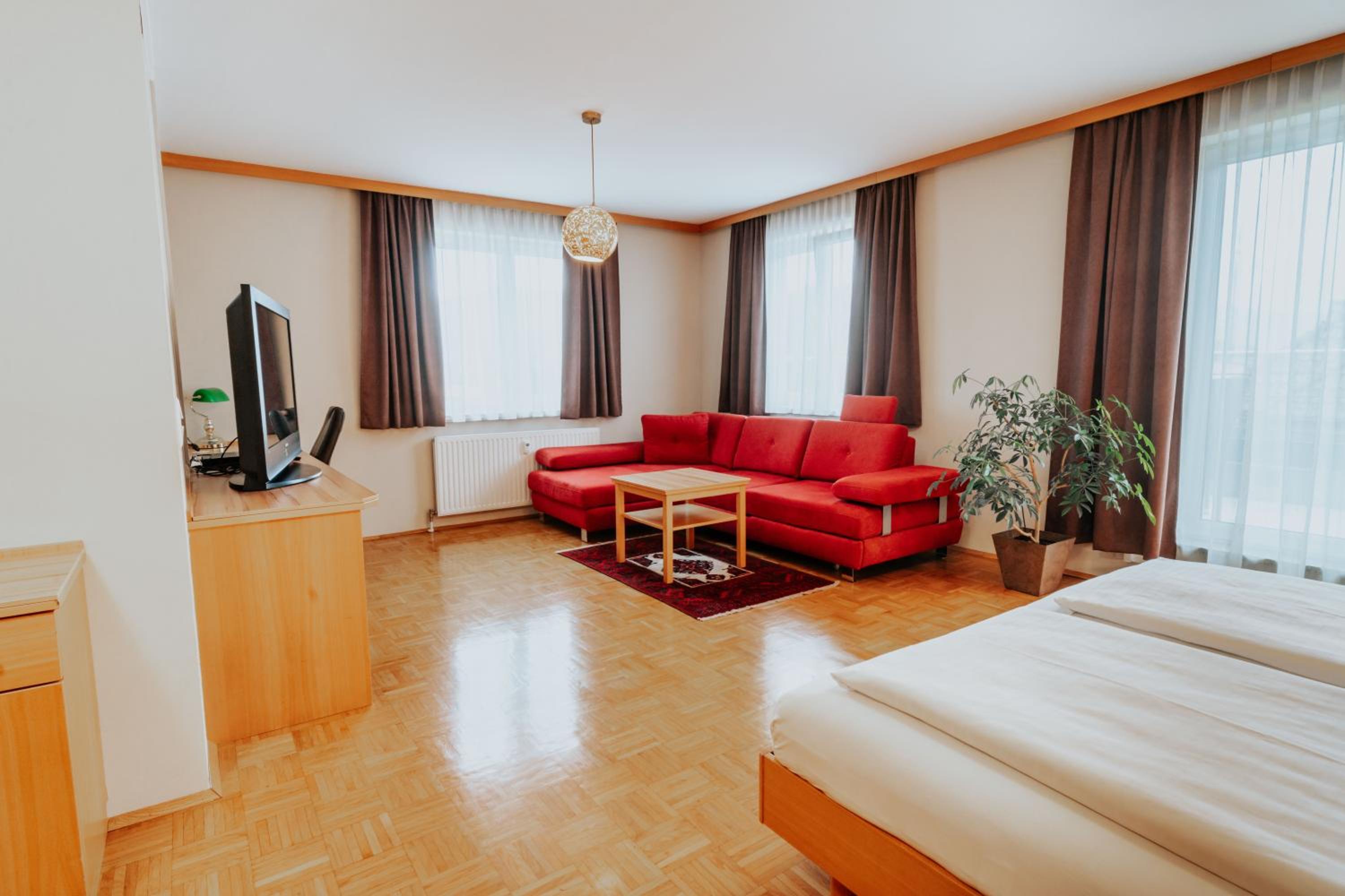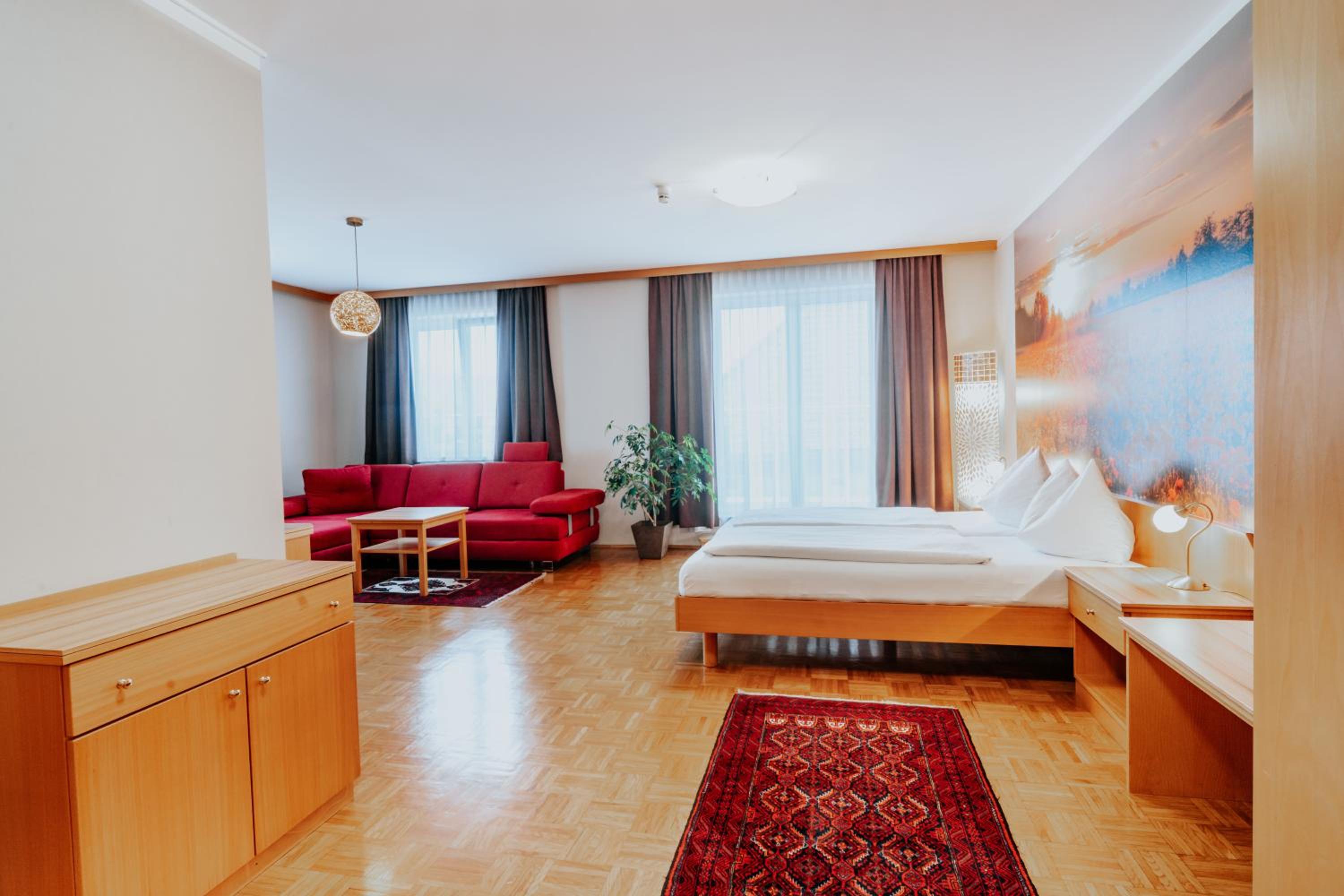 Das Hotel liegt ideal nur ca. 5 Gehminuten vom Kulturhaus entfernt. Im Zimmerpreis ist der eigene Hotelparkplatz inkludiert. Unser Zimmer war mit Parkettboden und großzügigem Bad sehr gut ausgestattet. Zum sehr guten Frühstück wurde eine reiche Auswahl an warmen und kalten Speisen und sehr guter Kaffee und Tee angeboten. Das Personal war sehr freundlich. Im Haus ist auch ein seht gutes italienisches Restaurant untergebracht, welches sehr gut besucht war. Es ist daher eine vorherige Reservierung empfohlen. Wir können dieses Hotel sehr empfehlen.