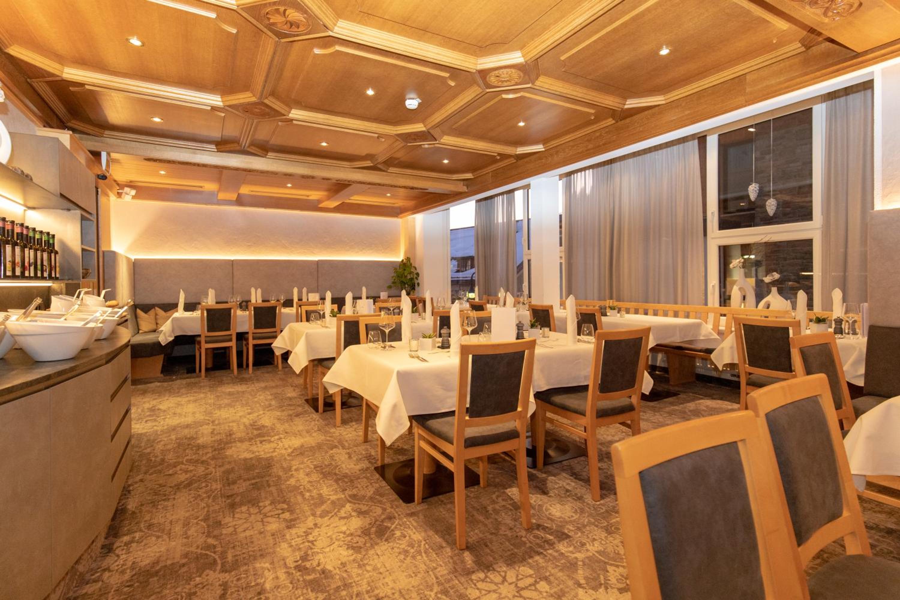 Indulge in a culinary journey at the on-site restaurant offering a blend of Tyrolean specialties and international flavors. Don't forget to experience the weekly Fondue evenings and unwind at the hotel's bar until midnight.