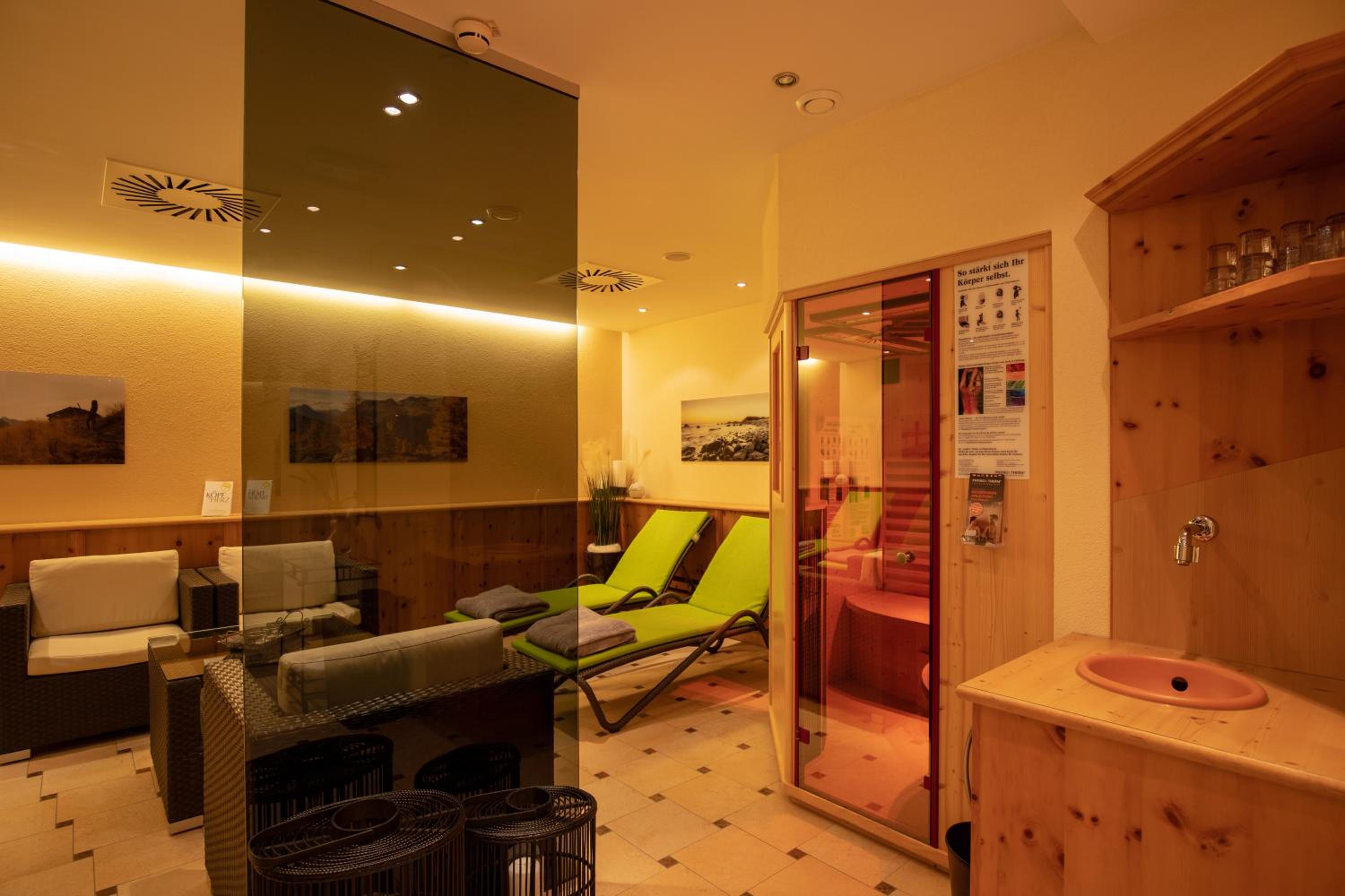Unwind at the spa area featuring a sauna, salt water steam bath, infrared cabin, and a refreshing rain forest shower. Additionally, guests can enjoy the Silvretta All Inclusive Card during the summer season, granting access to various attractions in the Paznaun Valley.