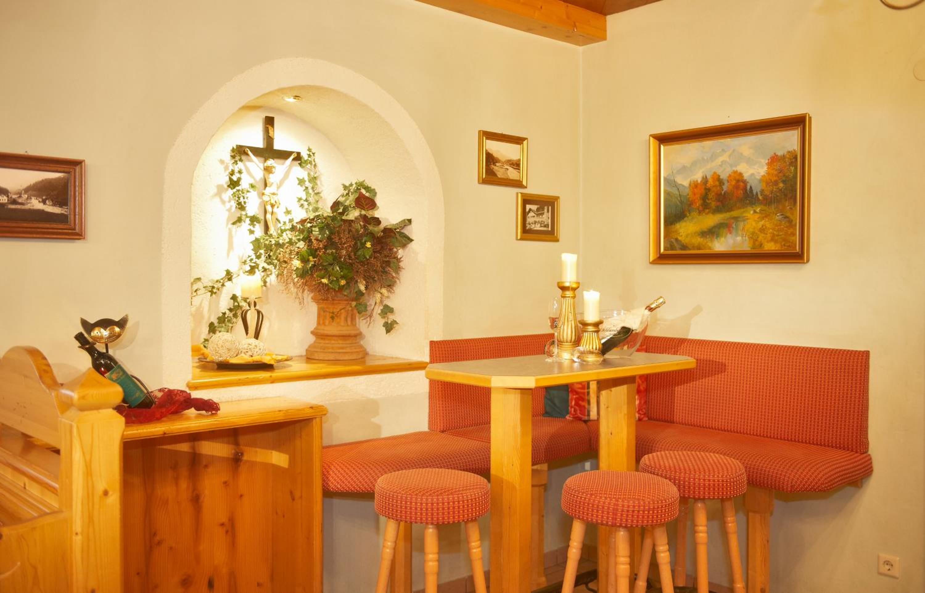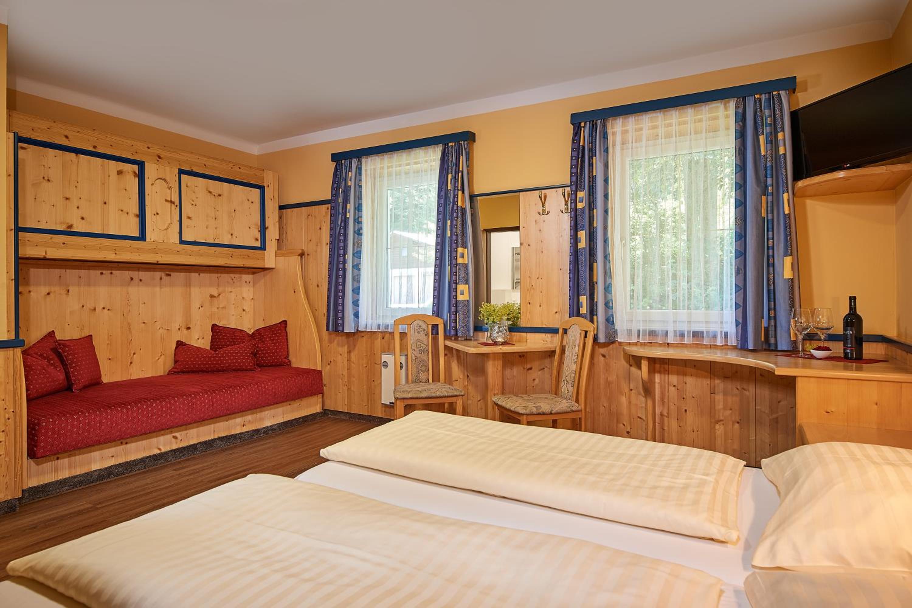 This is a very nice hotel run by a very nice family. Front-desk staff has good English and gives good local tips (restaurants, sites, other services). The location is a nice little village called Huttau -- accessible to many great sites, but sufficiently away from the noisy tourist hub of Flachau.