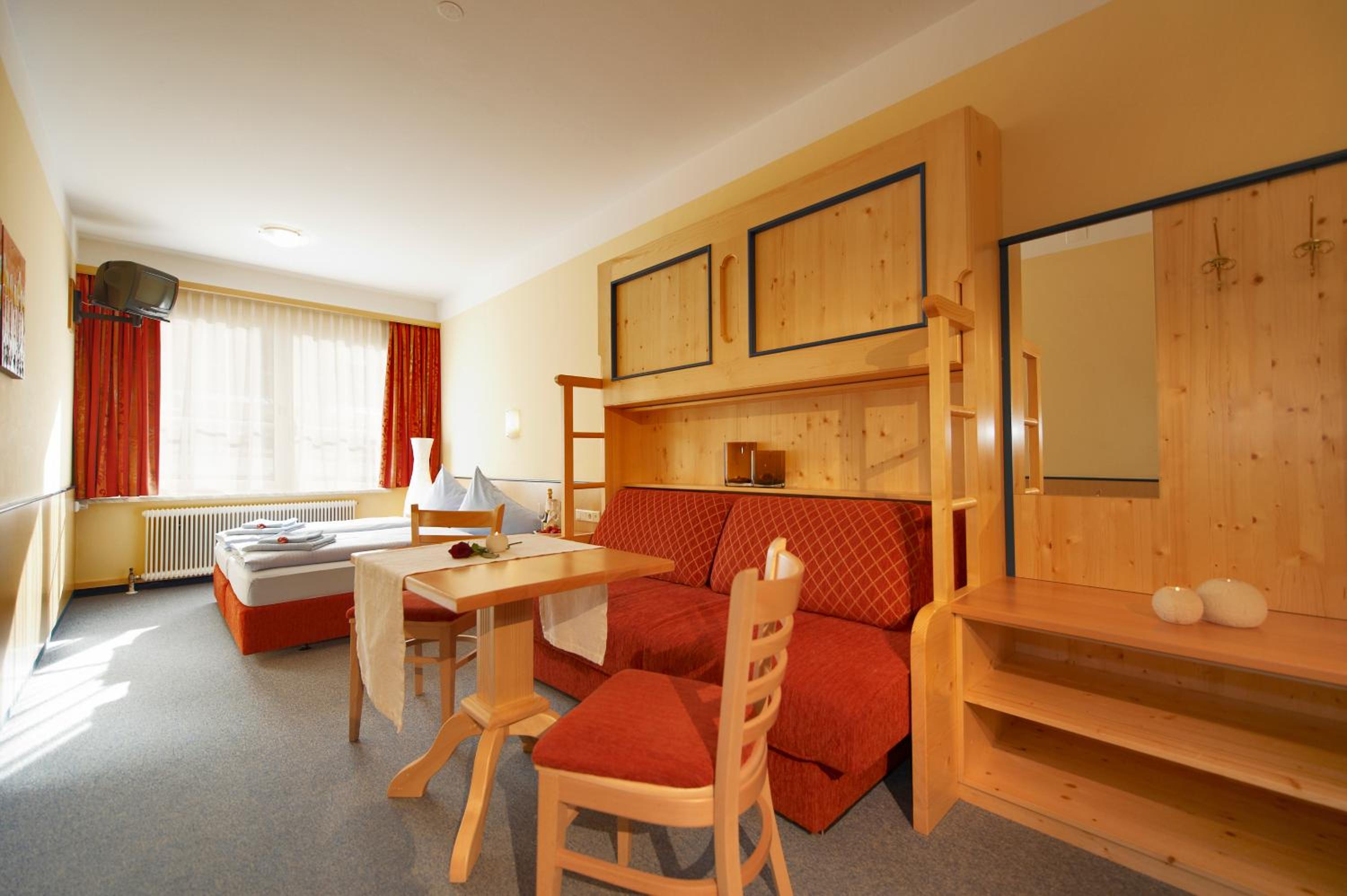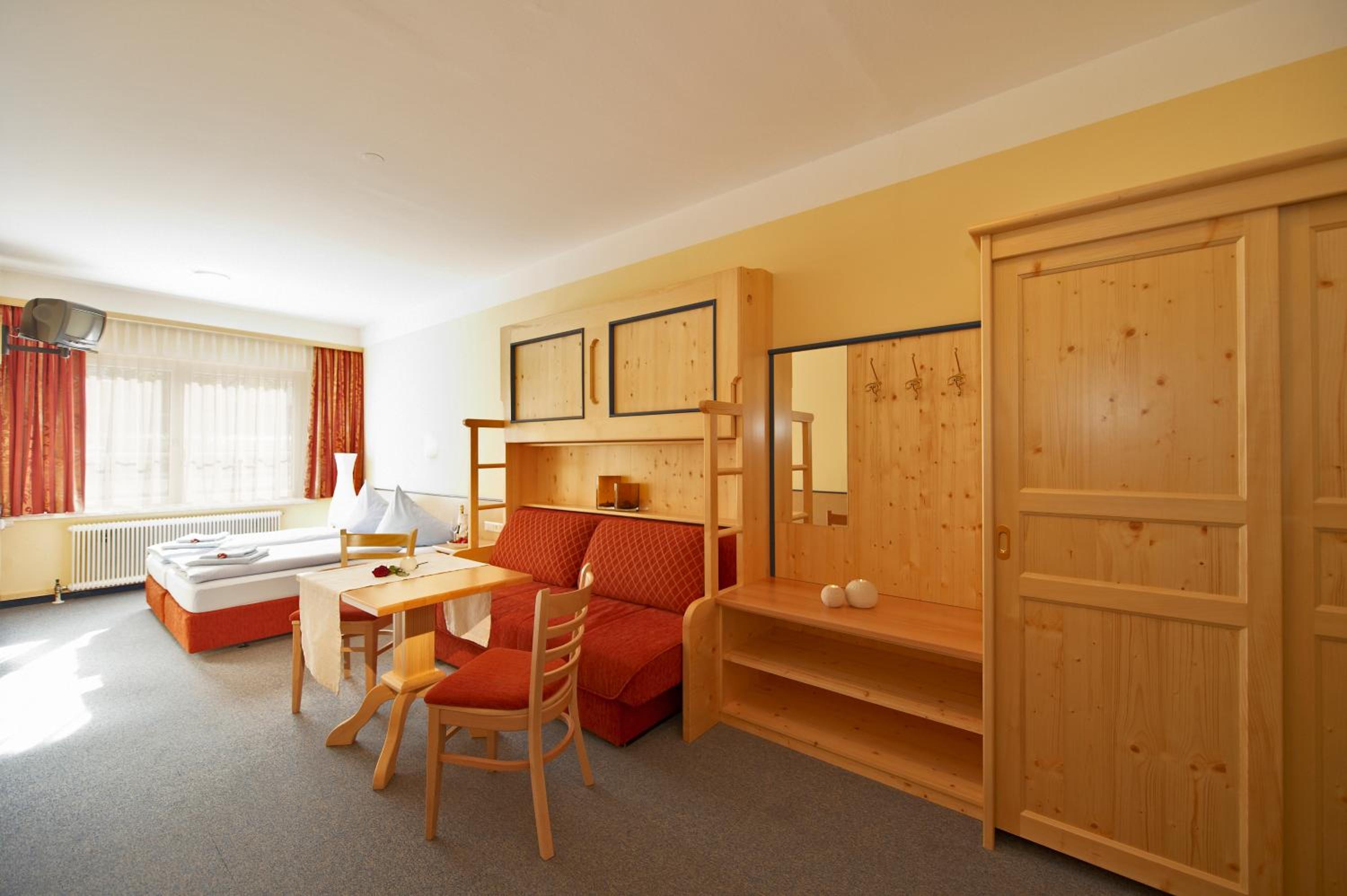 Warm welcome of the staff, a lot of breakfast options. The rooms were clean and comfortable. We had access to sauna that was amazing after a ski day.