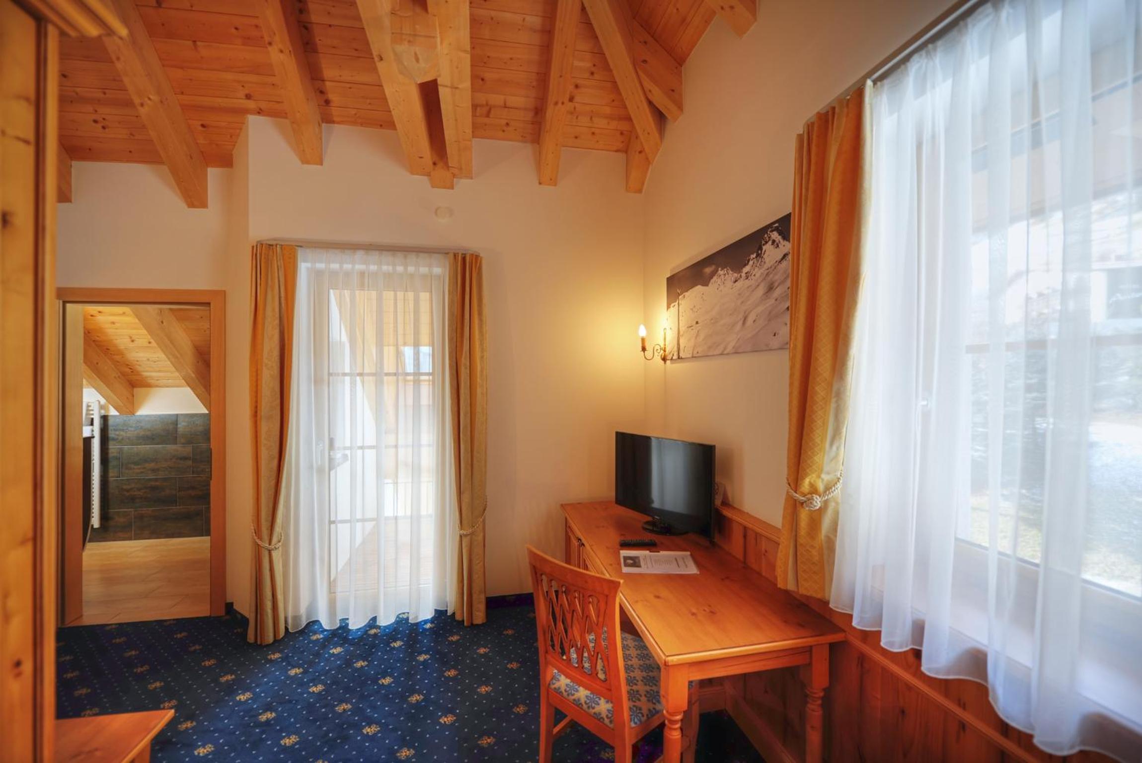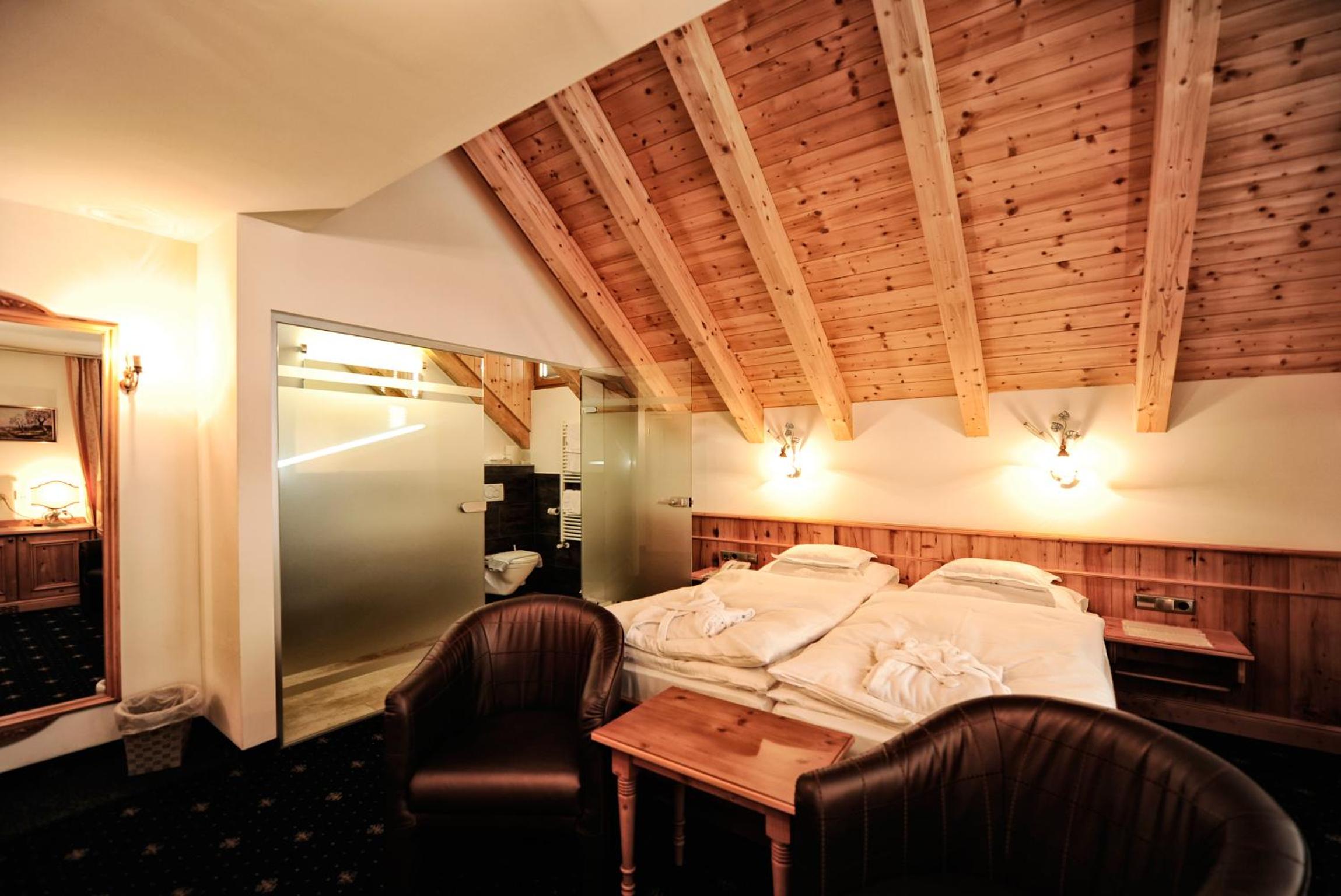 The spacious rooms at Hotel Fatlar offer stunning mountain views from their south-facing balconies. Each room is equipped with modern amenities including a sofa bed, cable TV, and complimentary Wi-Fi, ensuring a comfortable stay for guests.