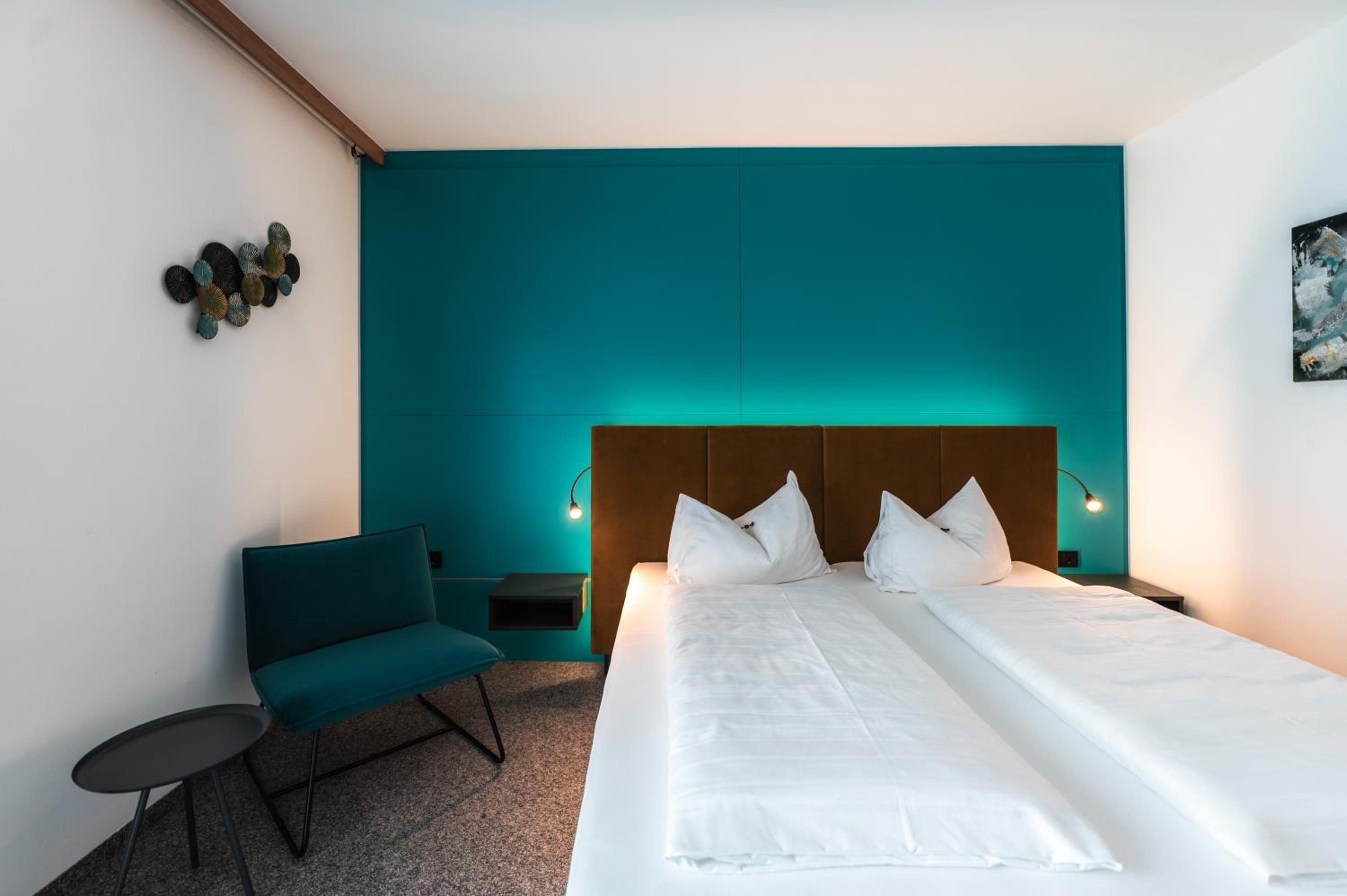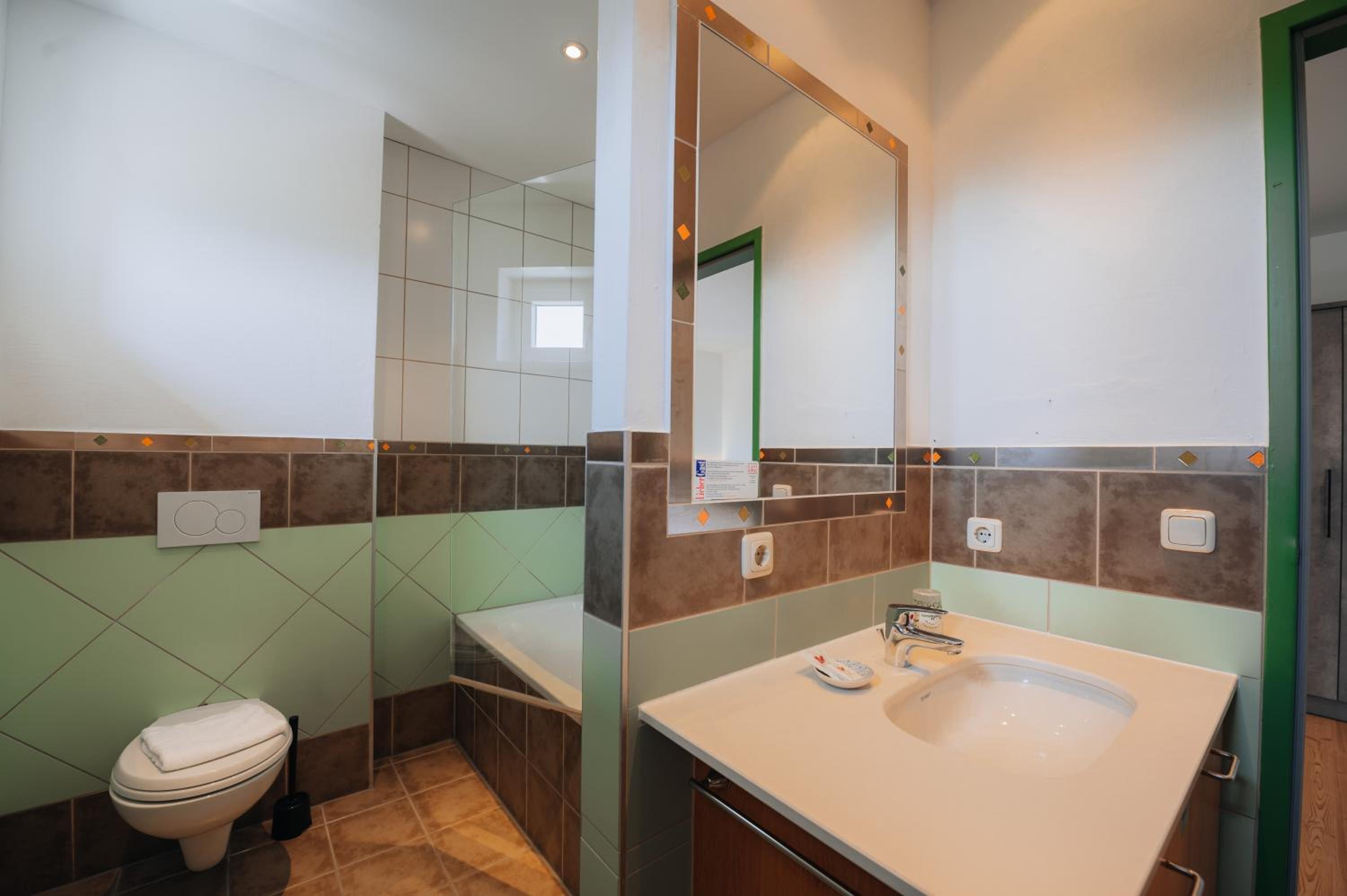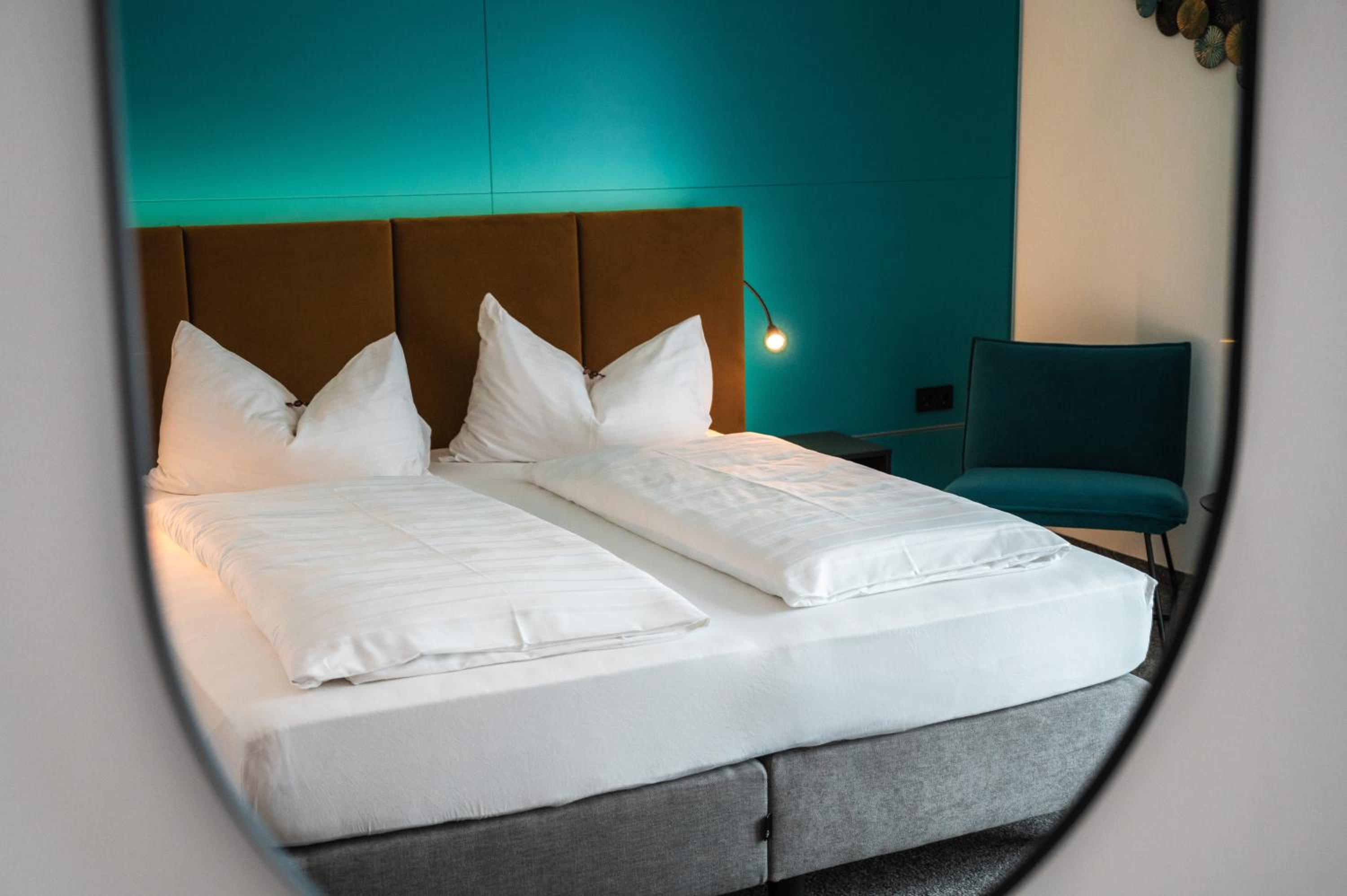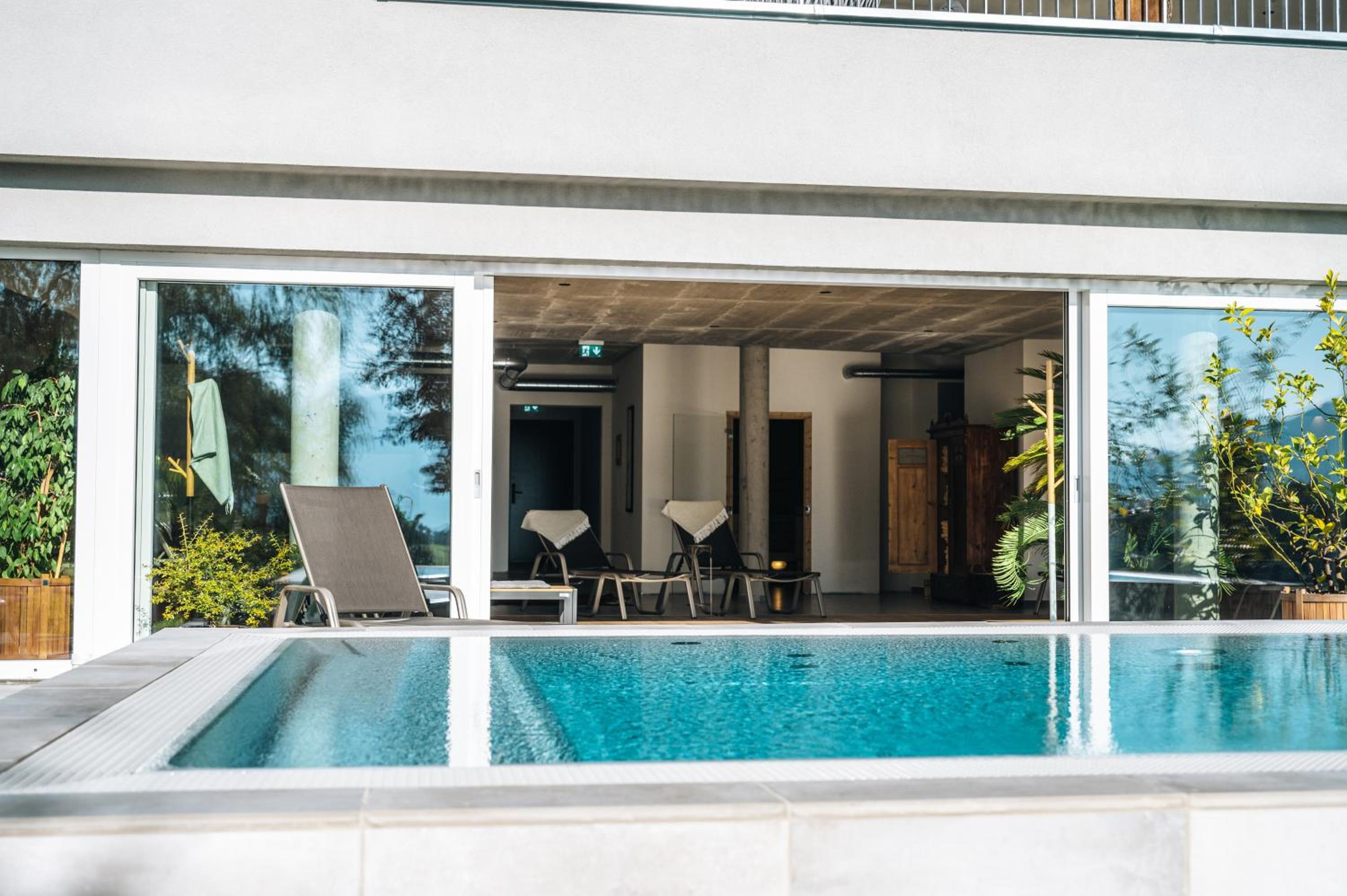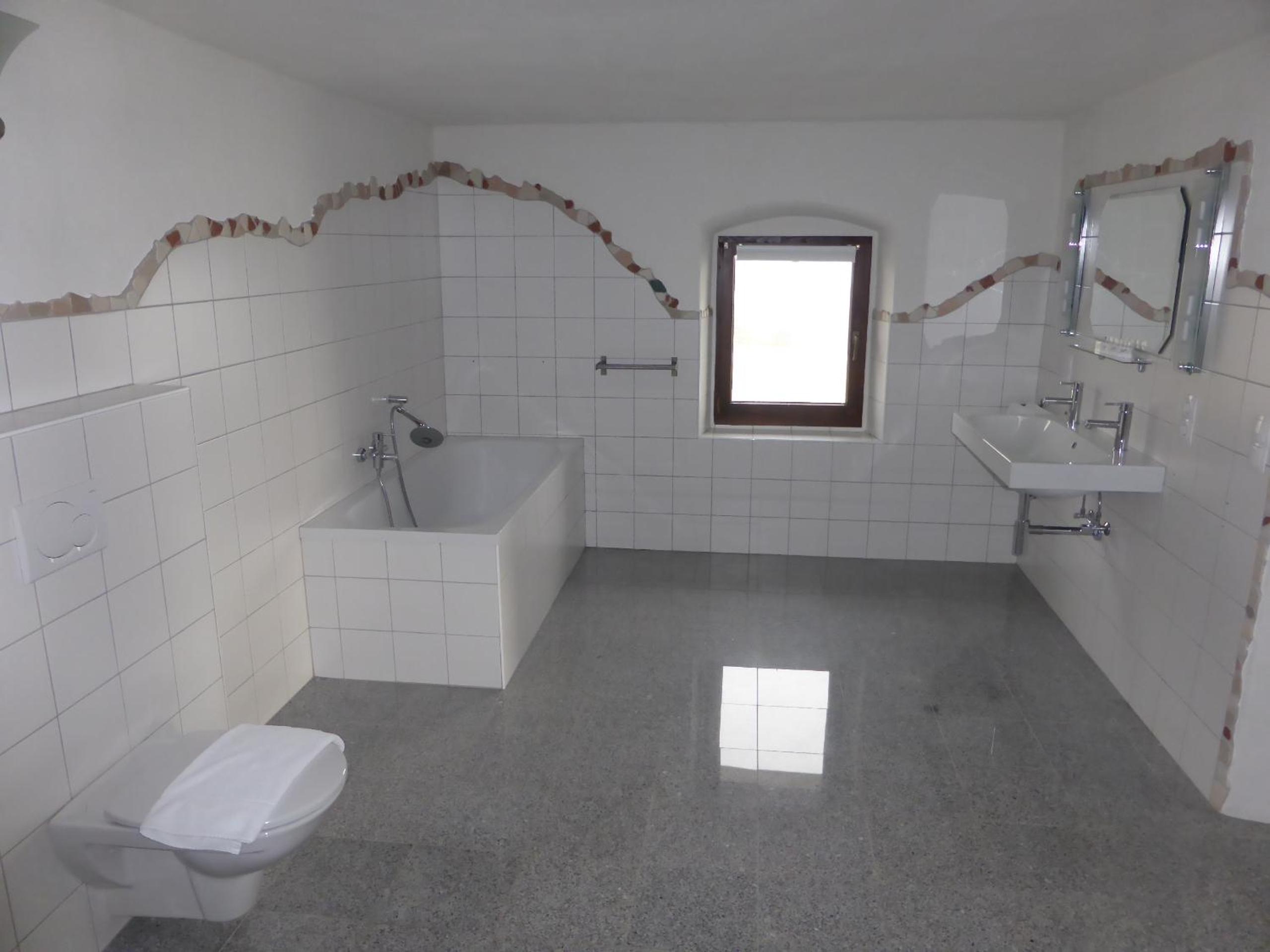 Wellnessbereich etwas dürftig, Außenpool schön, aber viel zu kalt, Zimmer im Altbau etwas ungemütlich (Balkontüre kaum kälteisoliert, extrem kalter Fußboden), Bad extrem klein für 2 Personen
