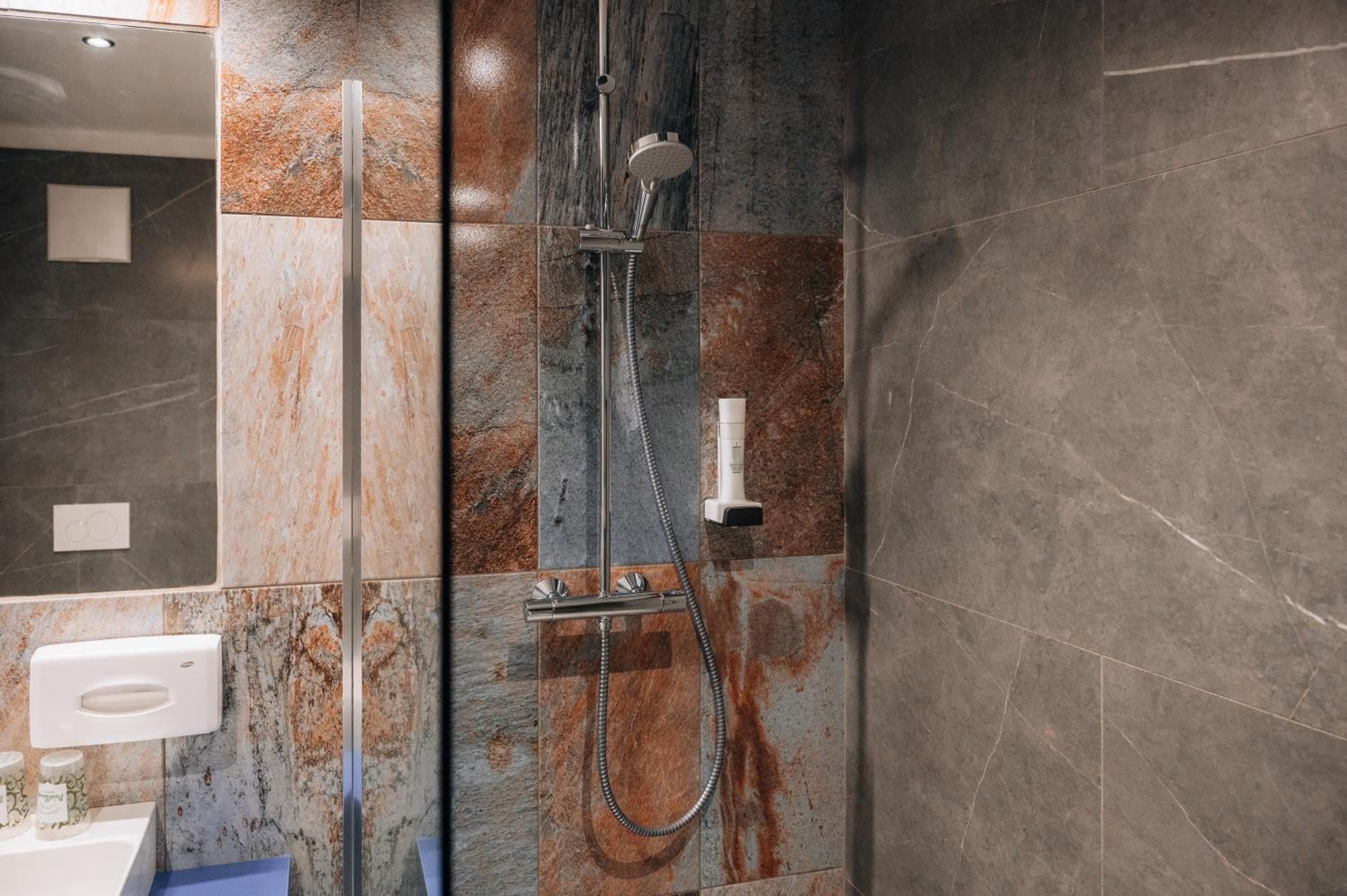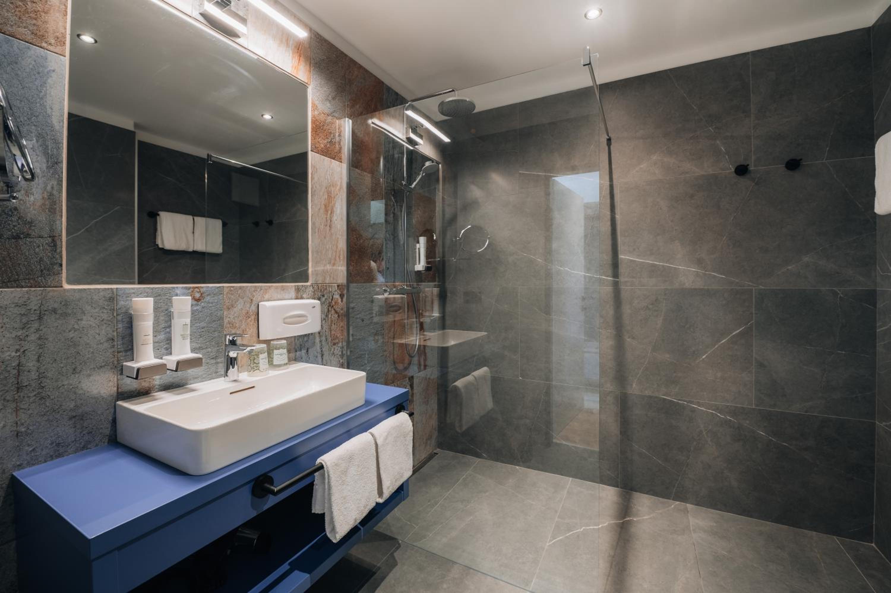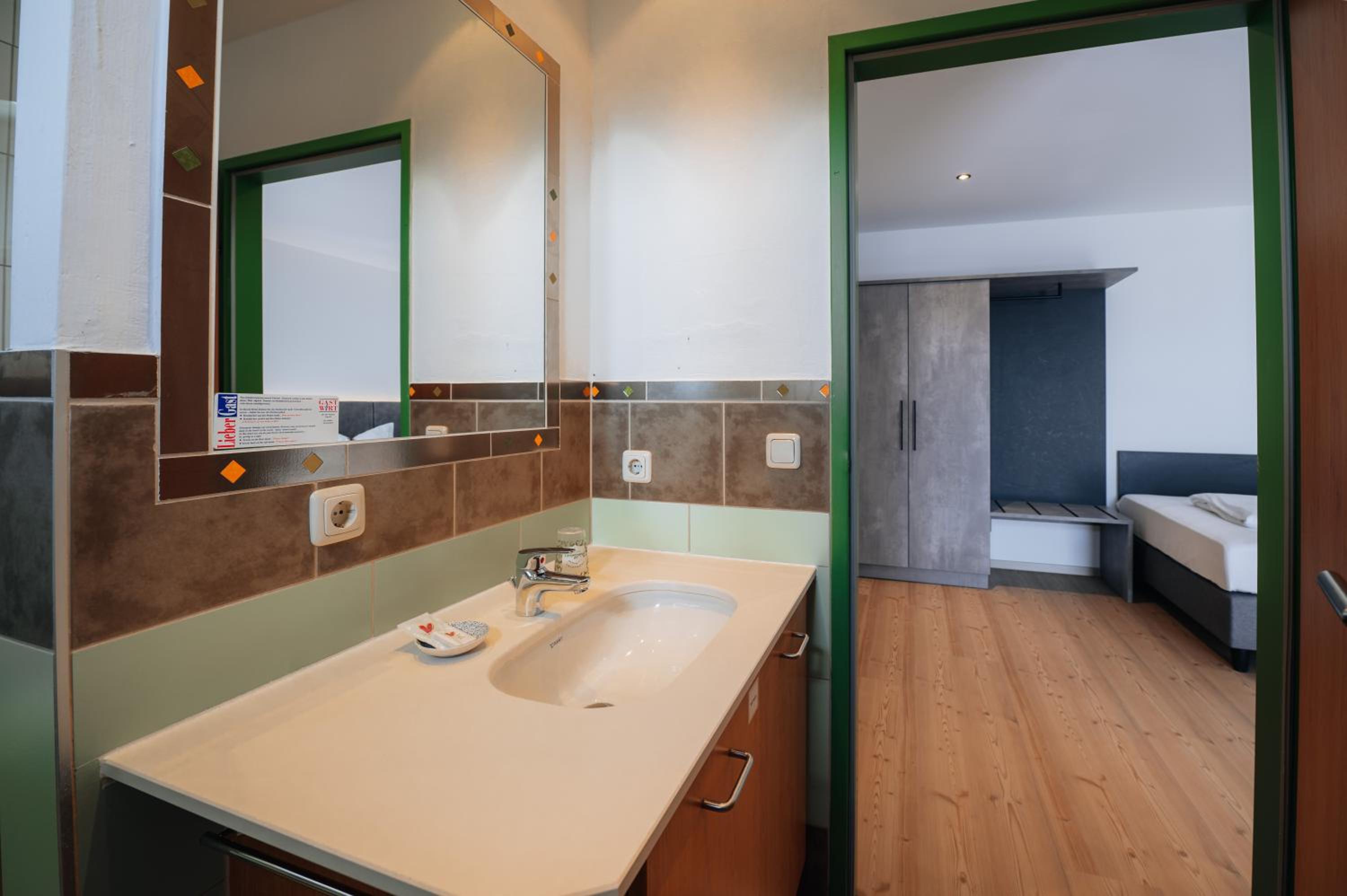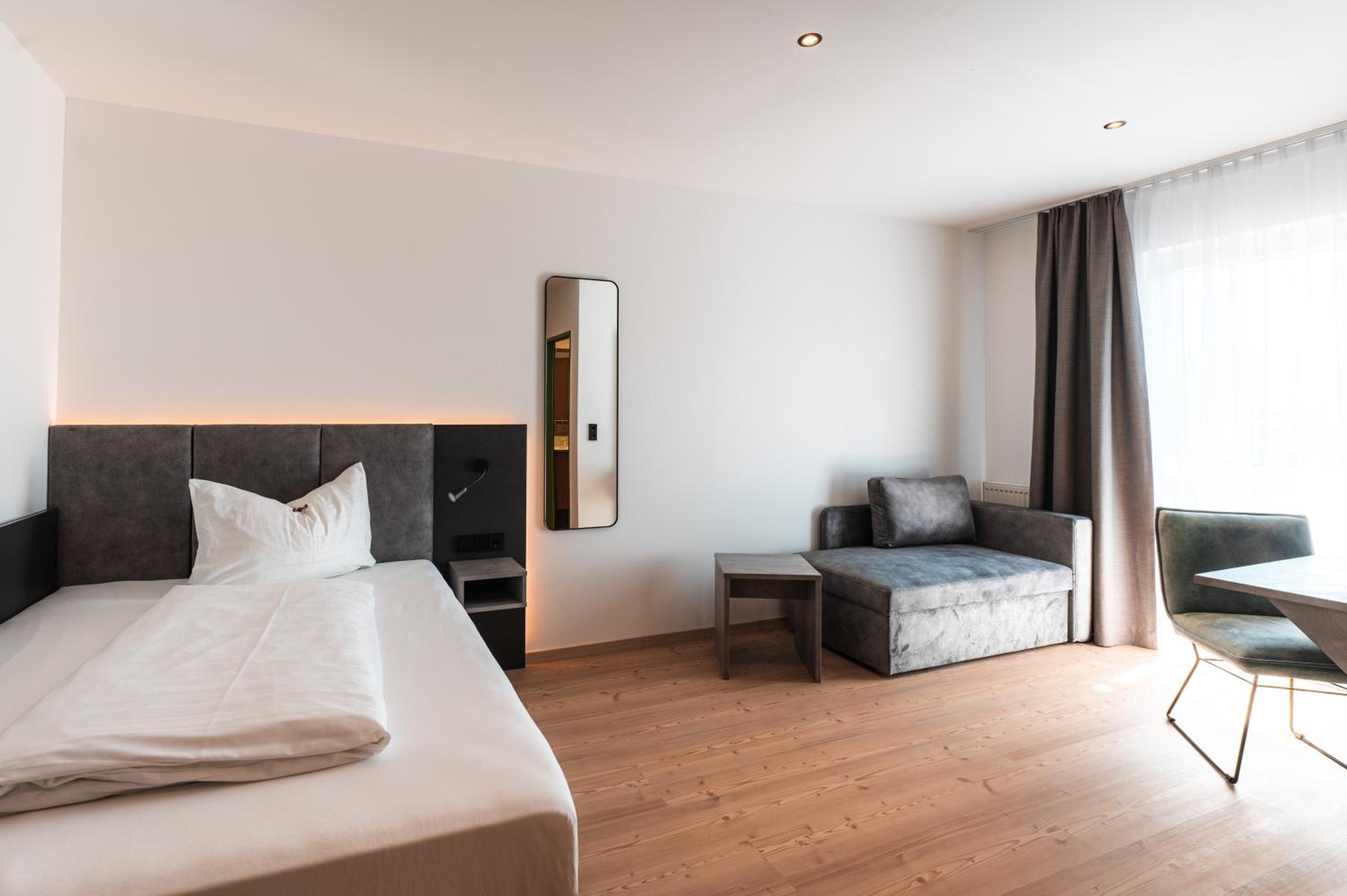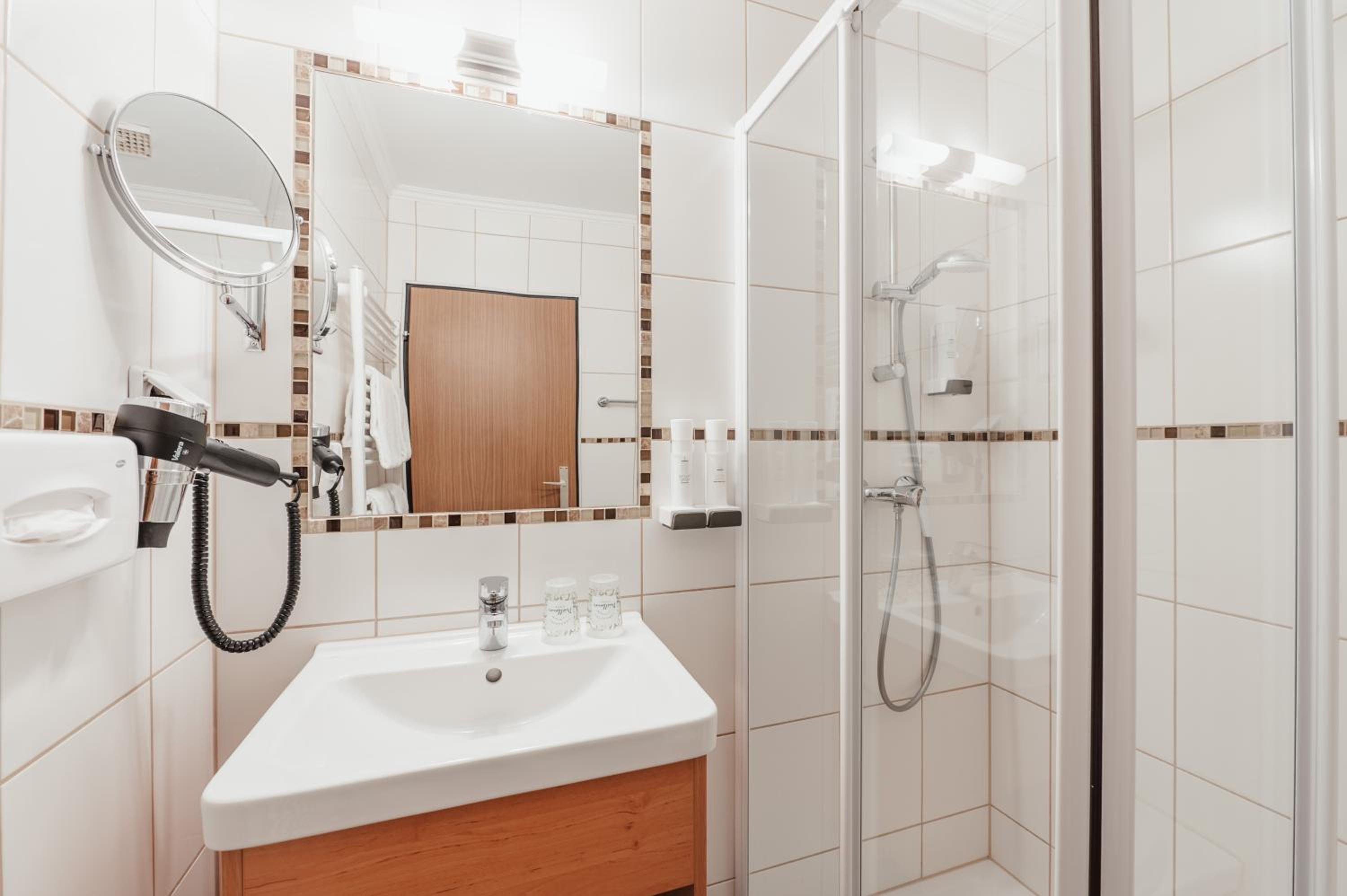Wellnessbereich etwas dürftig, Außenpool schön, aber viel zu kalt, Zimmer im Altbau etwas ungemütlich (Balkontüre kaum kälteisoliert, extrem kalter Fußboden), Bad extrem klein für 2 Personen