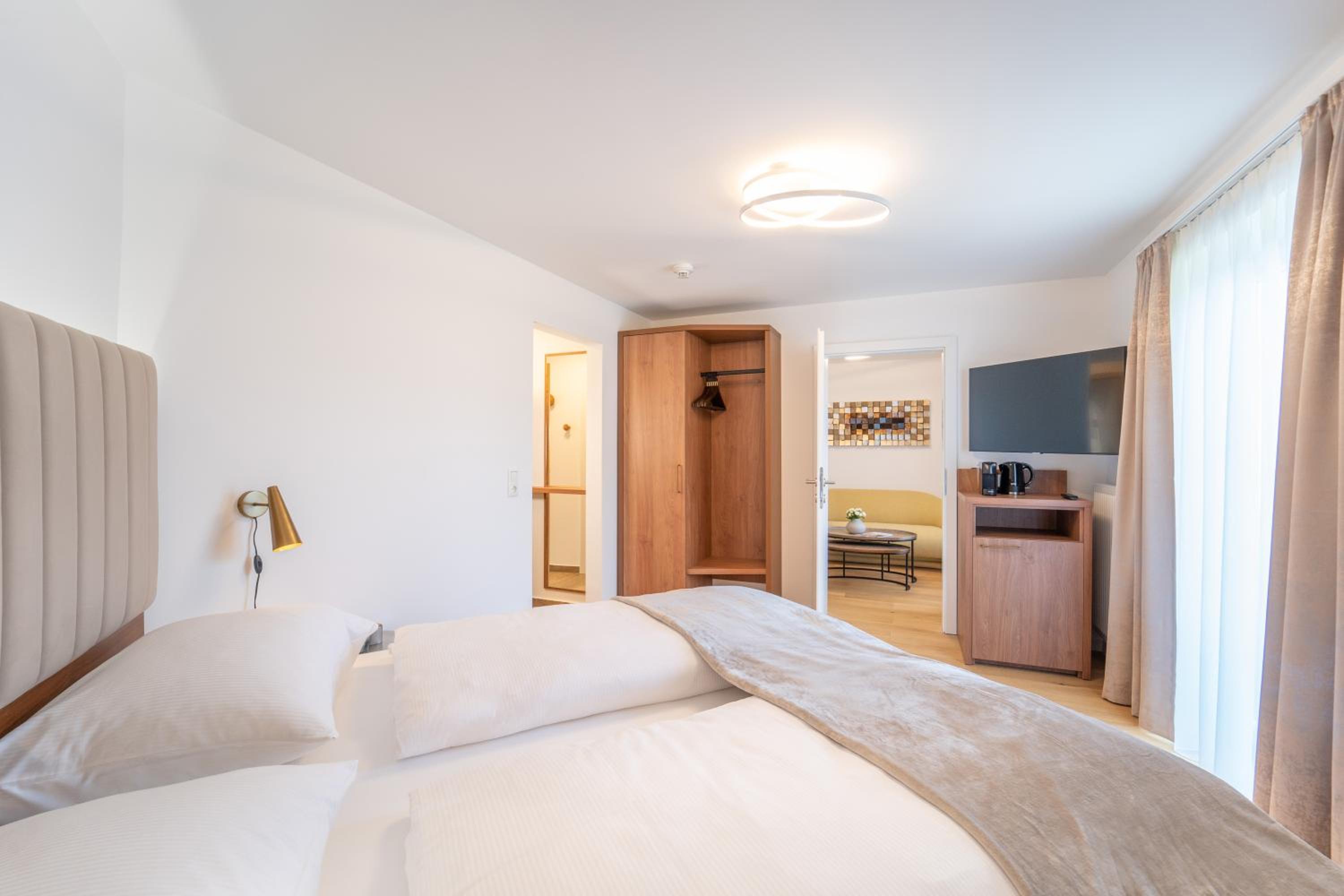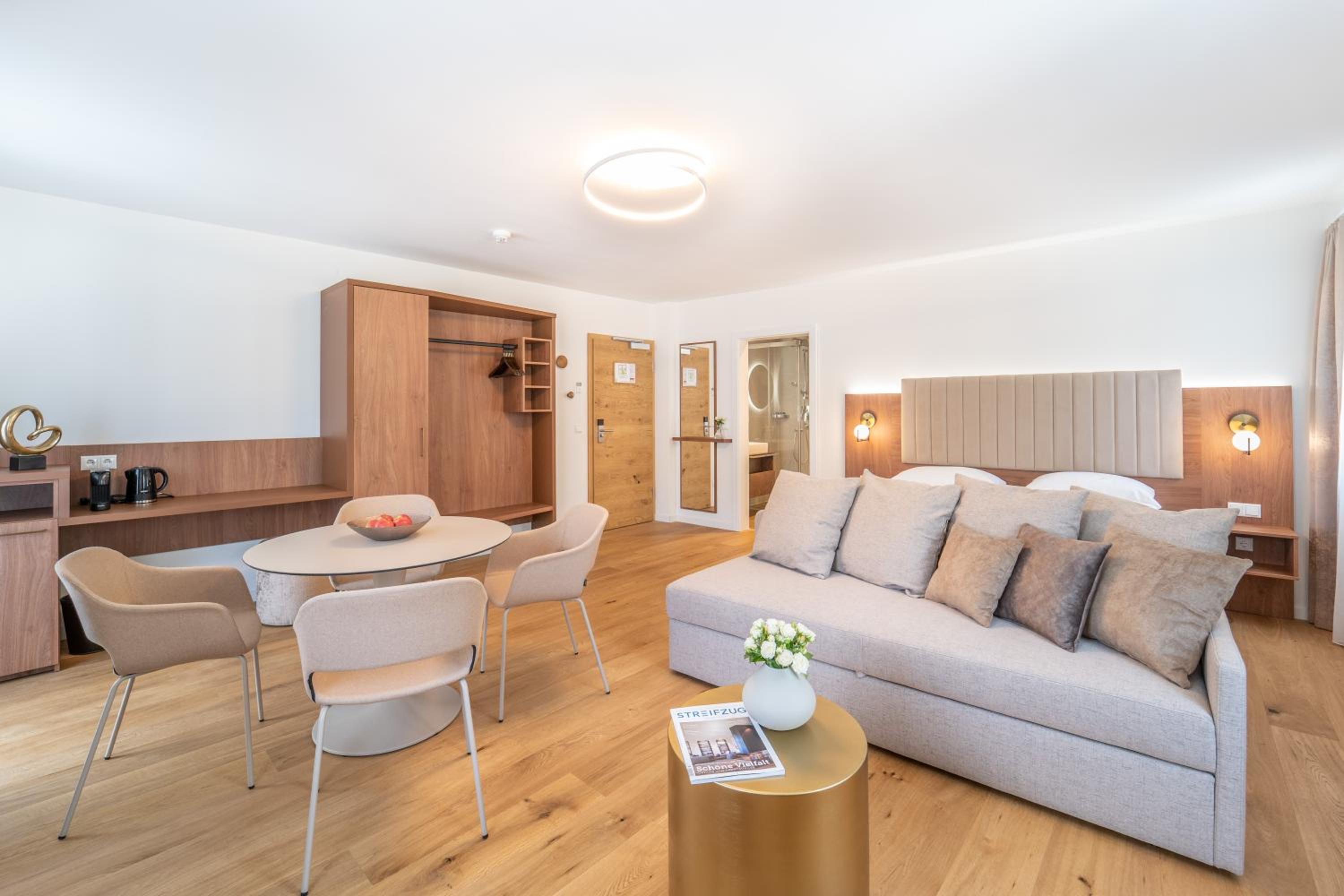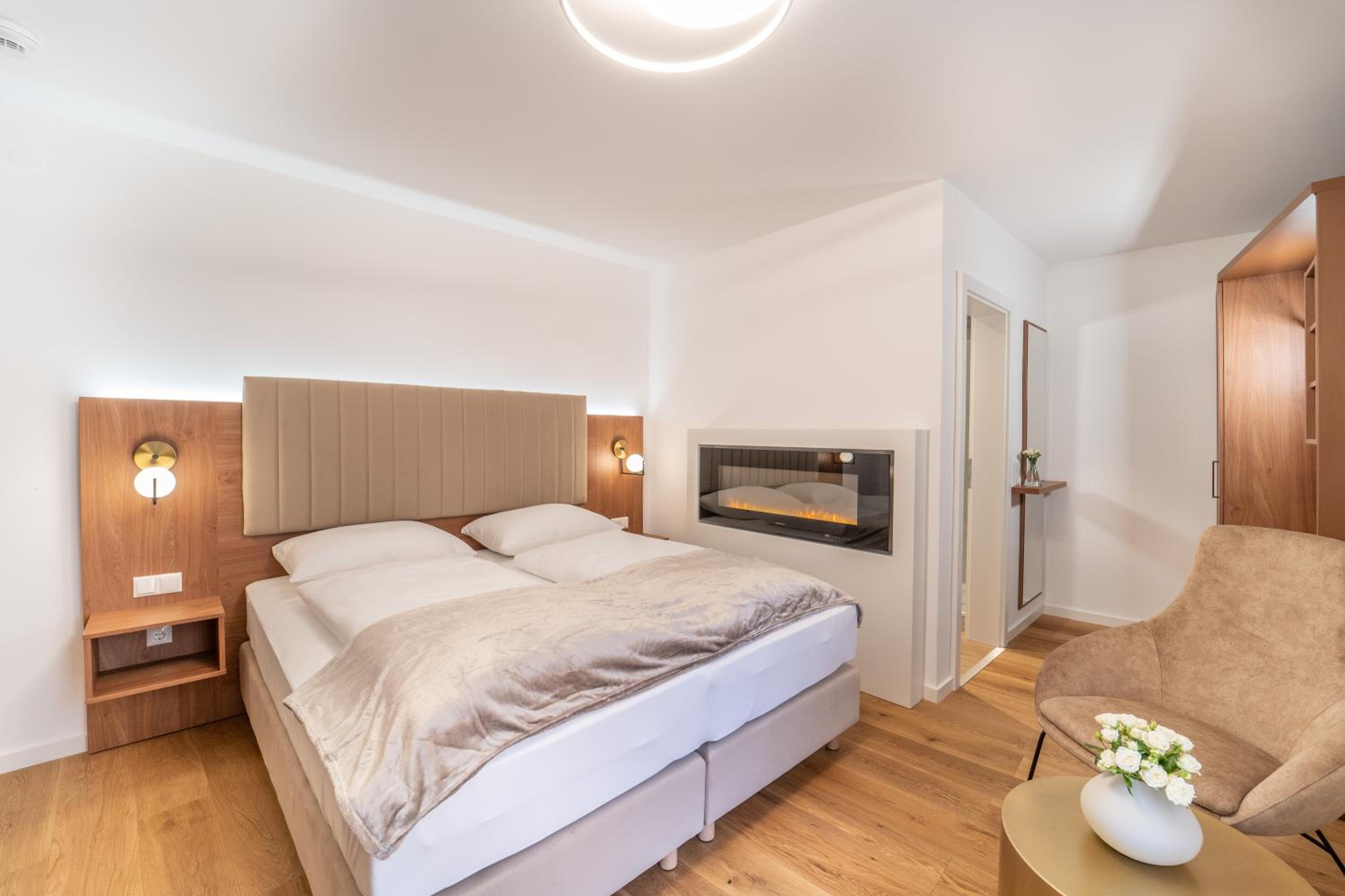 The rooms at das mondsee are equipped with modern amenities such as a flat-screen TV, fridge, coffee machine, and free toiletries. Some rooms even offer a balcony with stunning mountain views, perfect for a relaxing evening.