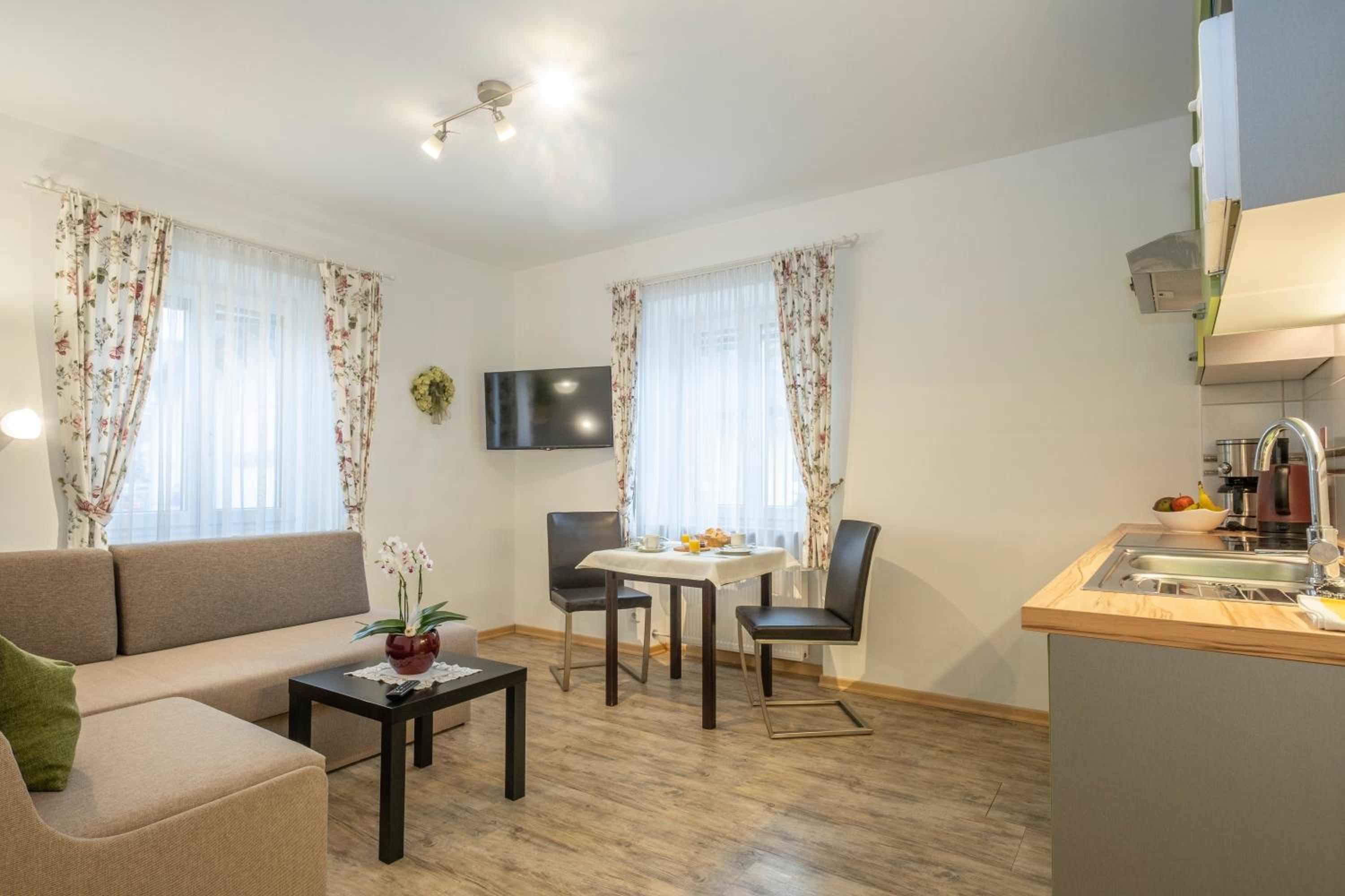 Die Unterkunft war sehr sauber, groß und es war alles da, was man braucht. Traditionell eingerichtet und super im Preis-Leistungs-Verhältnis. 2 Minuten von der Ortsmitte mit kostenlosem Parkplatz am Haus und freundlichem Service.