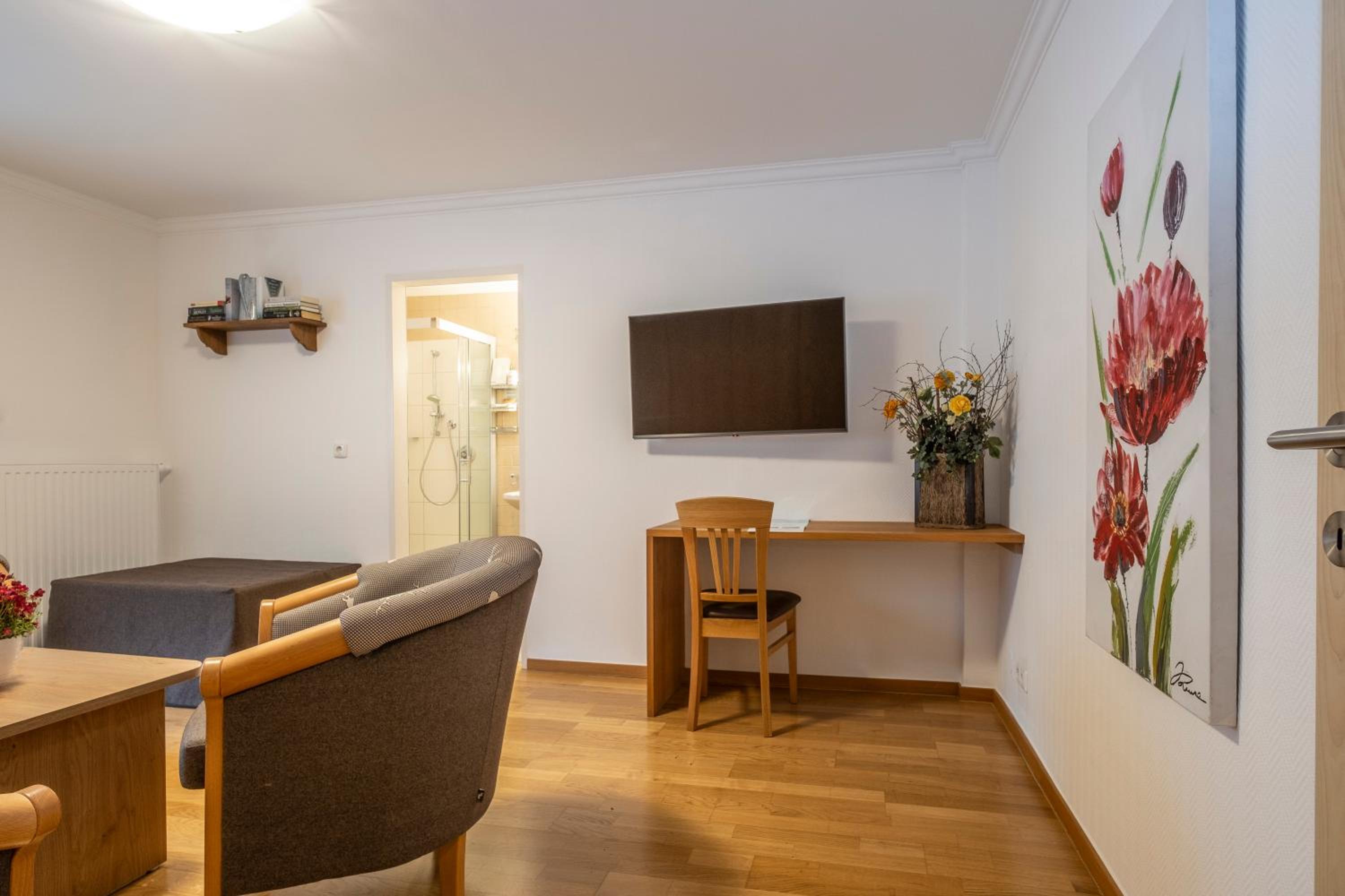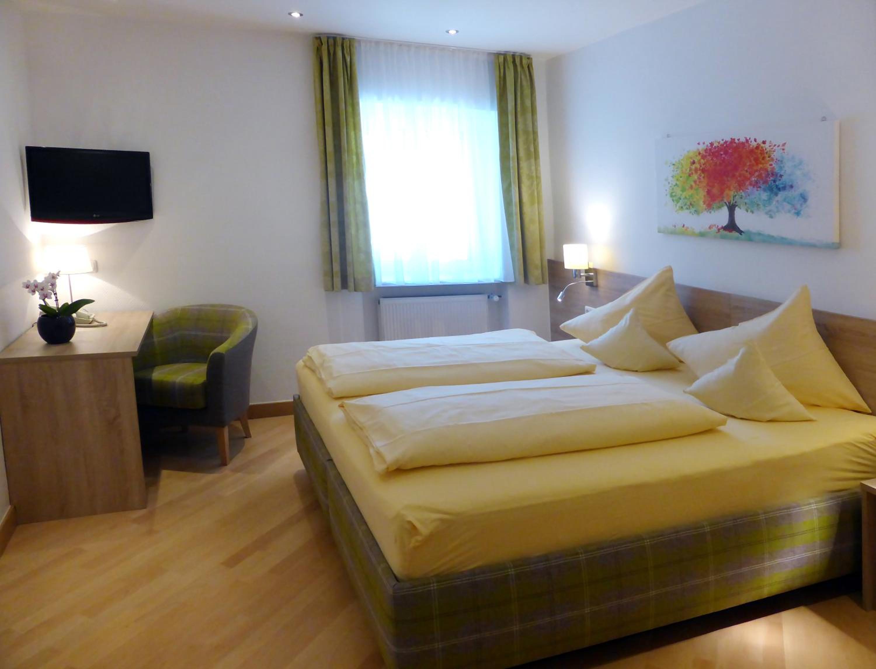 Die Lage der Unterkunft ist hervorragend. Es sind Parkplätze vorhanden, dies ist heutzutage auch viel wert. Die Eigentümer waren ausgesprochen nett und zuvorkommend. Wir fühlten uns vom ersten Moment an sehr wohl. Das Zimmer war sehr sauber und neu renoviert. Wir kommen sehr gerne wieder.