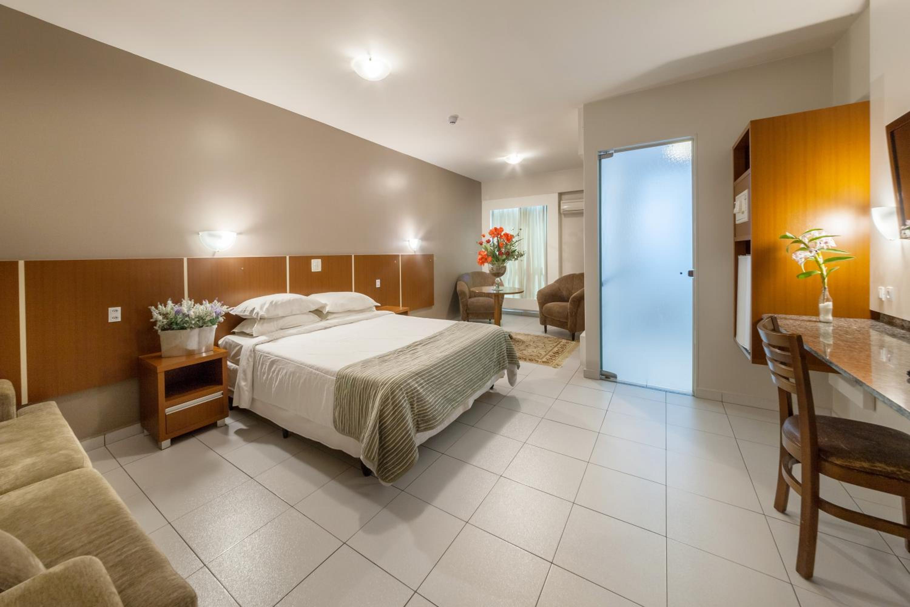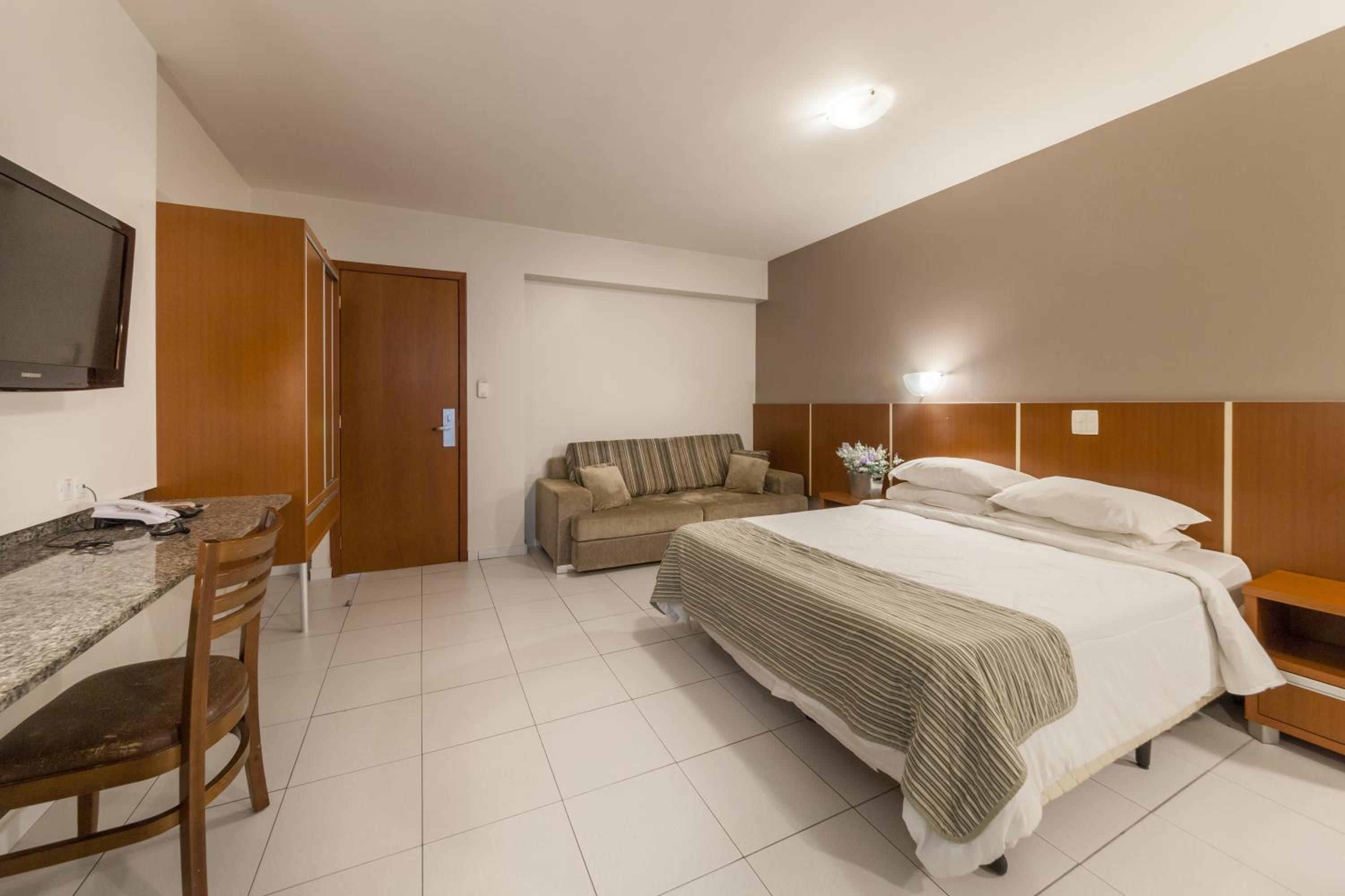 Fiquei antes em um hotel simples no centro da cidade, pelo valor da metade da diária, lá tinha como cortesia café da tarde , uma simples garrafa com bolachas , mas já era agradável e bebedouro. E as toalhas e lençóis impecáveis.