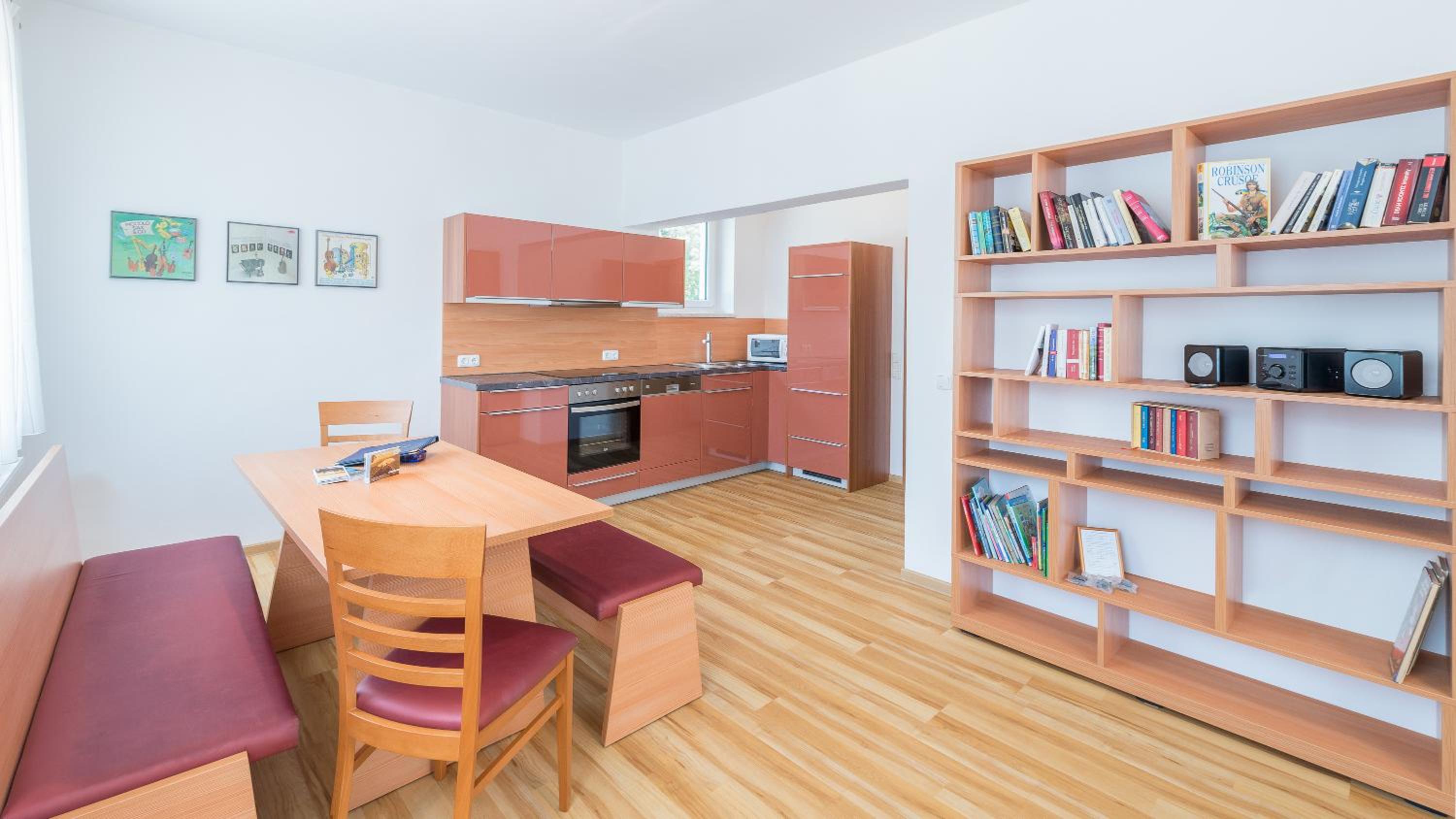 Die Zimmer sind schlicht, praktisch und geschmackvoll eingerichtet. Die Matrazen in den Betten haben mir einen guten Schlaf ermöglicht. Die Küchenzeile beinhaltet einen großen Kühlschrank und eine Spülmaschine.