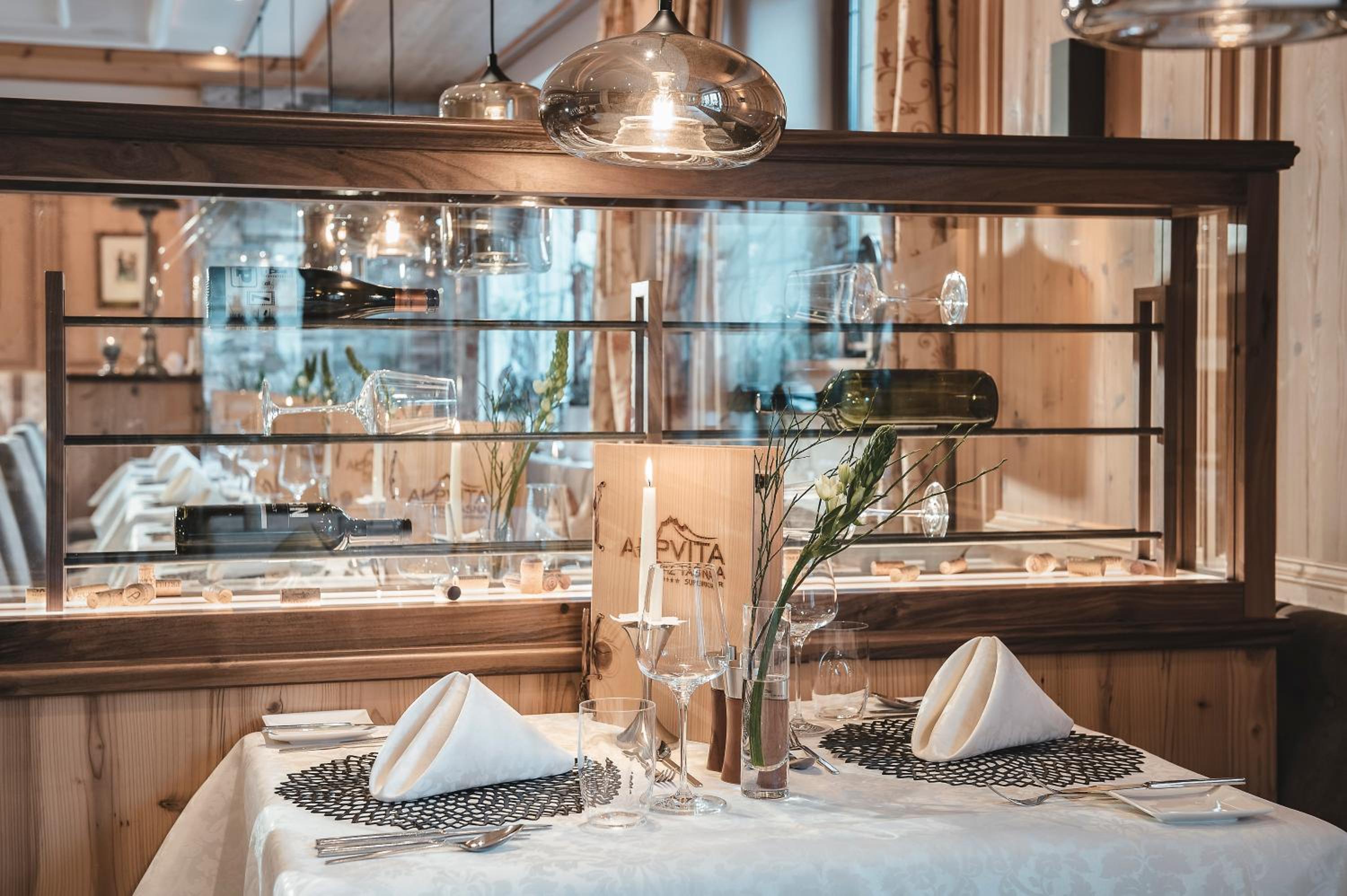 With its quiet location, and just a five minute walk to the Fimba gondola, the Alpvita was a delight to stay in. Our room, the bar, lounge, and restaurant were tastefully furnished and decorated, with no signs of wear. The restaurant had a cosy ambience with lit candles situated everywhere. On the two nights we ate in the food and service was excellent. We were impressed that the hotel was keen to cater for my daughter’s gluten free requirements. Breakfast bread rolls would be left out separately for her each morning. Very considerate.