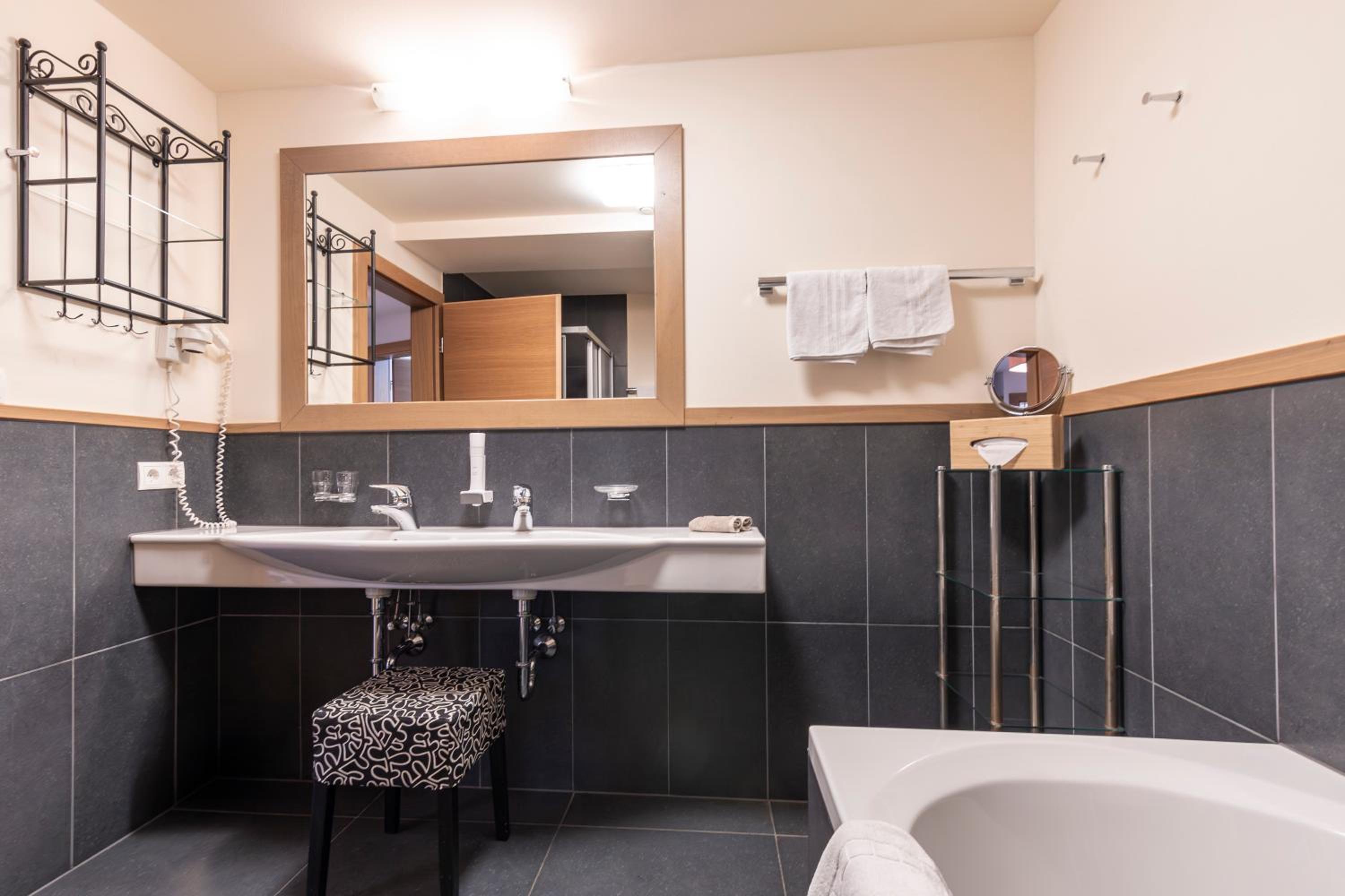 Sehr sonnige und ruhige Lage, geräumiges Zimmer, großes Bad, geschmackvolle Einrichtung und Dekoration. Sehr originell fanden wir den „Glücksstein“ bei der Ankunft und die beiden Geschenke zum Abschied (Brot und Kaffeehäferl). Frühstück, Nachmittagsjause und Abendessen reichhaltig und richtig gut. Auch nach Allergien wird gleich bei der Ankunft gefragt und entsprechend Anderes serviert. Nicht zuletzt sehr freundliche und zugängliche Chefleute mit immer wieder persönlichem Kontakt zwischendurch. Da haben wir uns gleich heimelig und wohl gefühlt. Überhaupt war das gesamte Personal sehr freundlich, das fällt gleich einmal auf.
