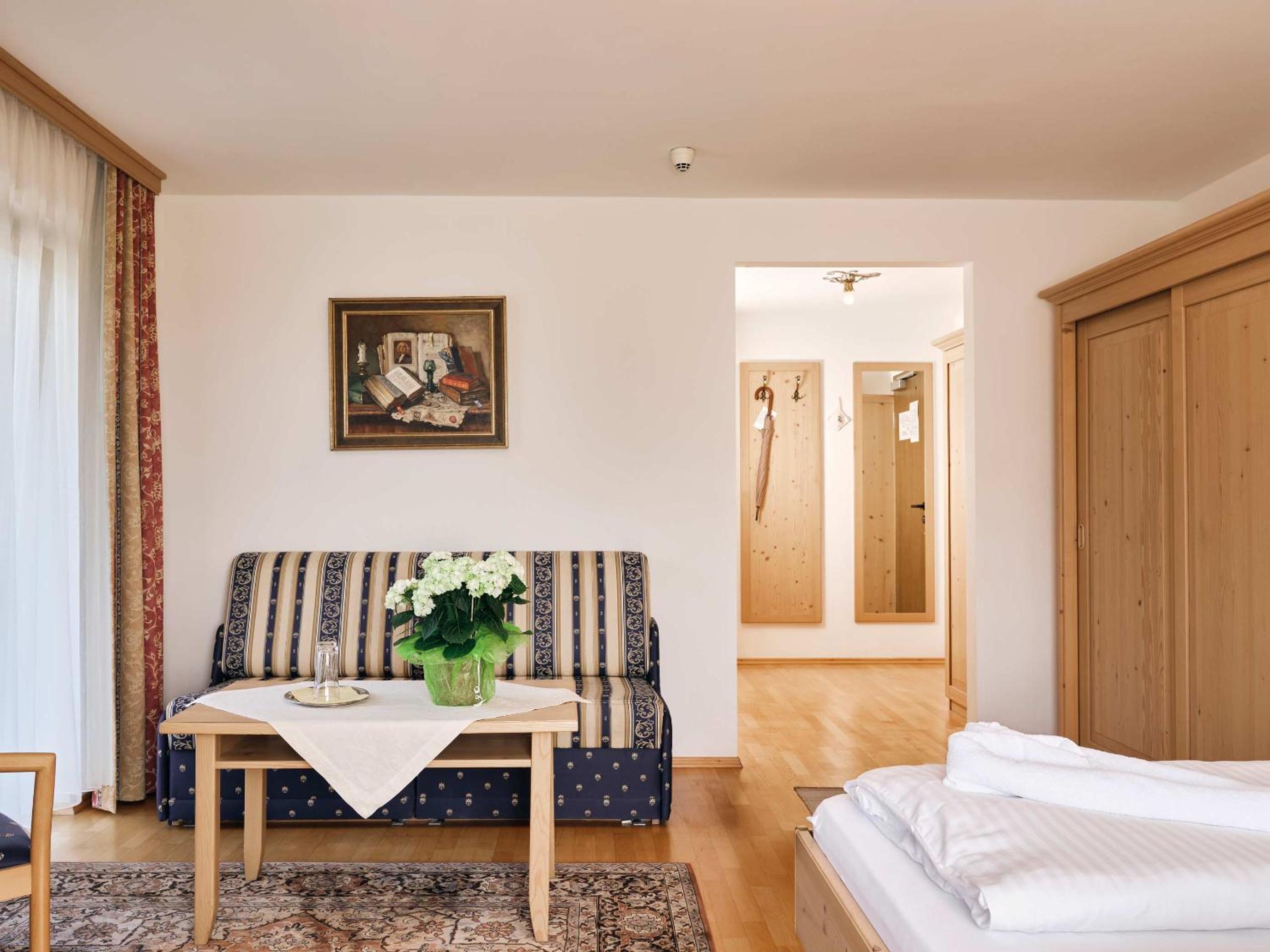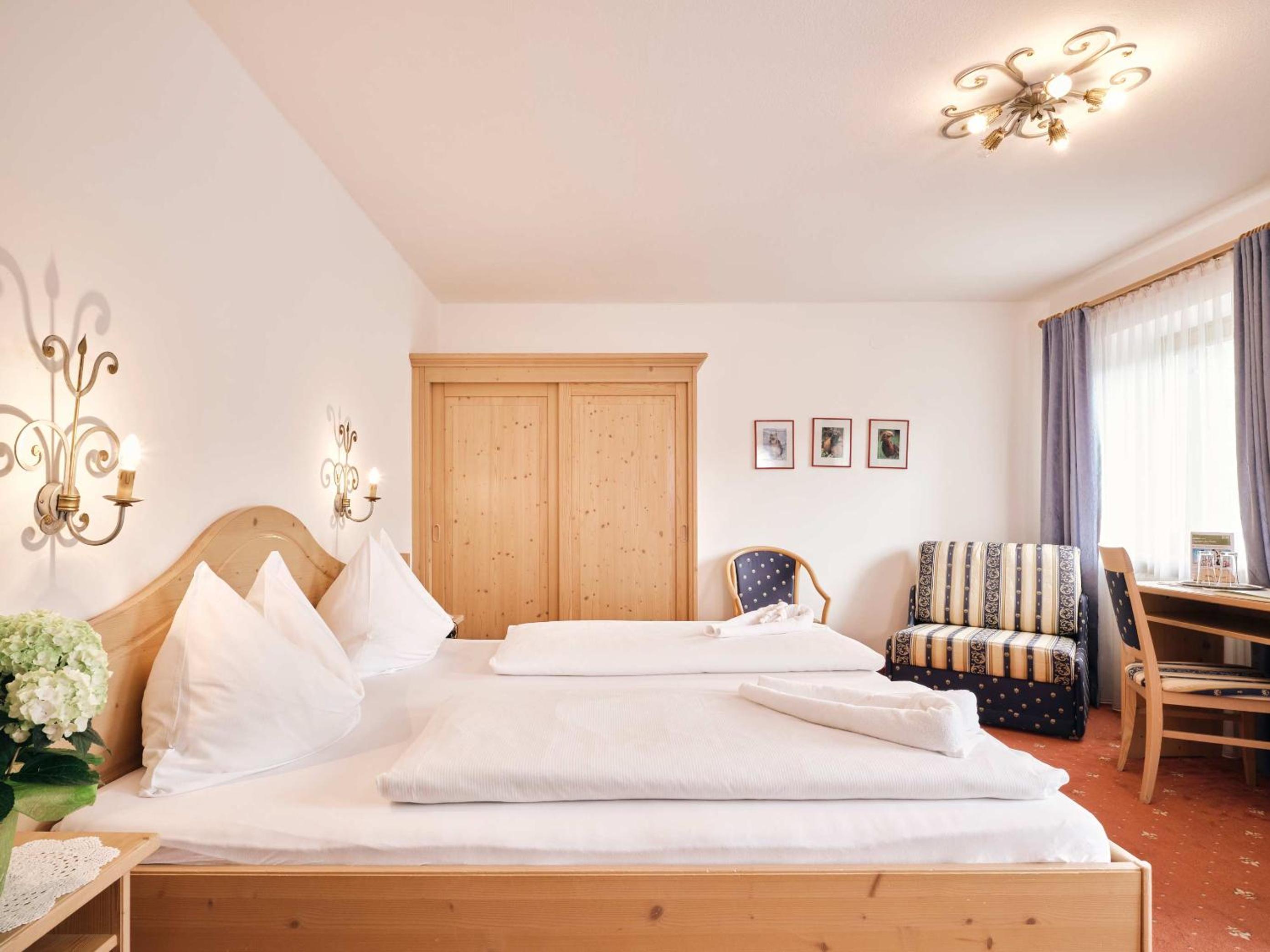 Unwind in our spa area with a sauna, steam bath, and more after a day of skiing or hiking. In summer, take a dip in the outdoor pool or join one of our guided hikes. The perfect blend of relaxation and excitement.