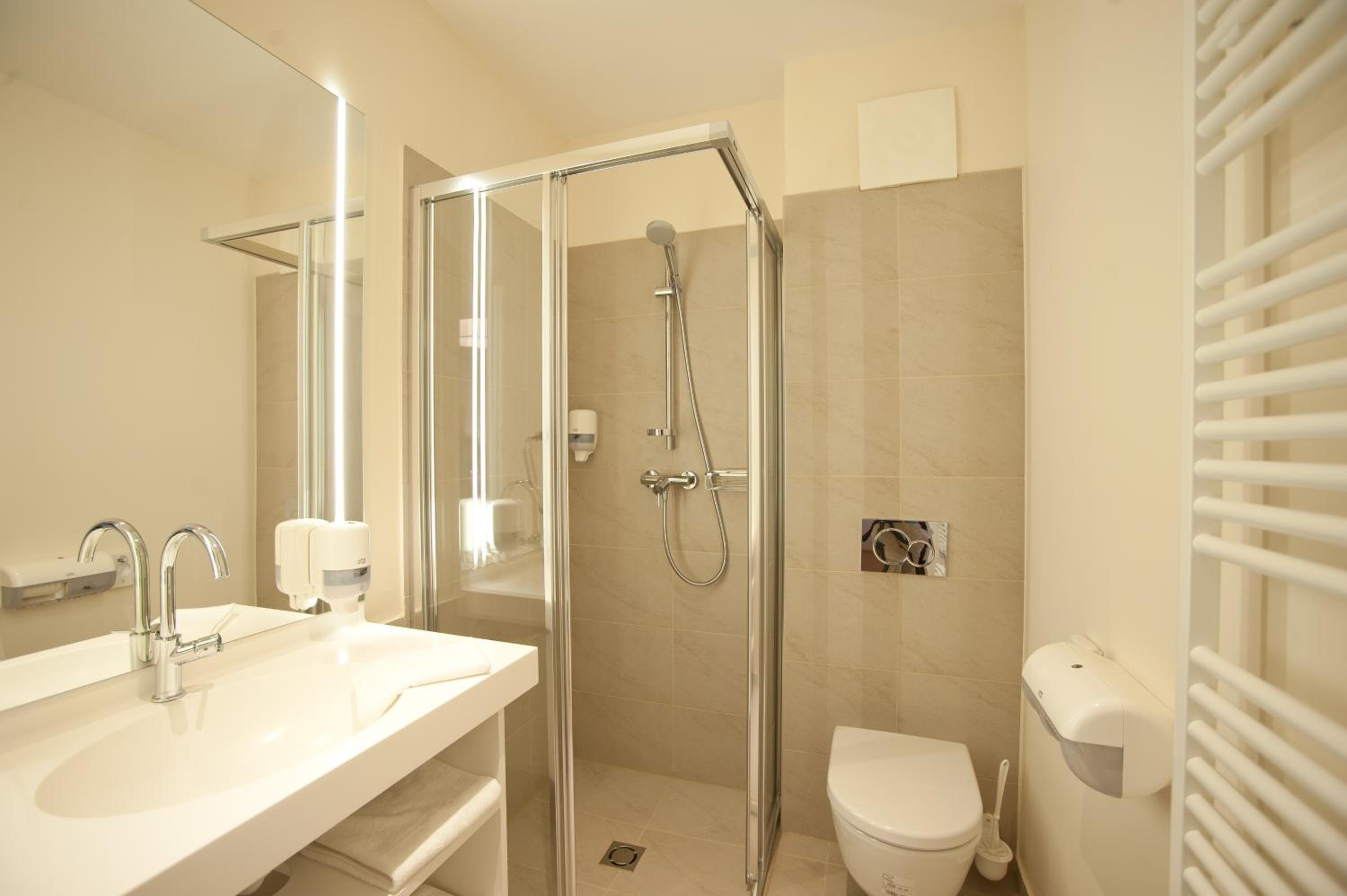 Indulge in the comfort of flat-screen satellite TVs, modern bathrooms, and fully equipped kitchenettes with dishwashers in each room at Stadthotel zur goldenen Krone.