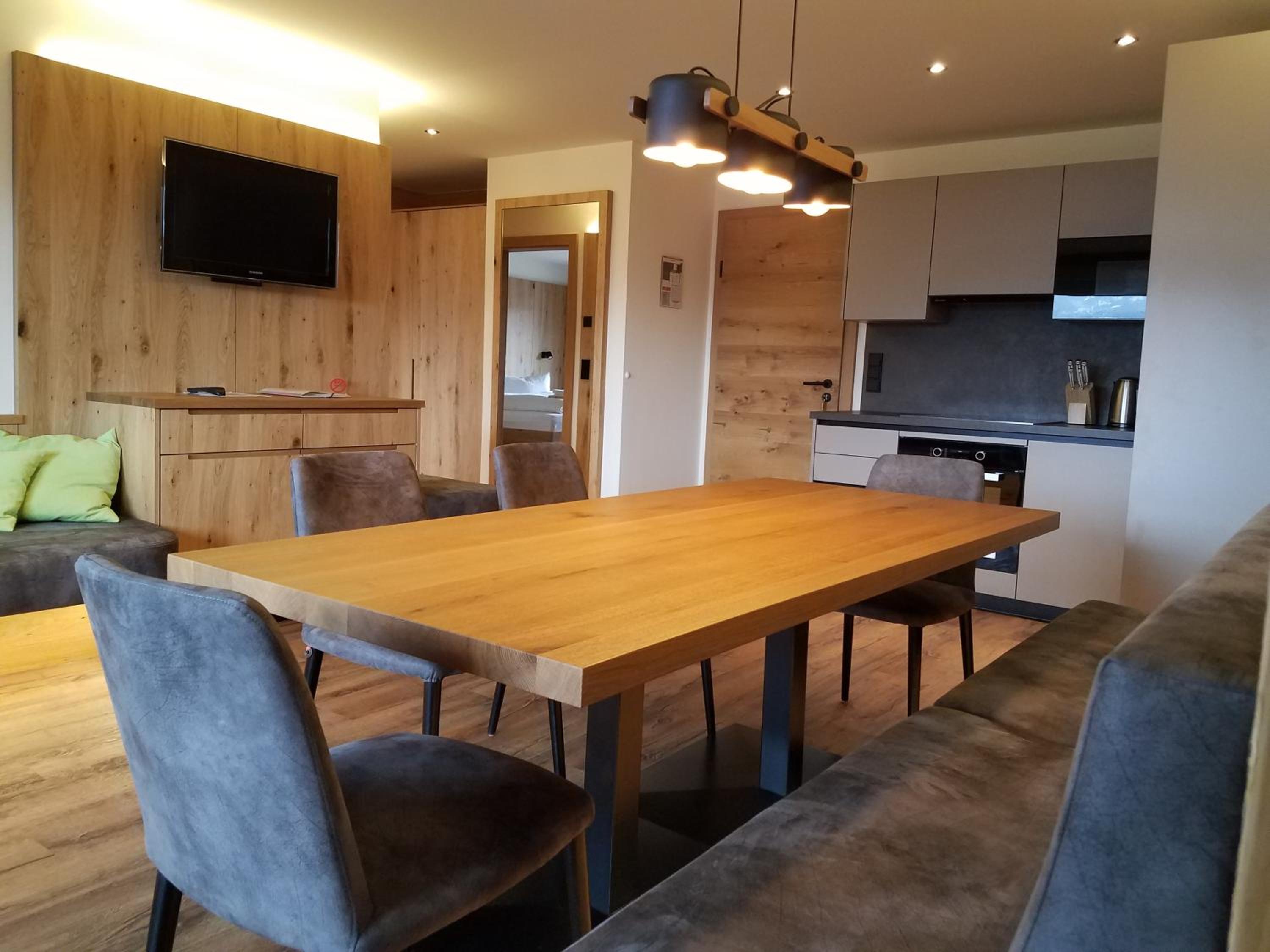 Nagyon szép kilátás az apartmanból gondozott külső és belsővel rendelkezik, a házigazda nagyon kedves és odafigyelő volt velünk! Ami nagyon tetszett a falvak zajáról messze voltunk! A szánkópálya 20 km még Kaprun 30 km re található! A reggeli finom választékos volt, egyik este ott vacsoráztunk és bőséges adagot kaptunk!