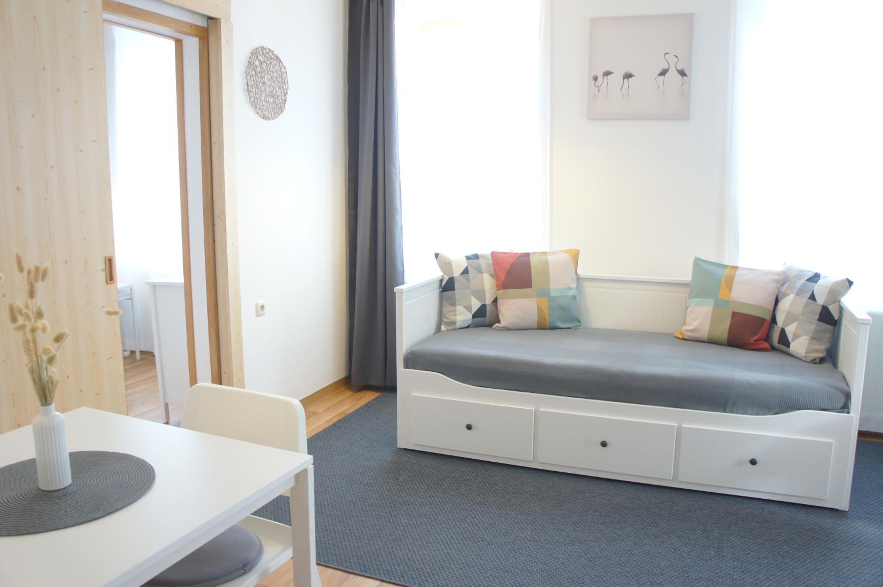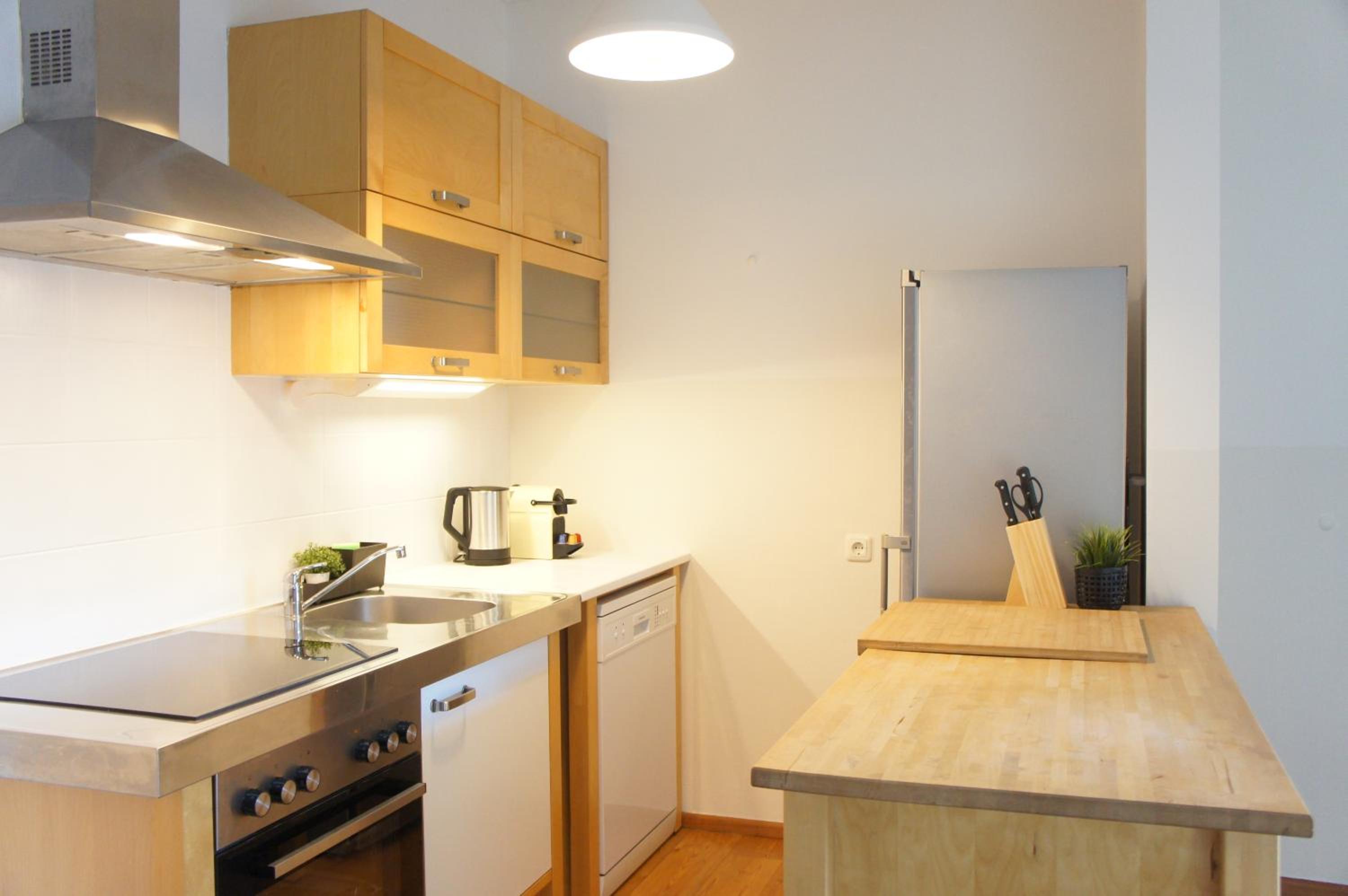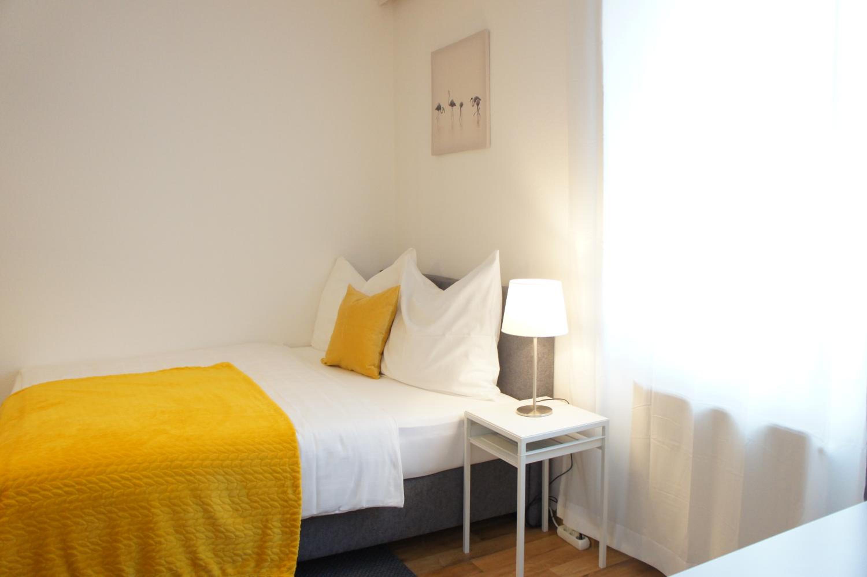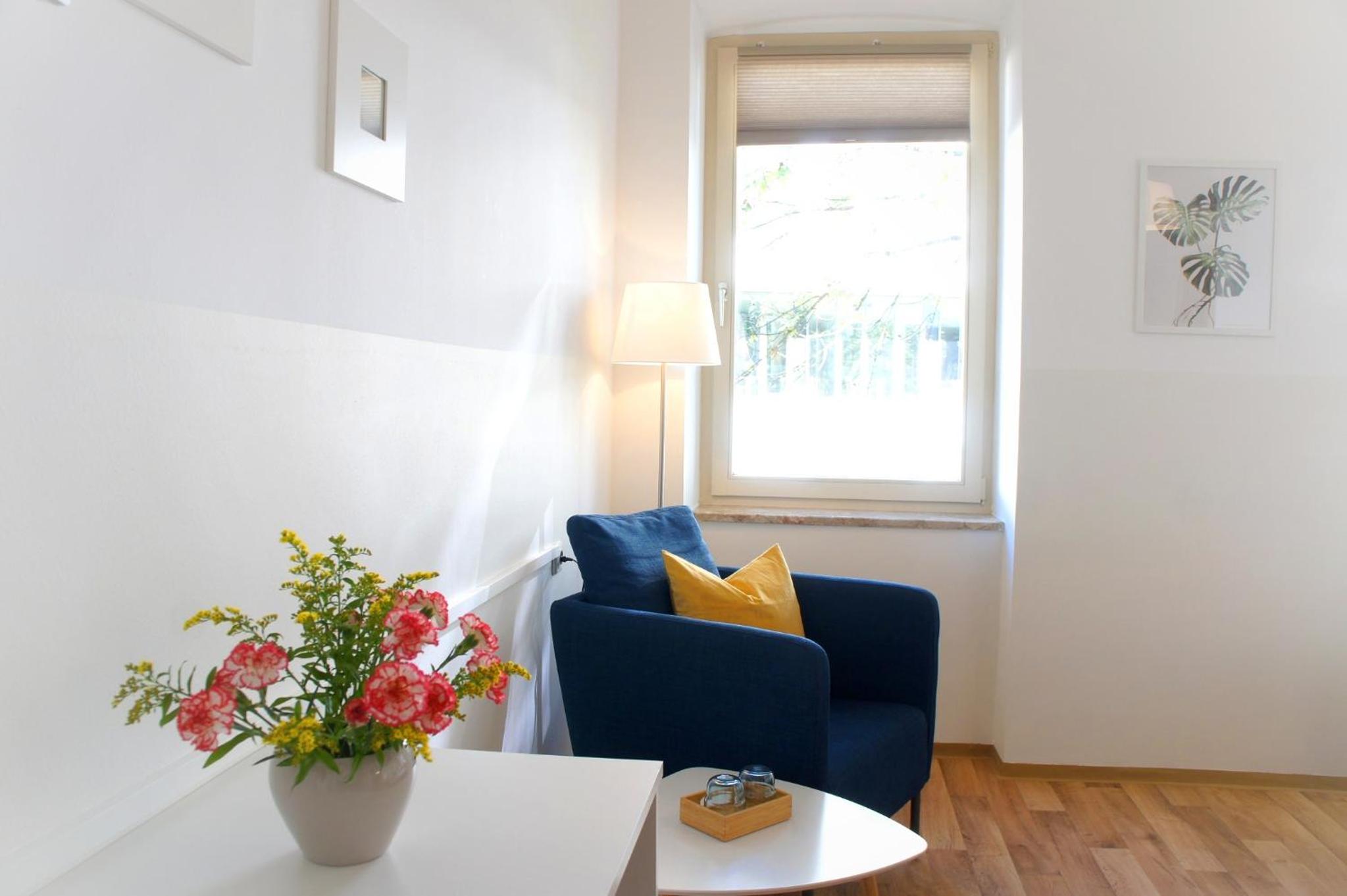 I got the apartment for a week to stay by the hospital with my brother and it was very comfortable, kitchen well equipped, I could see my brother's window at the hospital. I had no trouble to extend the stay for a couple of days because it was luckyly available. The location is excellent, close by two supermarkets and 500m from the train station. Also parking available. I'd fornsurr stay again.