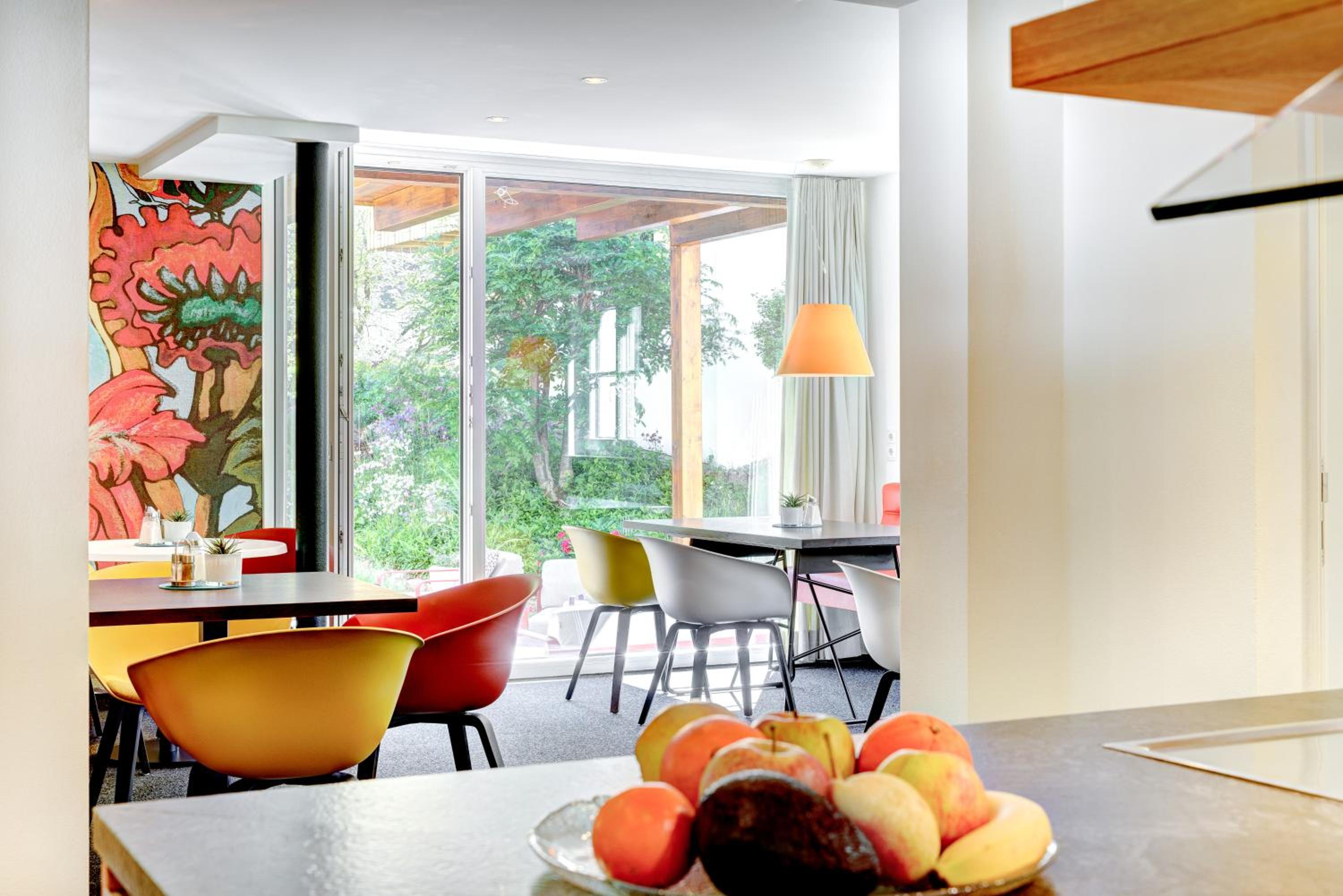 Discover the perfect blend of traditional materials and modern design in our individually furnished rooms and apartments. Enjoy amenities such as flat-screen satellite TV, free WiFi, and a fully equipped kitchenette in the apartments.