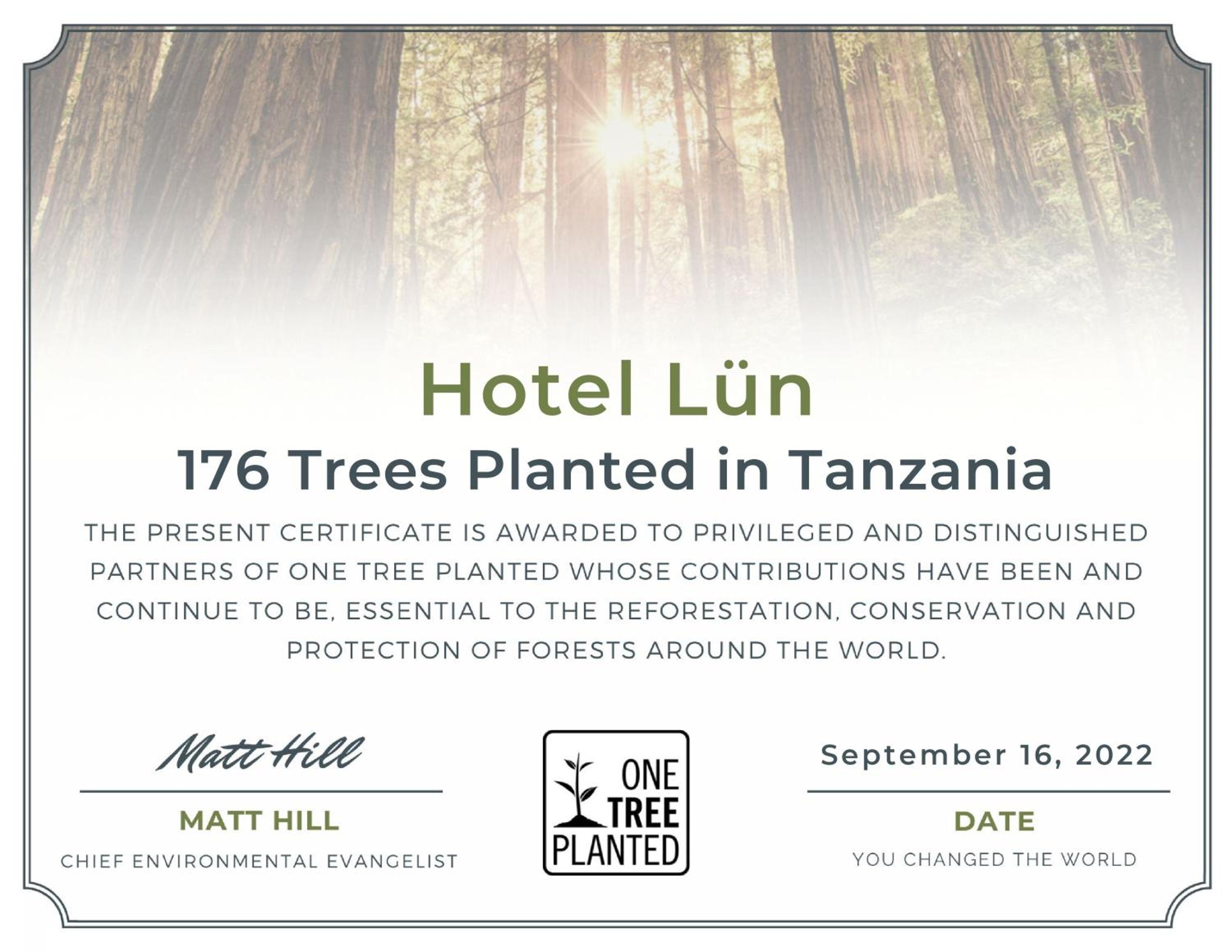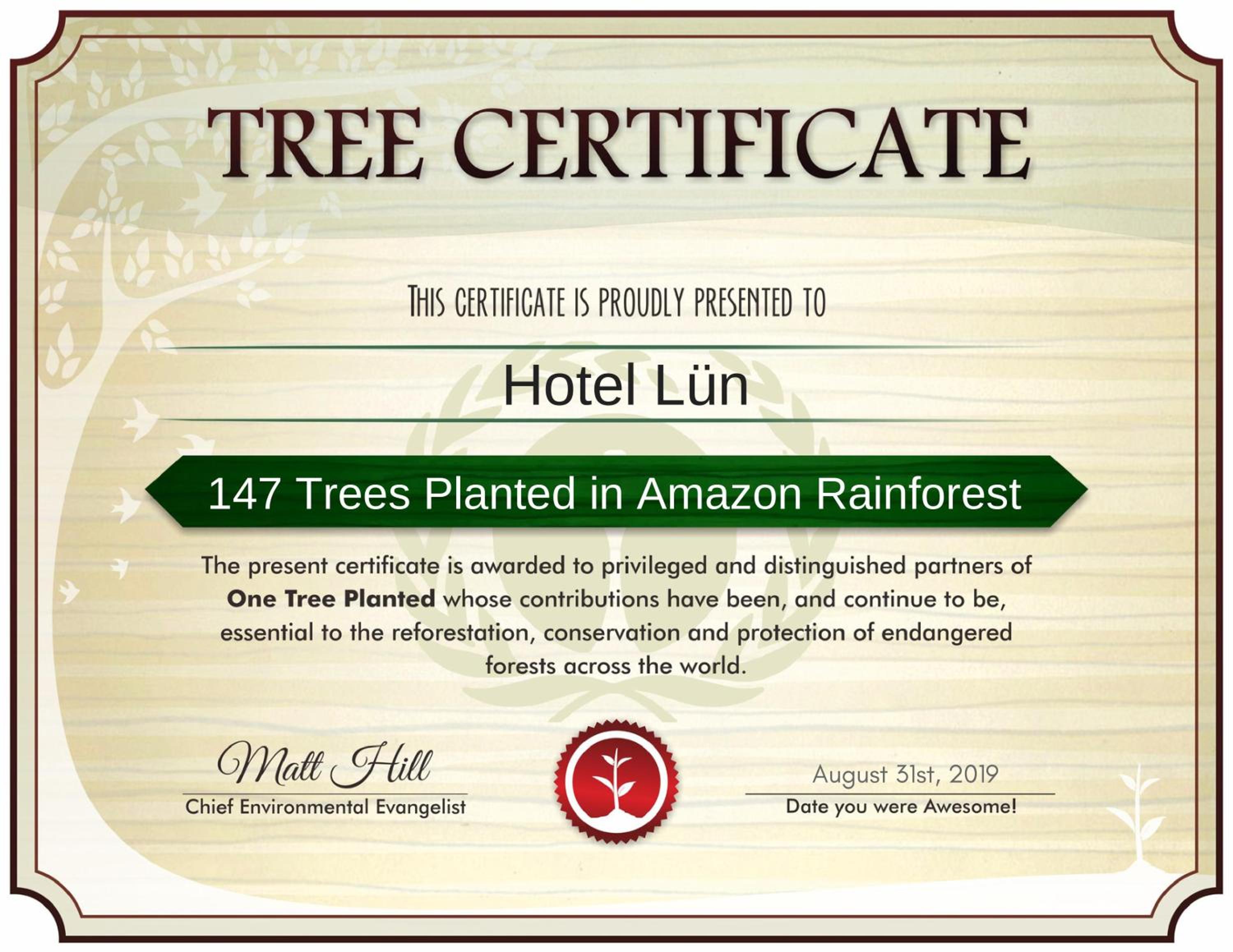 Please note that the hotel participates in the OTP (One Tree Planted) scheme organized by the nonprofit organization in the USA. This means that the hotel plants a tree for every booking received.