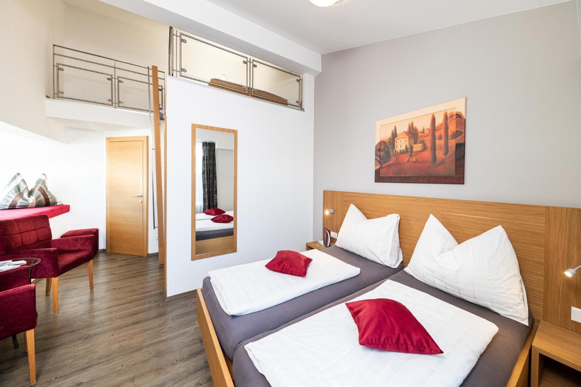 Die Maisonettezimmer sind, besonders im Winter mit Schiausrüstung, doch sehr klein.