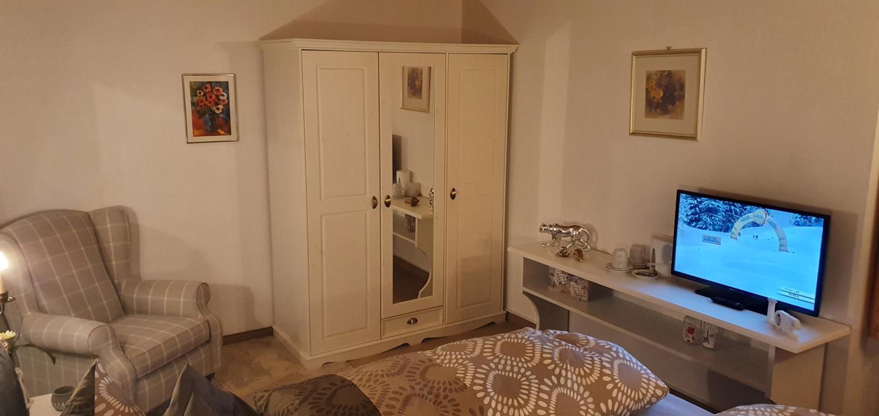 Wir wurden von unserer Gastgeberin freundlich begrüßt. Unser Doppelzimmer war sehr groß und hell. Wir hatten ein Zimmer mit Erker. Der kleine Kühlschrank war prima. Die Lage ist sehr ruhig. Das Frühstück war schön angerichtet mit allem was das Herz begehrt. Wir wurden noch mit Äpfeln zum mitnehmen versorgt.