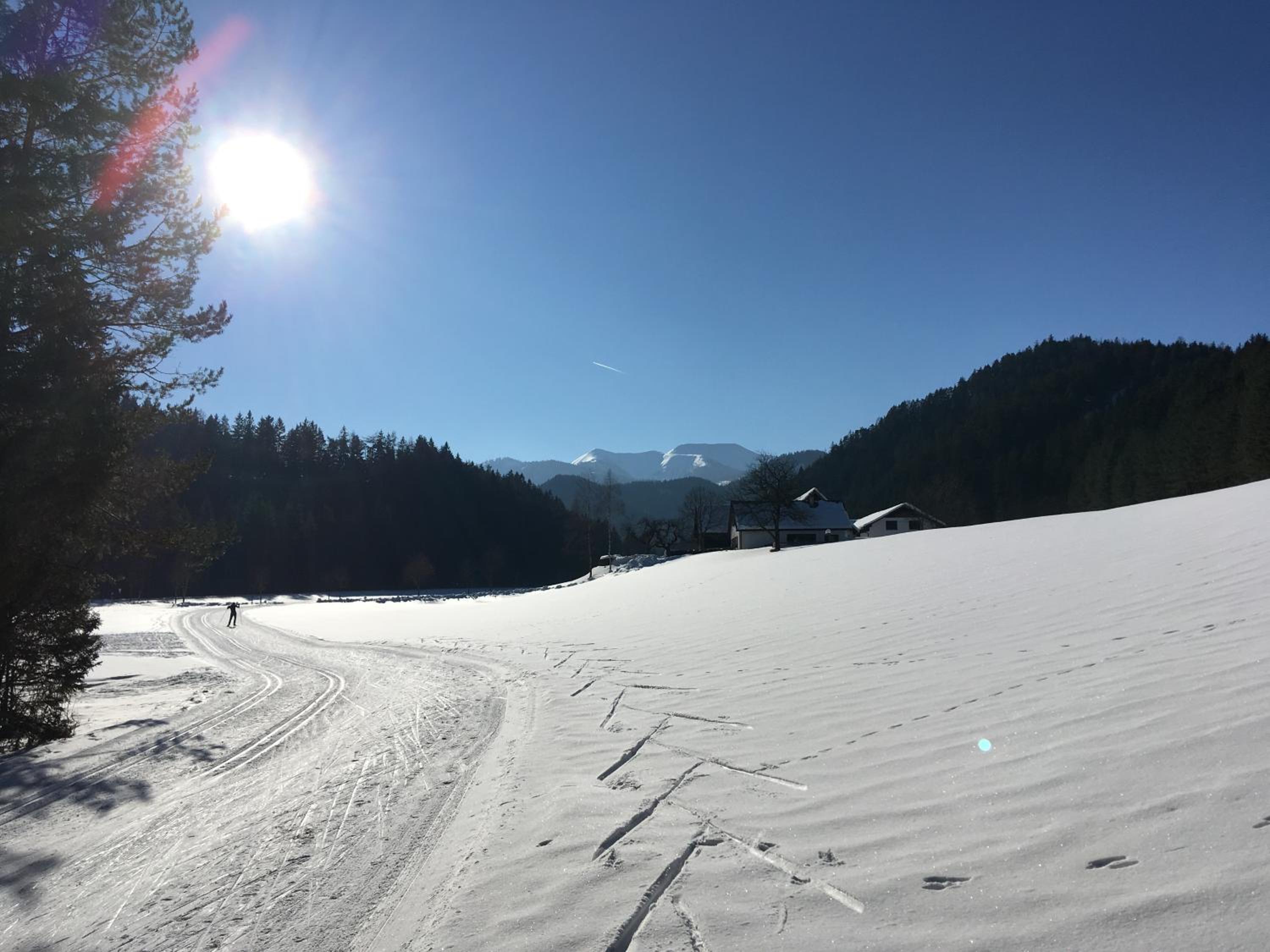 Es gibt schöne Hügel zum Rodeln (mit dem Auto etwas in 15 Min erreichbar) und auch genug Routen für Langlaufski gleich zu Fuß erreichbar.